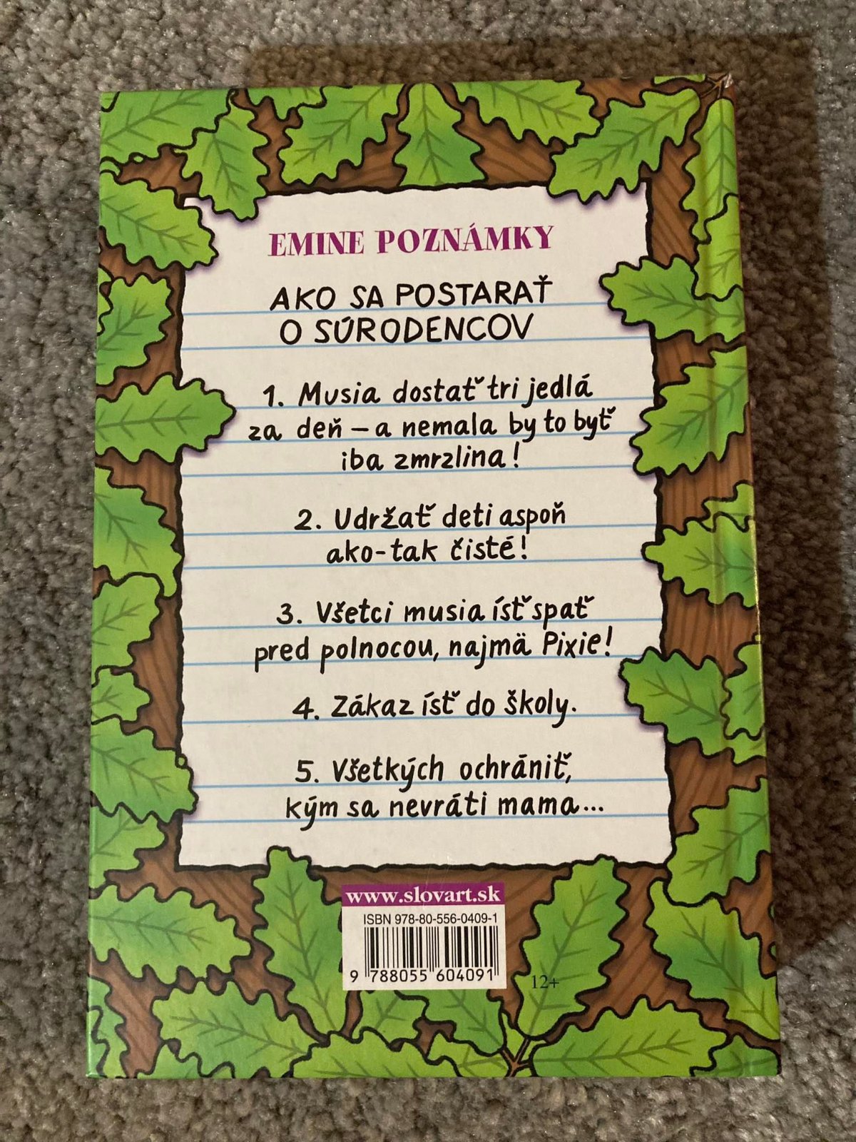 Predáme 1x prečítanú knižku od Jacqueline Wilsonovej. Kniha je ako nová. Ema nie je doma sama, hoci by si to želala. Starať sa o troch súrodencov je náročné. Keď mama odíde s novým priateľom na dovolenku a nechá Emu, šesťročné dvojčatá Bliss a Baxtra a najmenšiu Pixie samých, Ema si zaumieni, že rodinu udrží pokope. Chce všetkým dokázať, že sa zaobídu aj bez dospelých. Keď sa však začne obávať, že ich tajomstvo niekto vyzradí, rozhodne sa, že potrebujú bezpečnejší úkryt. Čo by mohlo byť lepšie, ako vziať všetky deti kempovať do parku? Je tam predsa veľa miesta na potulovanie, park netreba upratovať a nik ich tam nebude hľadať.