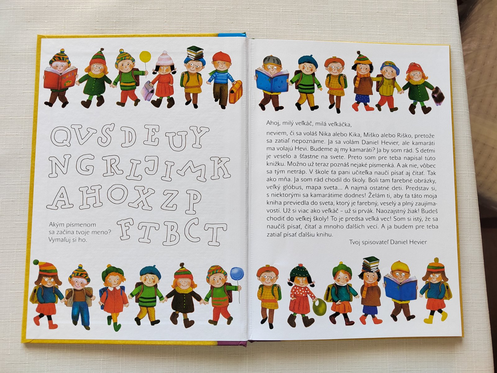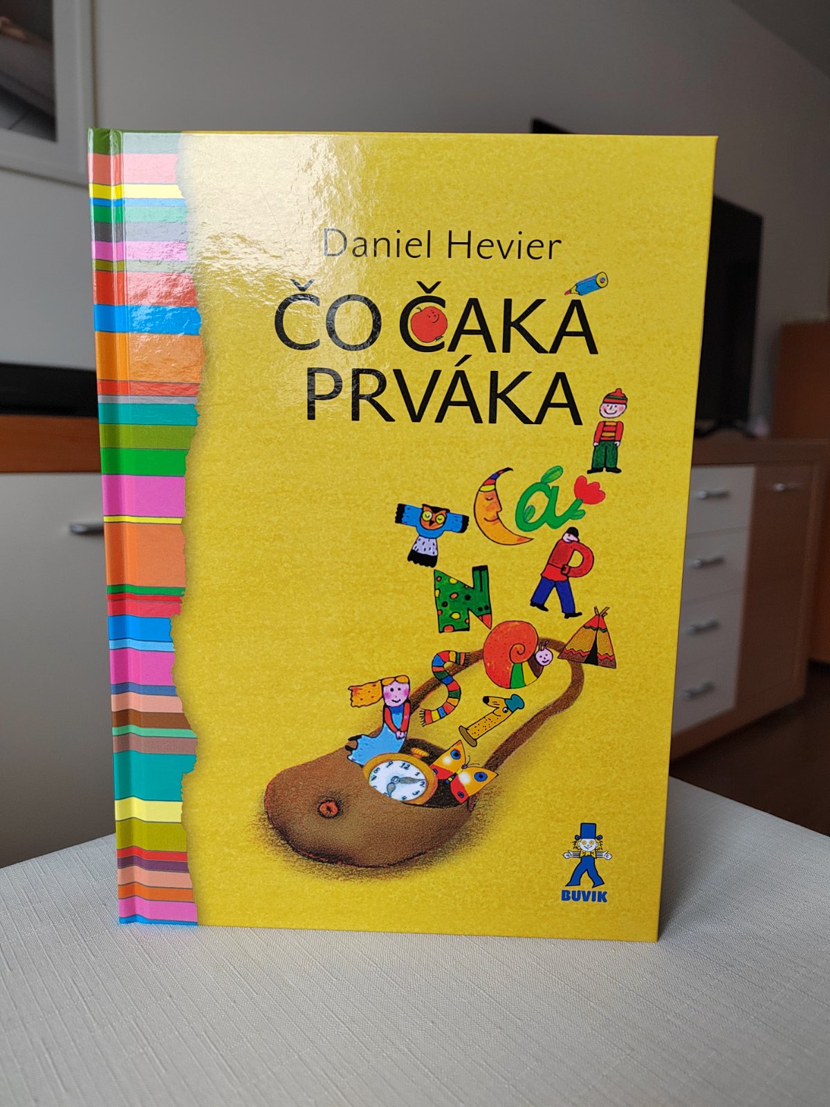V umeleckej čítanke Čo čaká prváka zostavenej z tvorby Daniela Heviera nájdu malí prváci, ale aj druháci všetko, čo majú deti rady: básničky, rozprávky, rýmovačky a veľa smiešnych príbehov. O tom, ako dedko Abecedko postrácal písmenká, ako Kolumbus objavil Ameriku, ako sa Elvíra naučila hrať na klavíri, alebo o chlapcovi, ktorý chcel mať všetko. Veselé básničky a rozprávky vtipne ilustrovala Vlasta Baránková. Kniha Čo čaká prváka inšpiruje a všestranne pomáha začínajúcim čitateľom, aby sa hravo a ľahko skamarátili s písmenkami a čítanie bolo pre nich radostným dobrodružstvom.