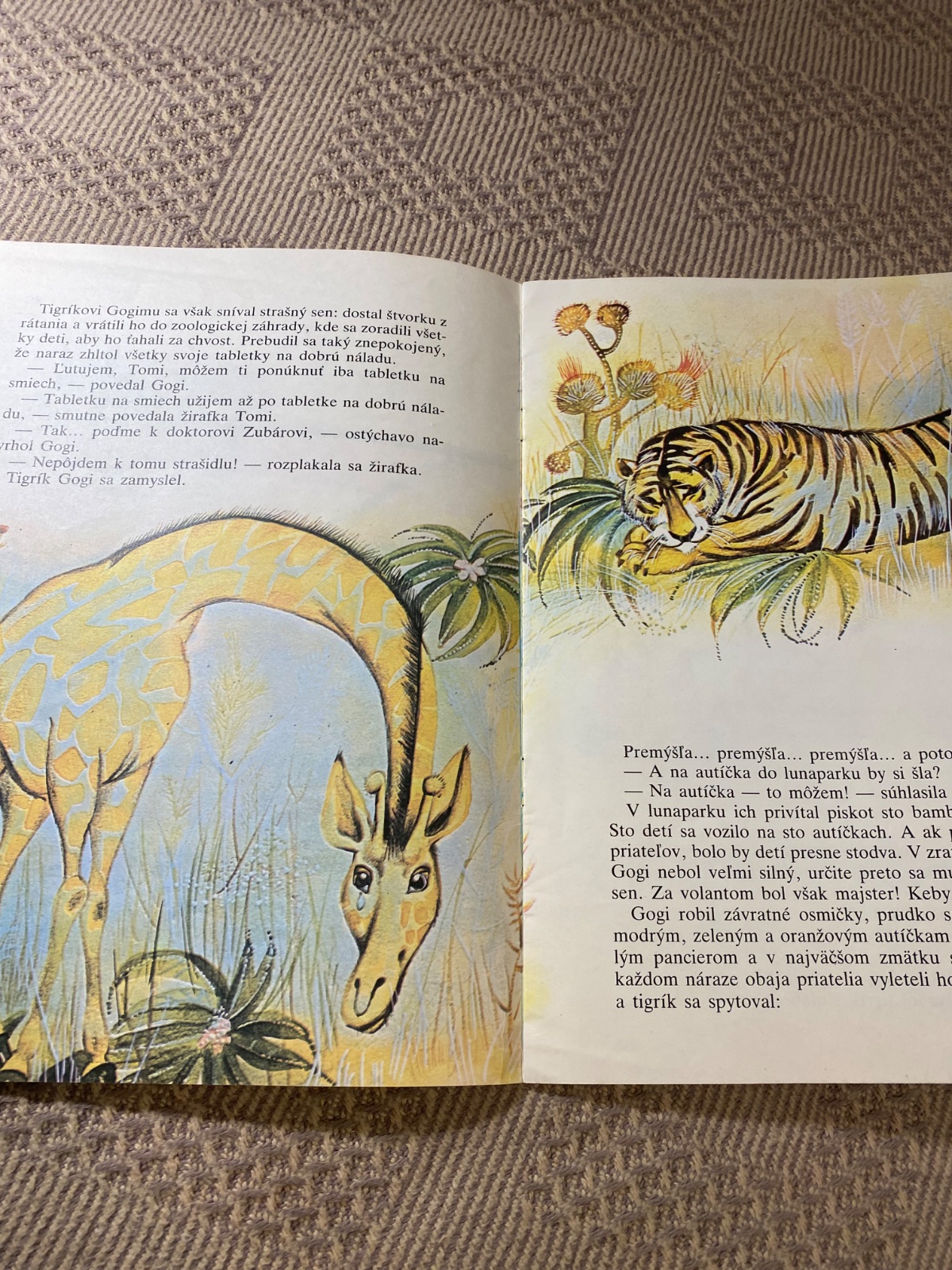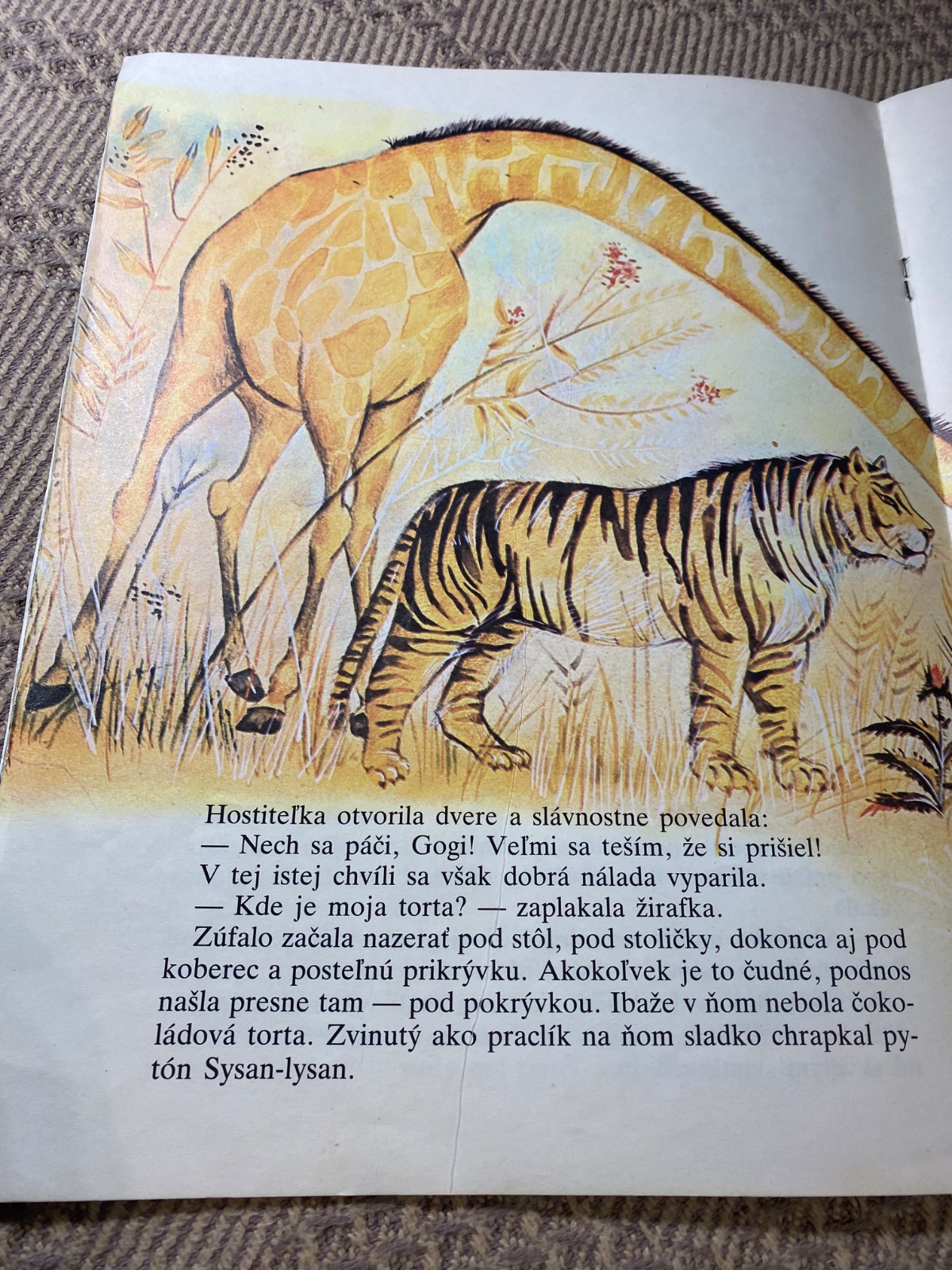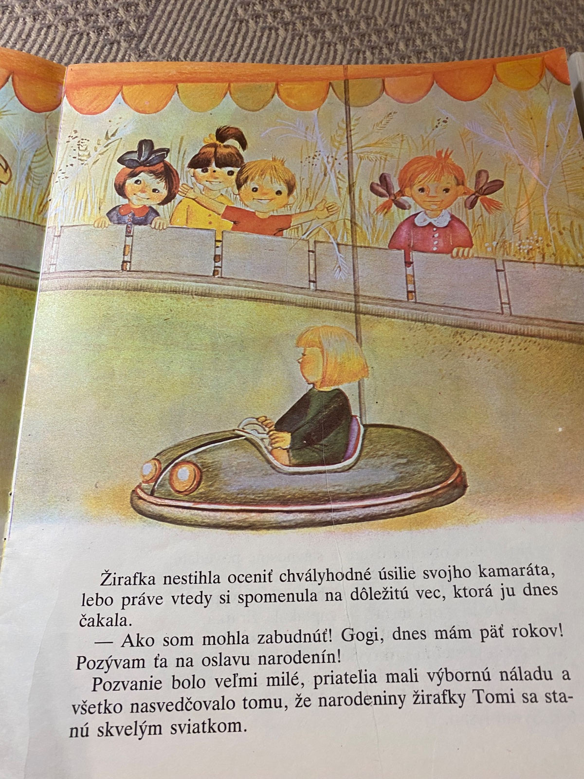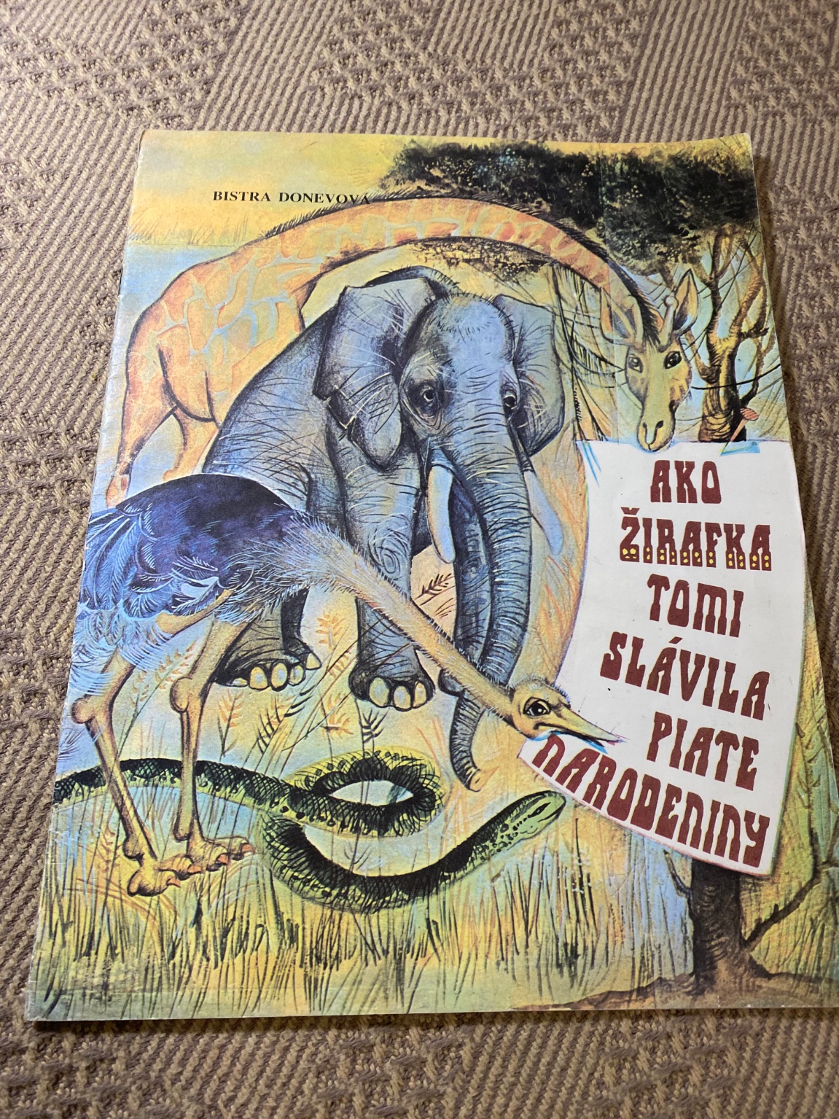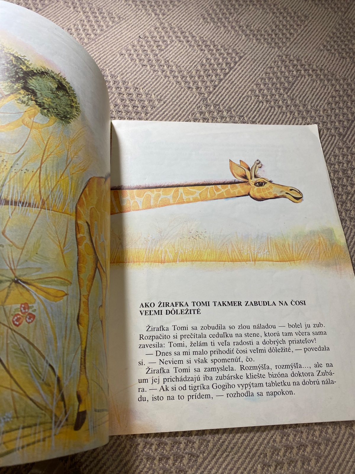 Krásna stará Retro knižka v mäkkom obale Ako žirafka Tomi slávila Piate narodeniny