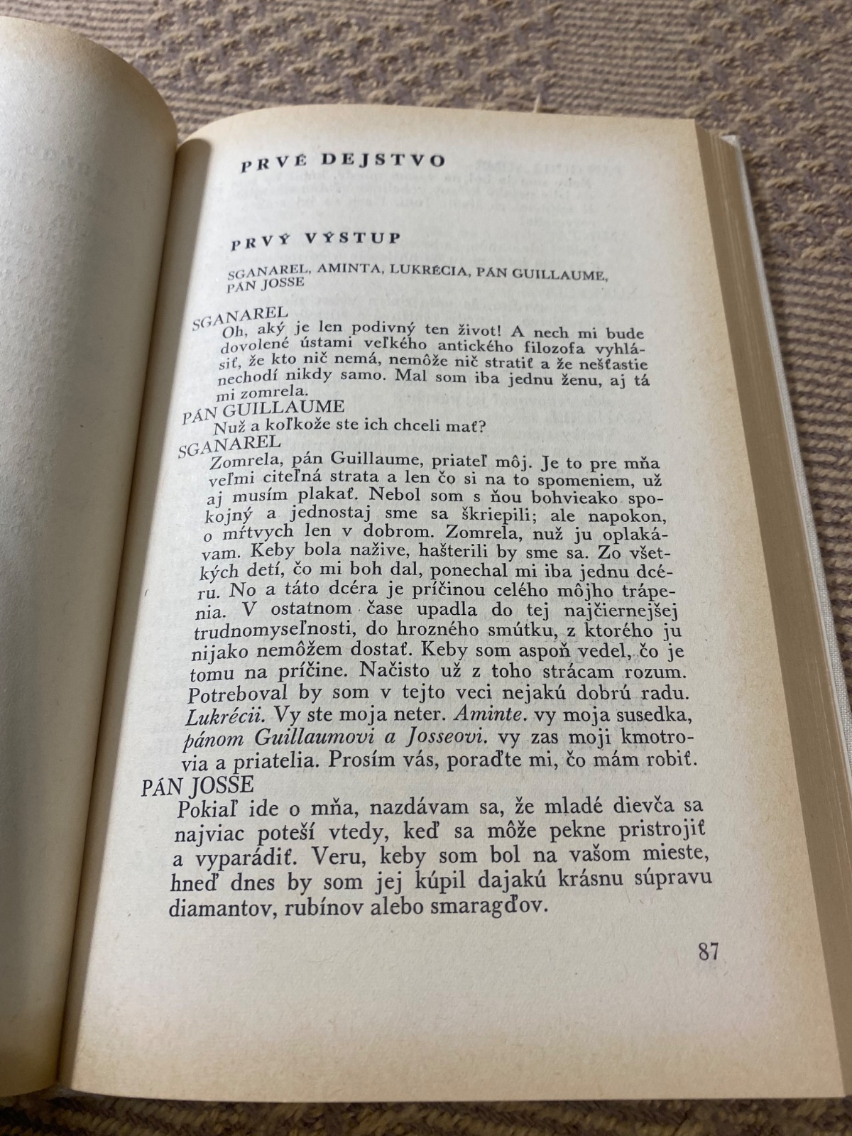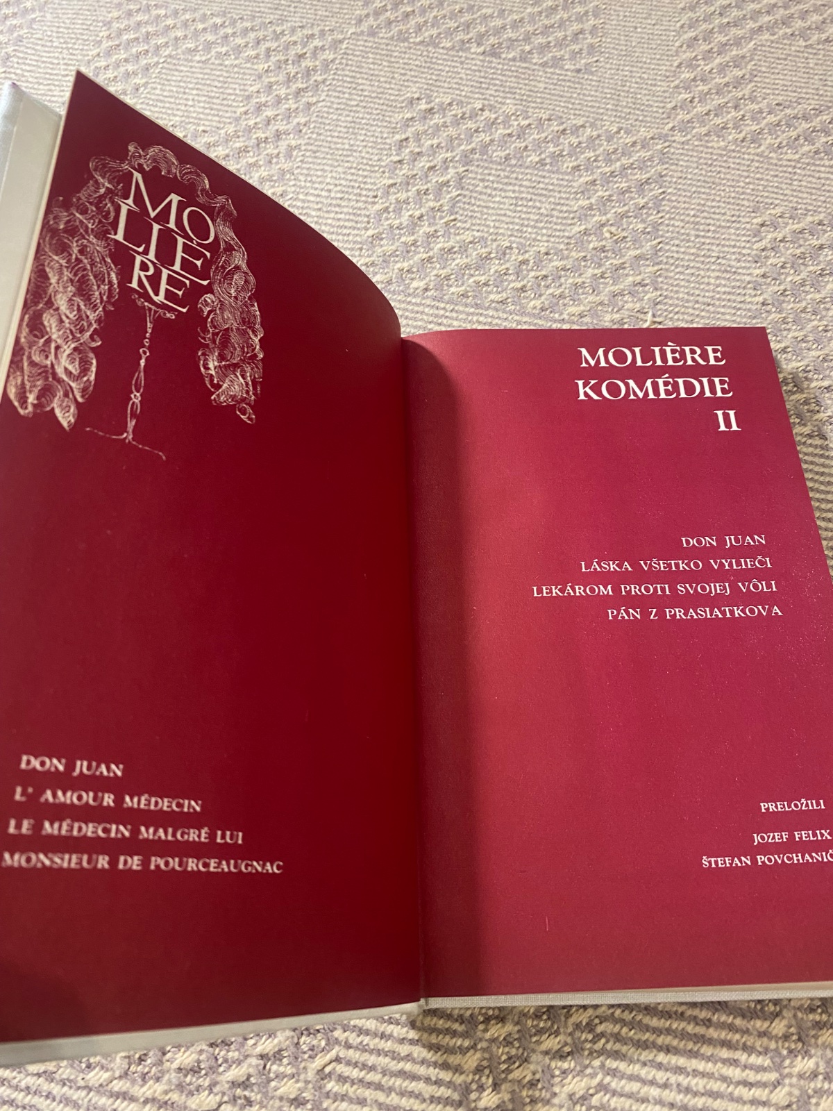 Ide o zberateľsky krásnu zaujímavú knihu s názvom Molière: Komédie III, ktorú vydalo vydavateľstvo Tatran v Bratislave v roku 1972.
