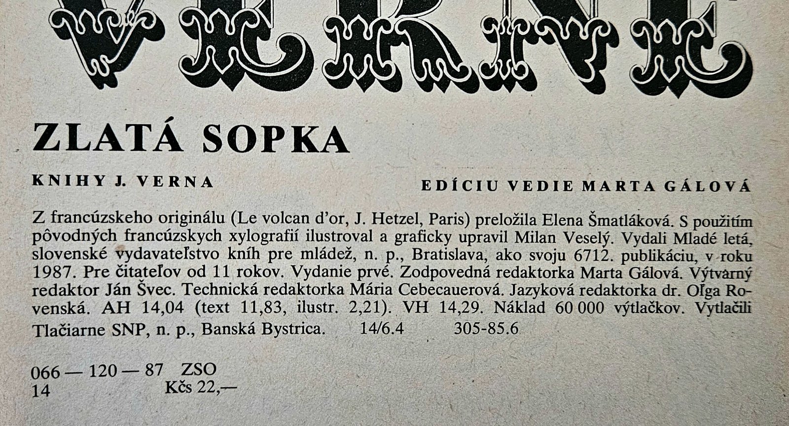 Ponúkam knihu J. VERNA - Zlatá Sopka, vydali Mladé Letá v roku 1987