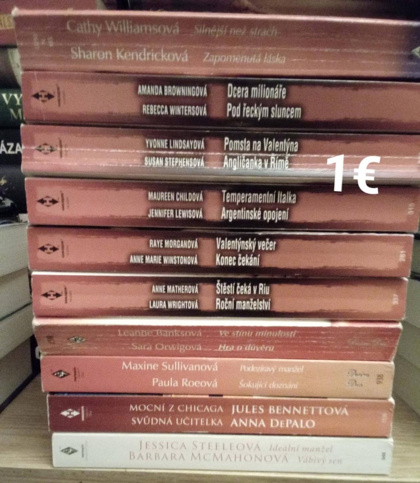 Pozri všetky fotky,je tam 15 foto kníh na predaj. Ceny sú uvedené na každej fotke. Väčšina kníh nové,1x čítané..