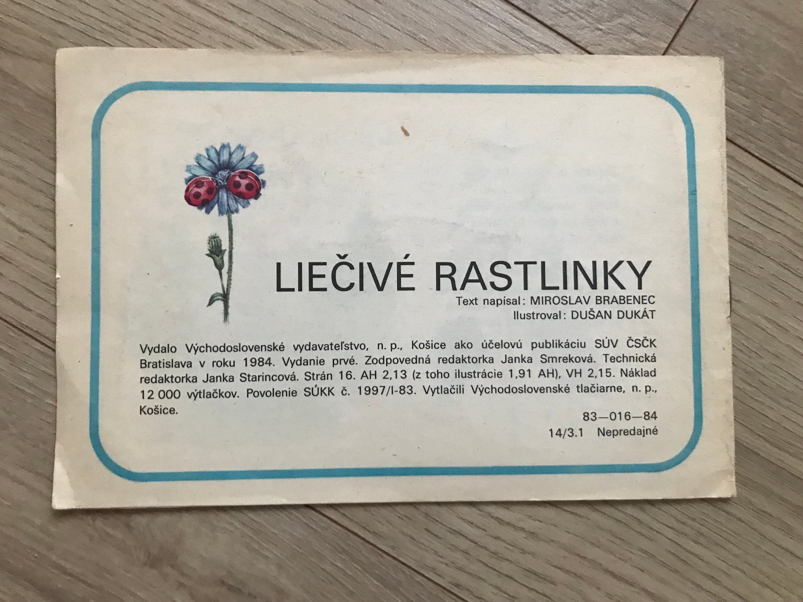 Ako bonus prikladám knižočku pre najmenších - Liečivé rastlinky, z roku 1984, 16 strán. Sú v nej ilustrácie niektorých liečivých kvetov s básničkami.