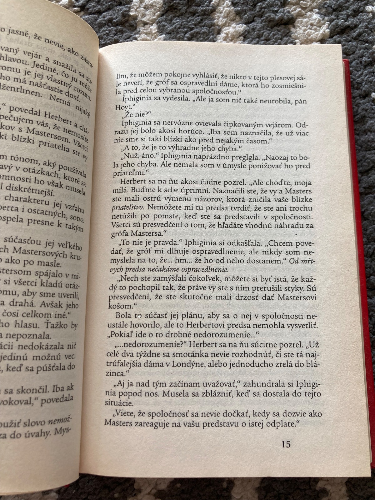 🎀 Keď sa Iphiginia Brightová dozvie, že jej milovanú tetu Zoe vydiera záhadný muž, rozhodne sa odísť do Londýna a ničomníka vypátrať. Vydáva sa za milenku tajuplného grófa Marcusa Mastersa, ktorý vraj zahynul rukou vydierača. Jedného dňa na plese sa stretne s človekom, ktorého by najmenej očakávala – s grófom Mastersom, ktorý túži spoznať svoju „milenku“. Nebojácna Iphiginia sa ocitá v pasci – na jednej strane bojuje s vydieračom a na druhej s grófom, ktorý sa rozhodol chytiť krásnu podvodníčku za slovo.
