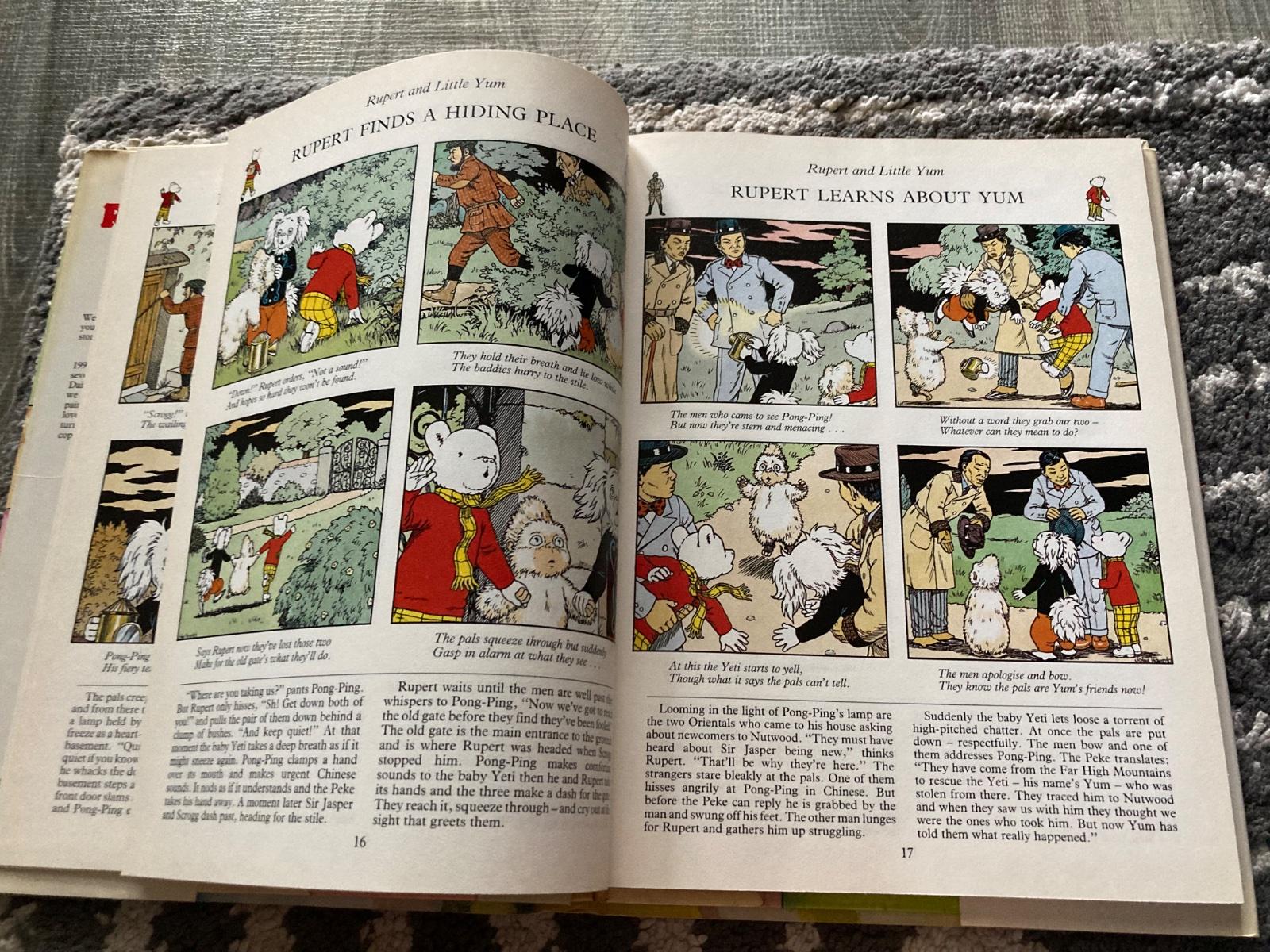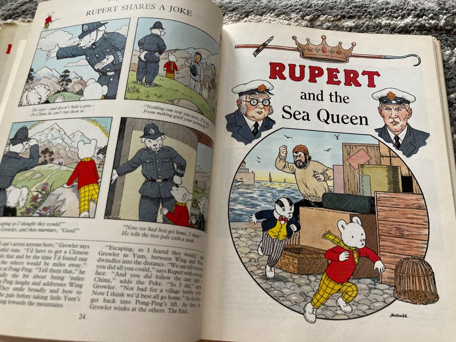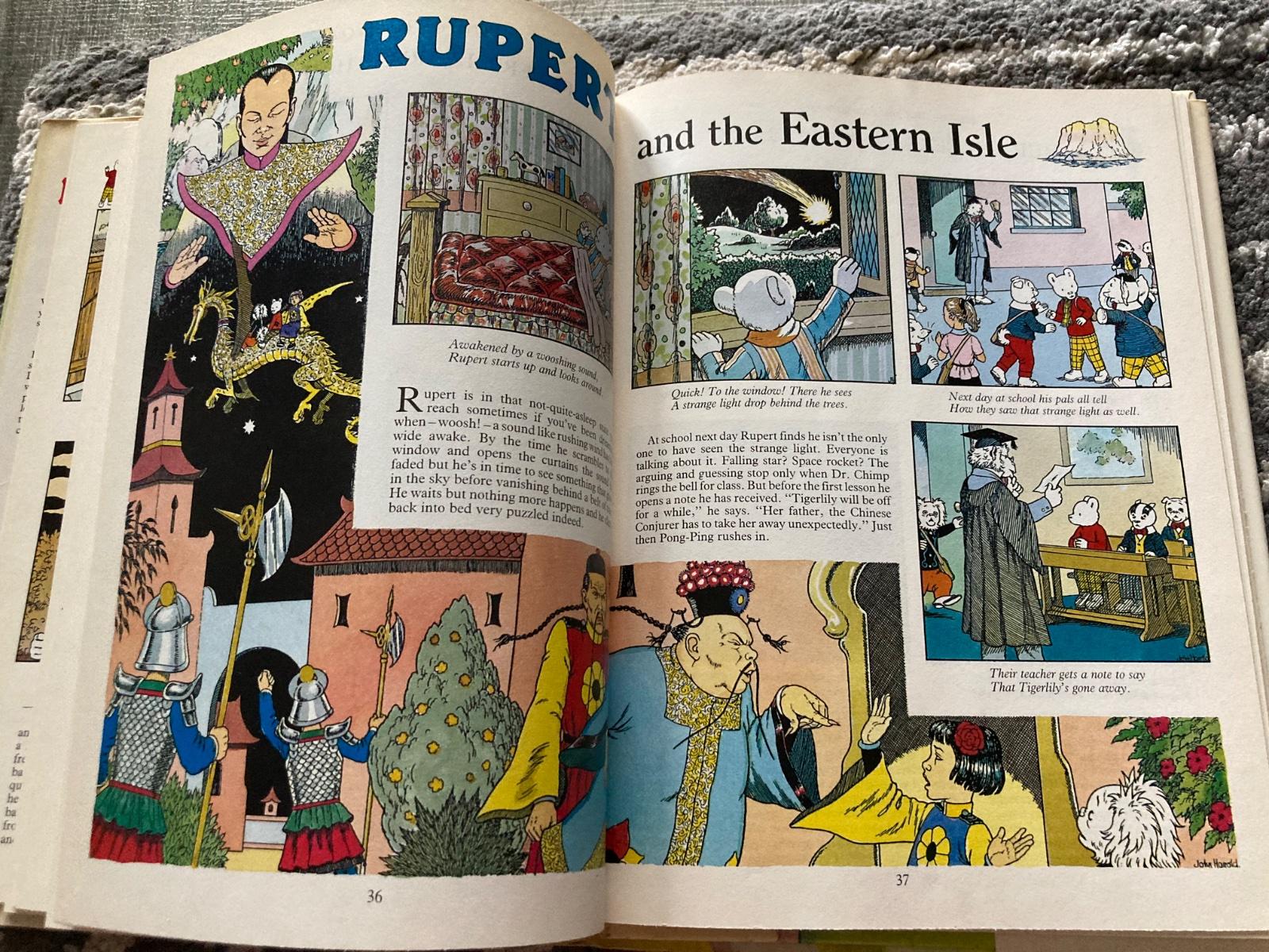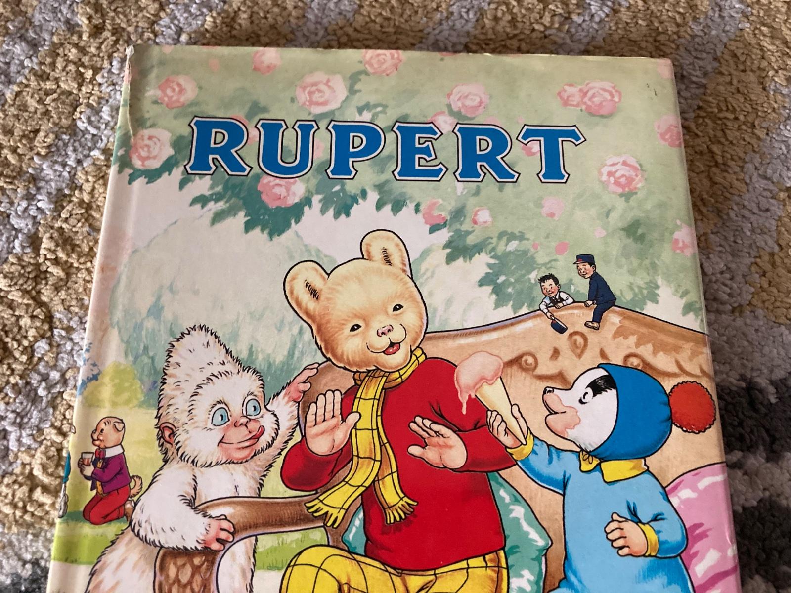 📌Vintage Rupert the bear 1990 anniversary 70 th year 1920-90 Daily Express annual , Free Rupert poster ( by John Harrold ) included on the back of the dustjack . full of colour comic strip adventures with all his friends all nine chapters.open day at the squires , Rupert and little yum, Rupert and the sea queen, Rupert and the eastern isle , fantastic book .
