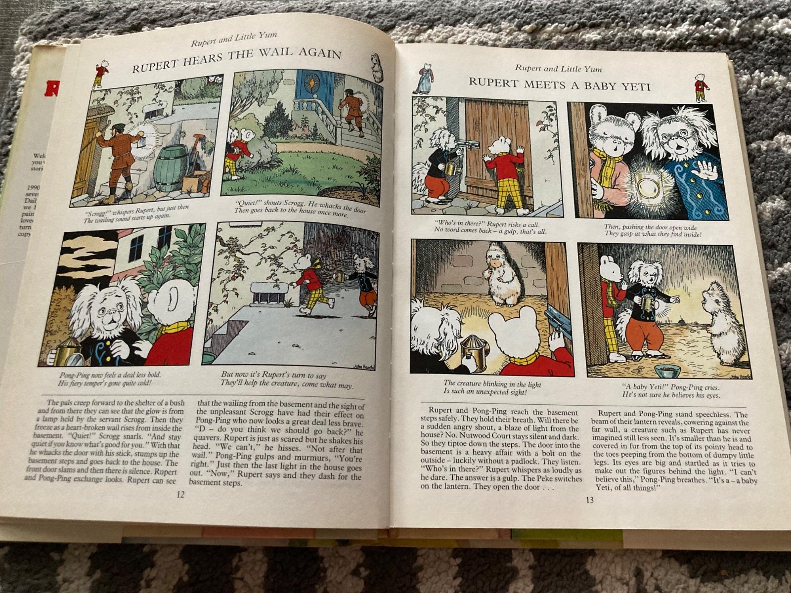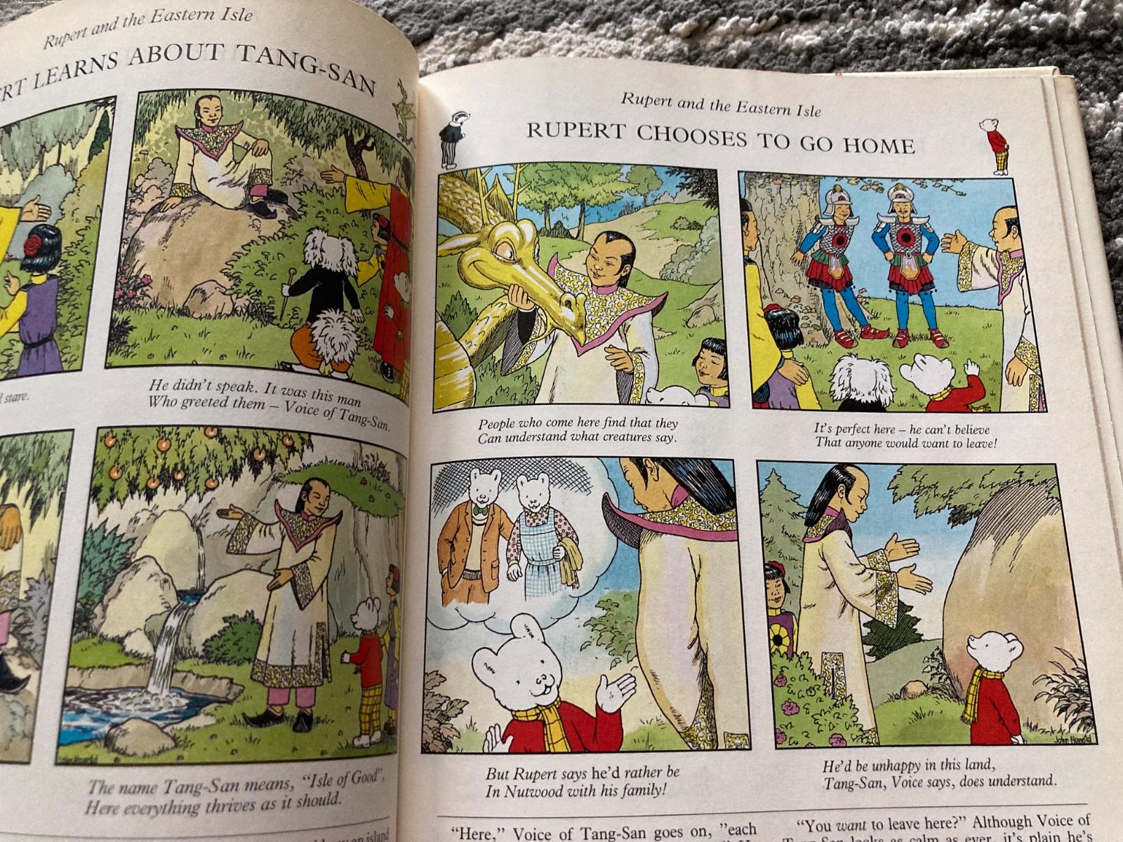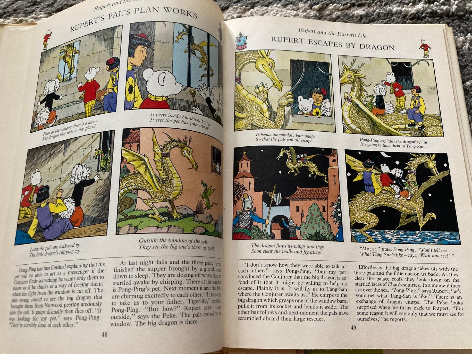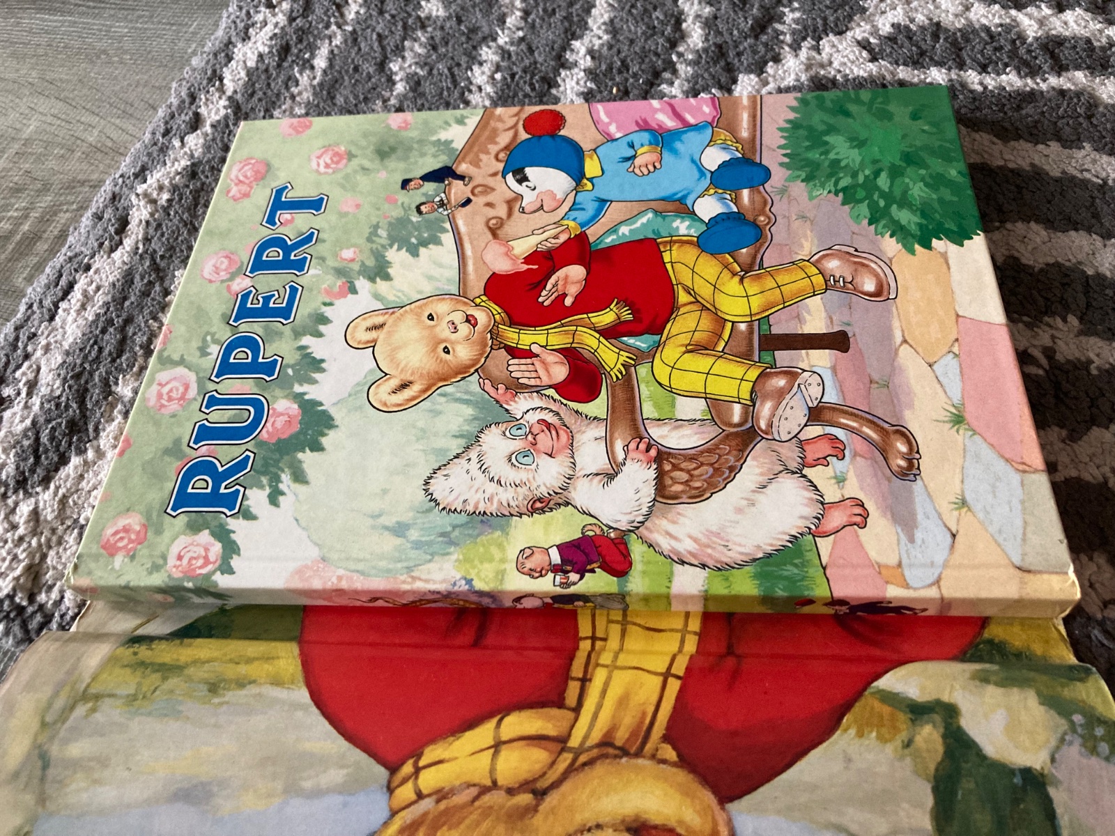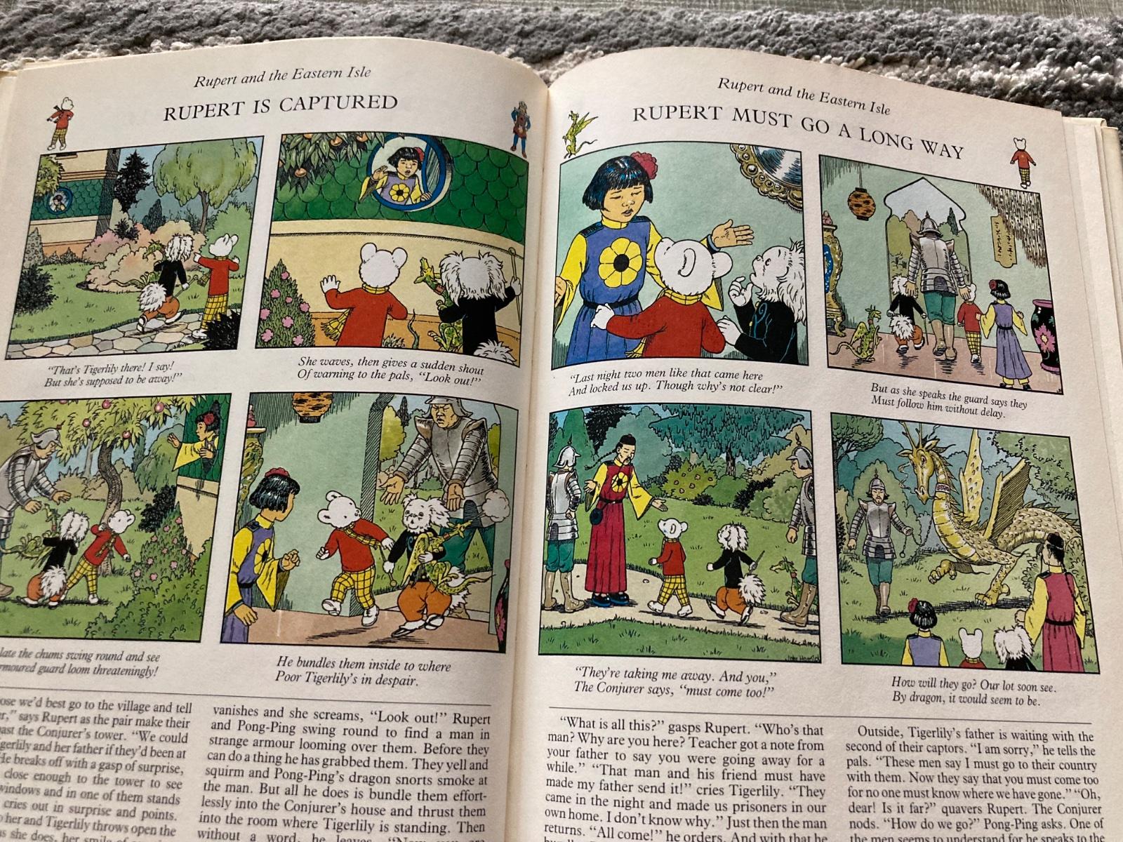 📌Vintage Rupert the bear 1990 anniversary 70 th year 1920-90 Daily Express annual , Free Rupert poster ( by John Harrold ) included on the back of the dustjack . full of colour comic strip adventures with all his friends all nine chapters.open day at the squires , Rupert and little yum, Rupert and the sea queen, Rupert and the eastern isle , fantastic book .