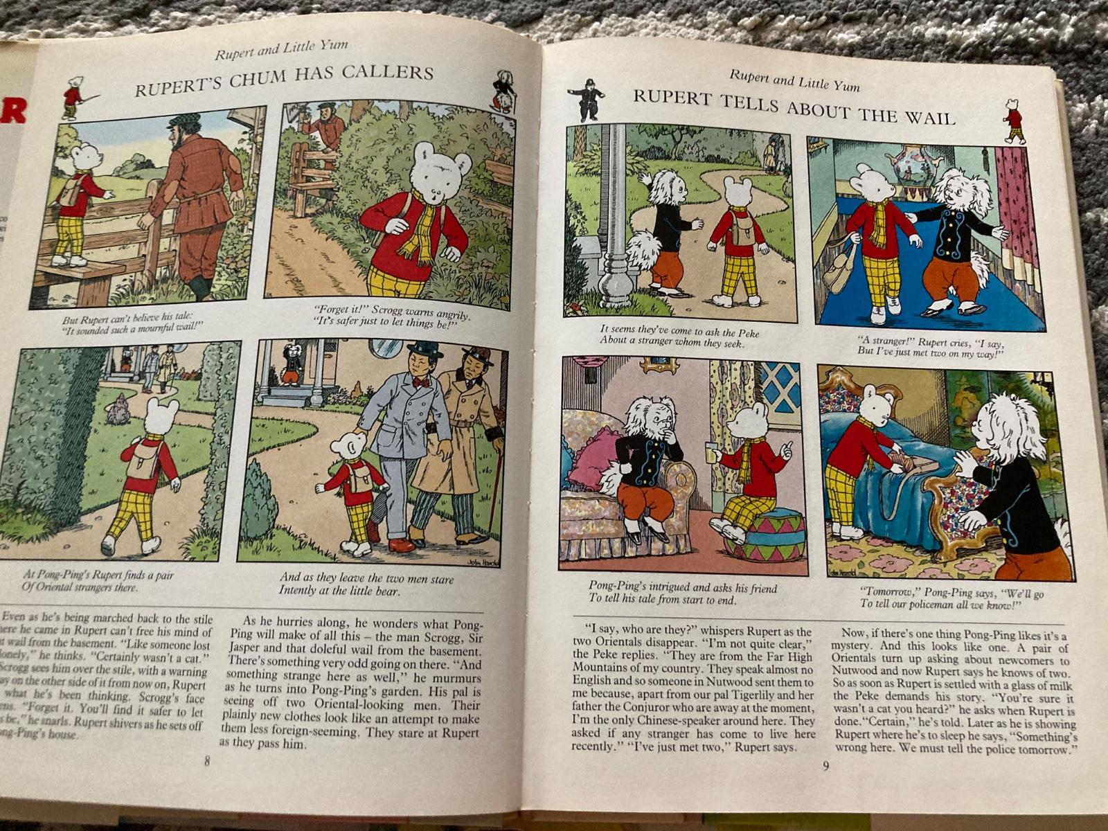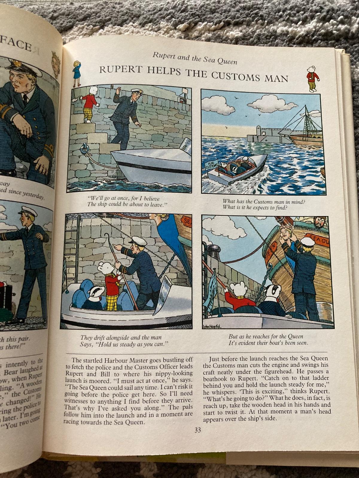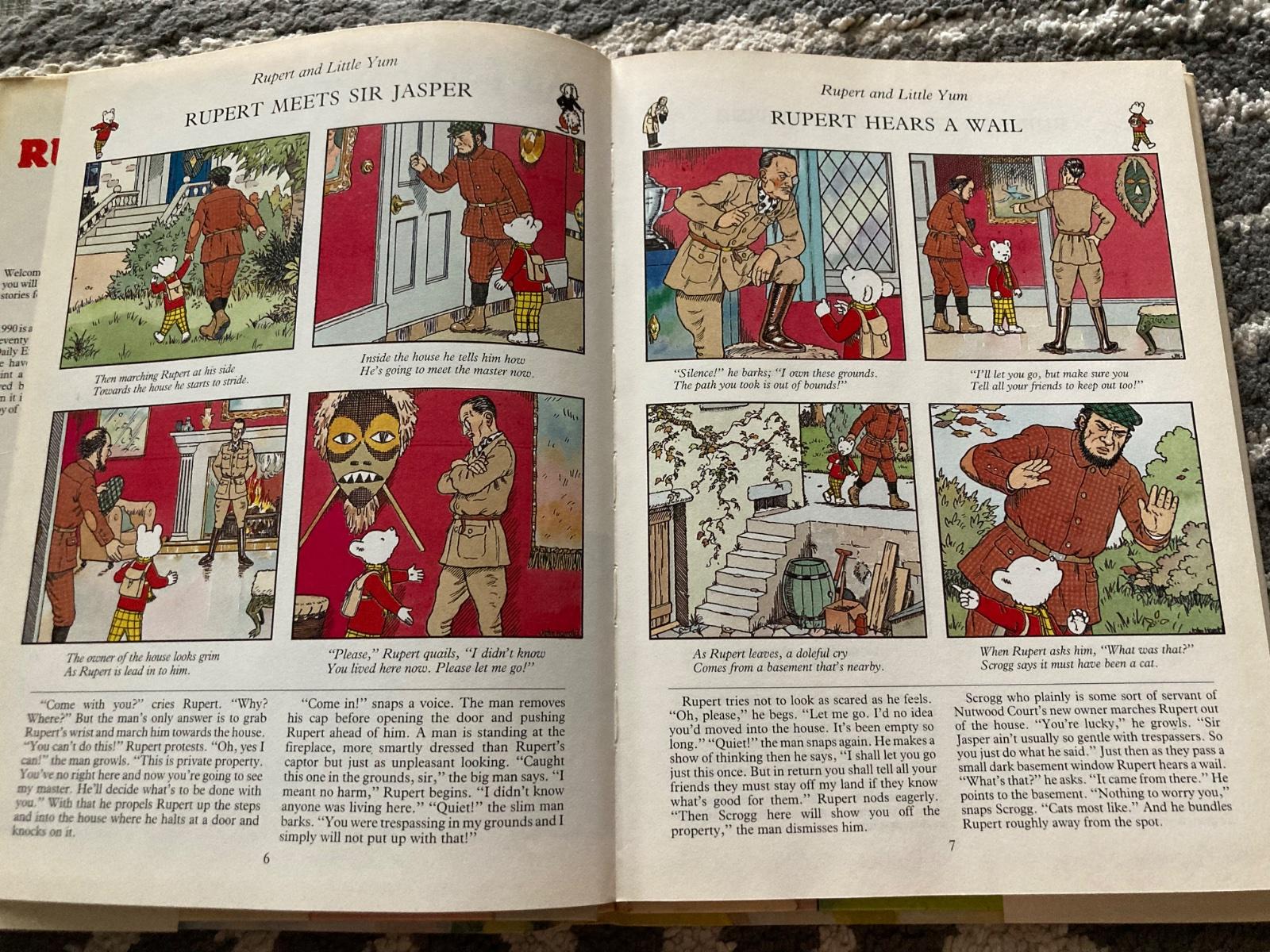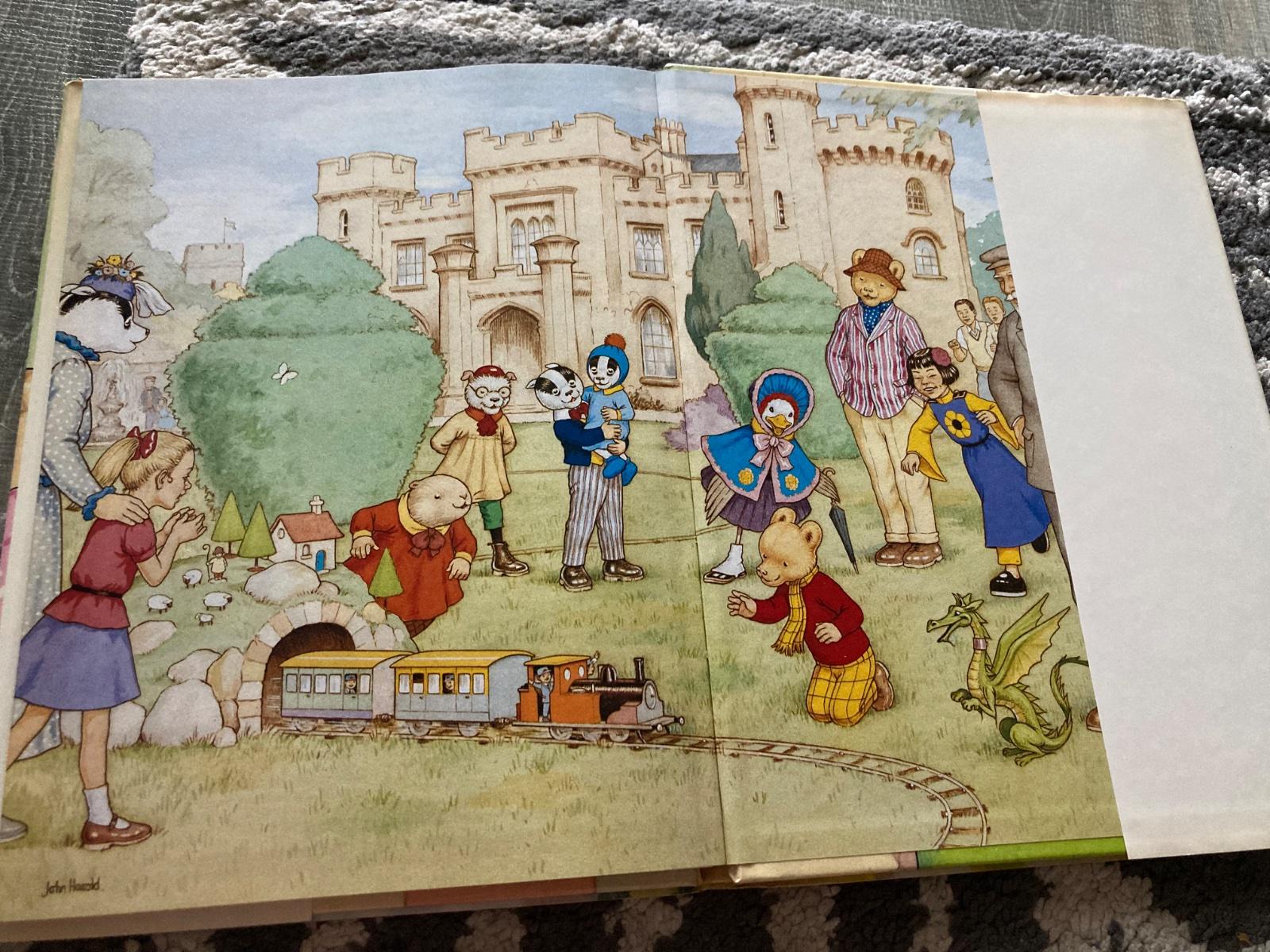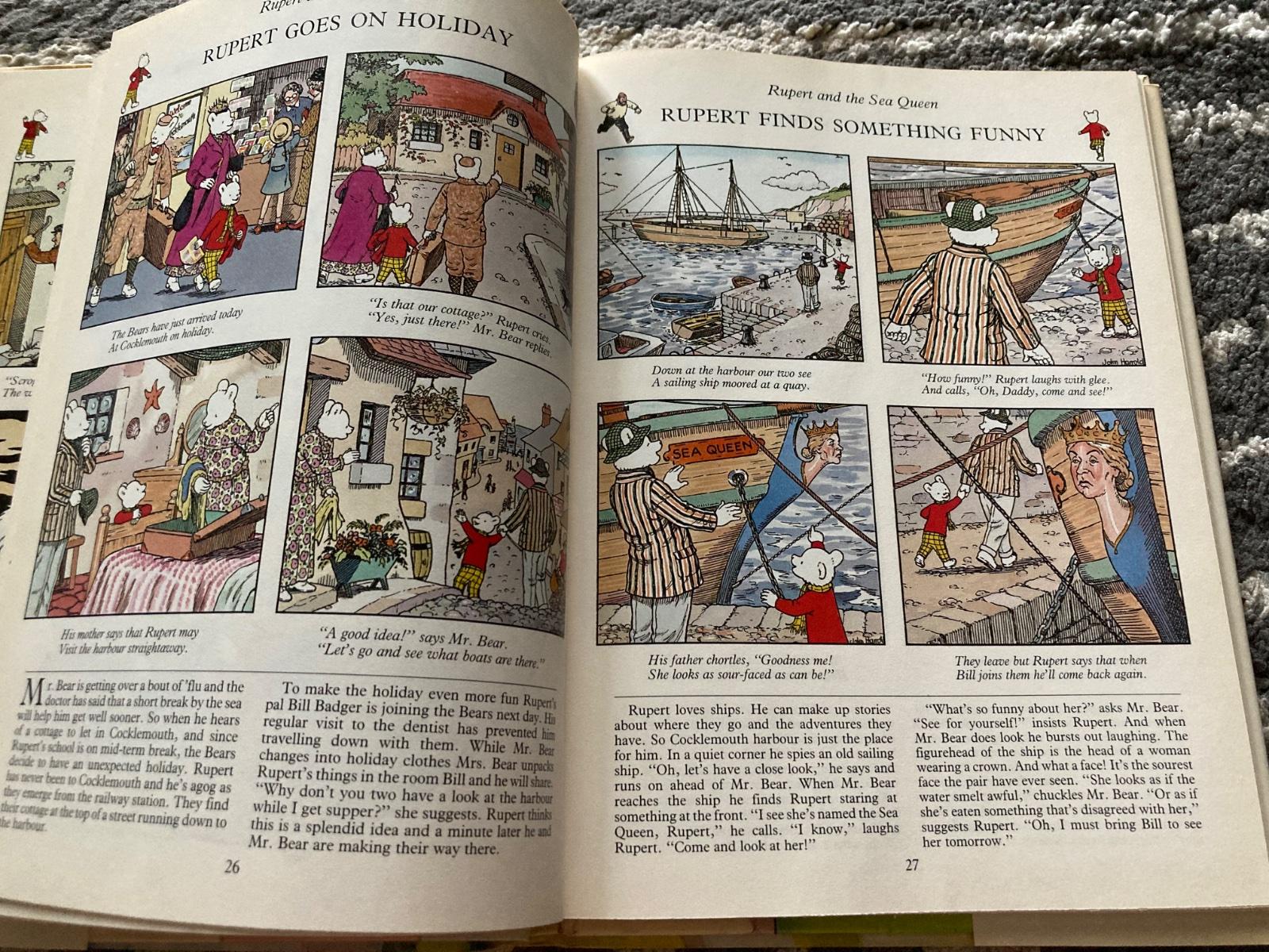 📌Vintage Rupert the bear 1990 anniversary 70 th year 1920-90 Daily Express annual , Free Rupert poster ( by John Harrold ) included on the back of the dustjack . full of colour comic strip adventures with all his friends all nine chapters.open day at the squires , Rupert and little yum, Rupert and the sea queen, Rupert and the eastern isle , fantastic book .