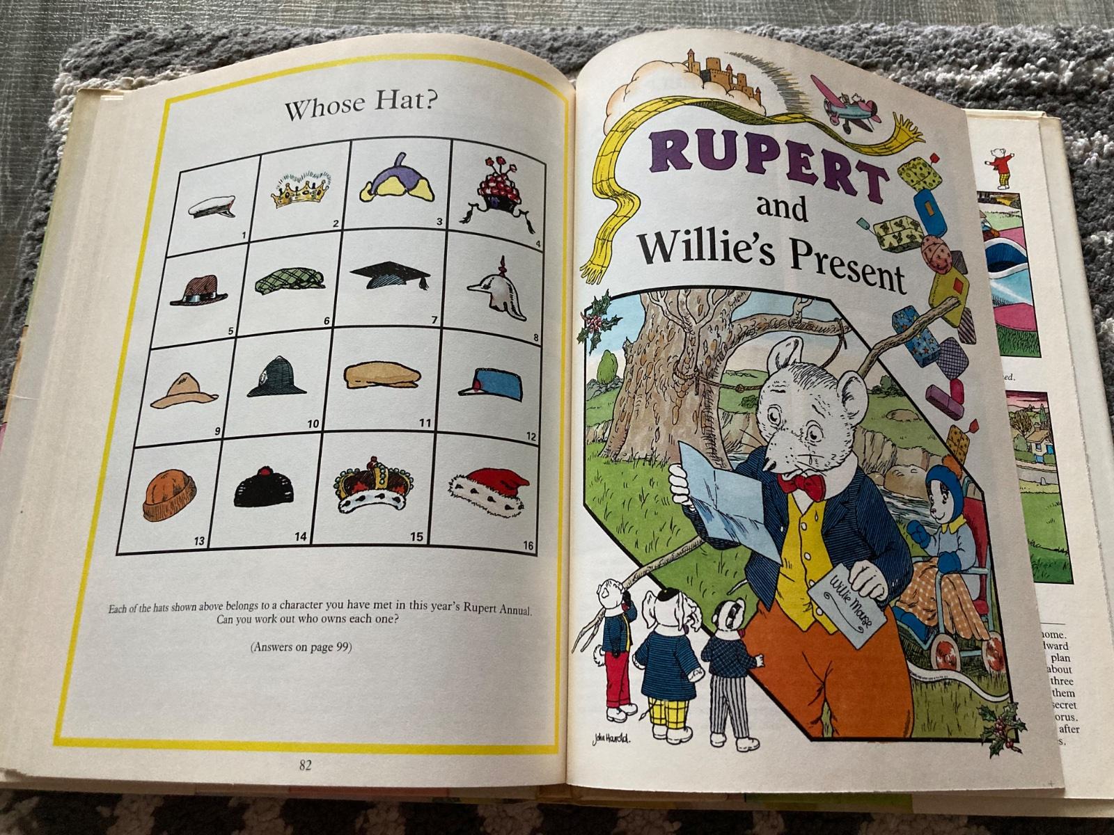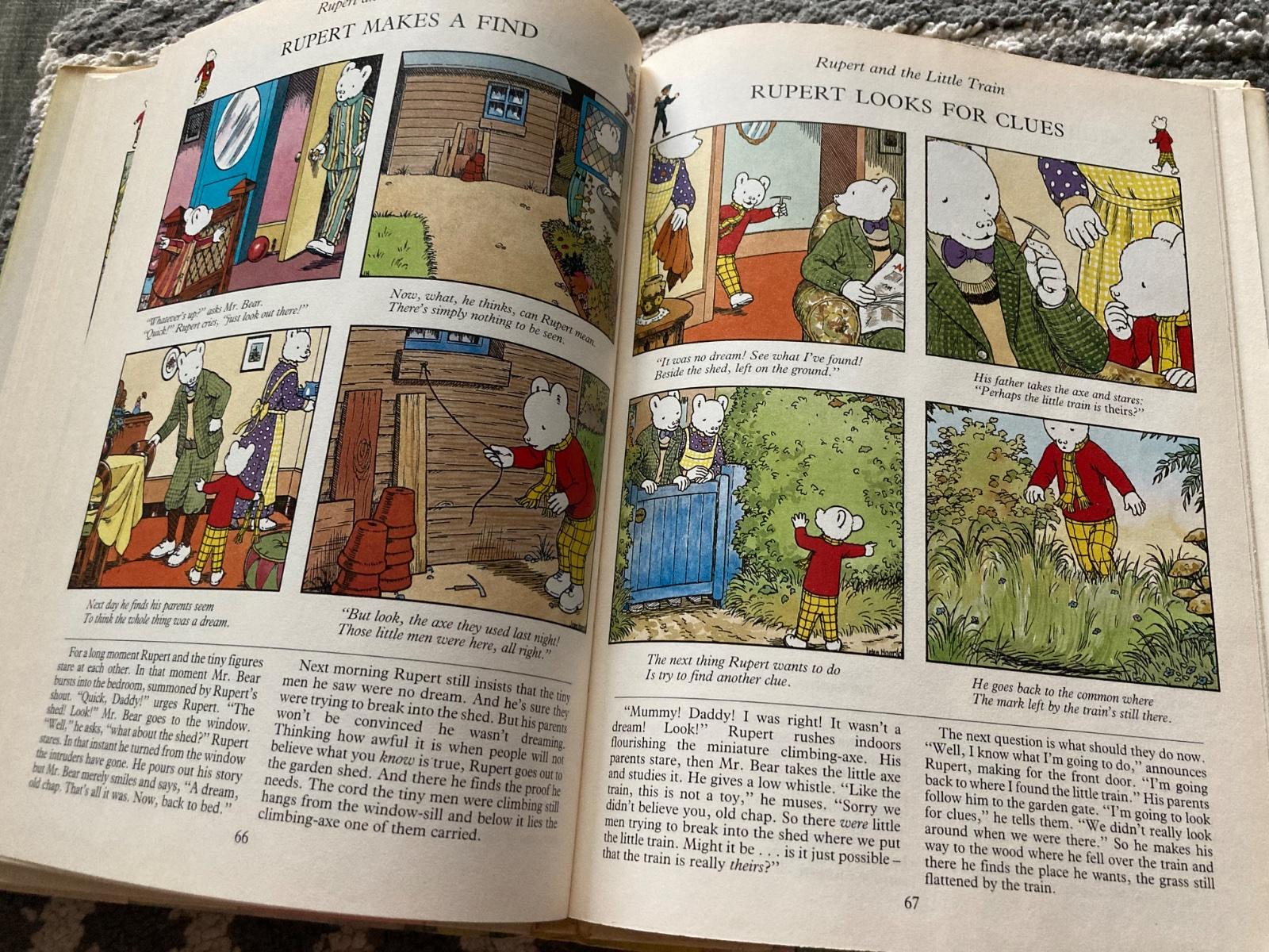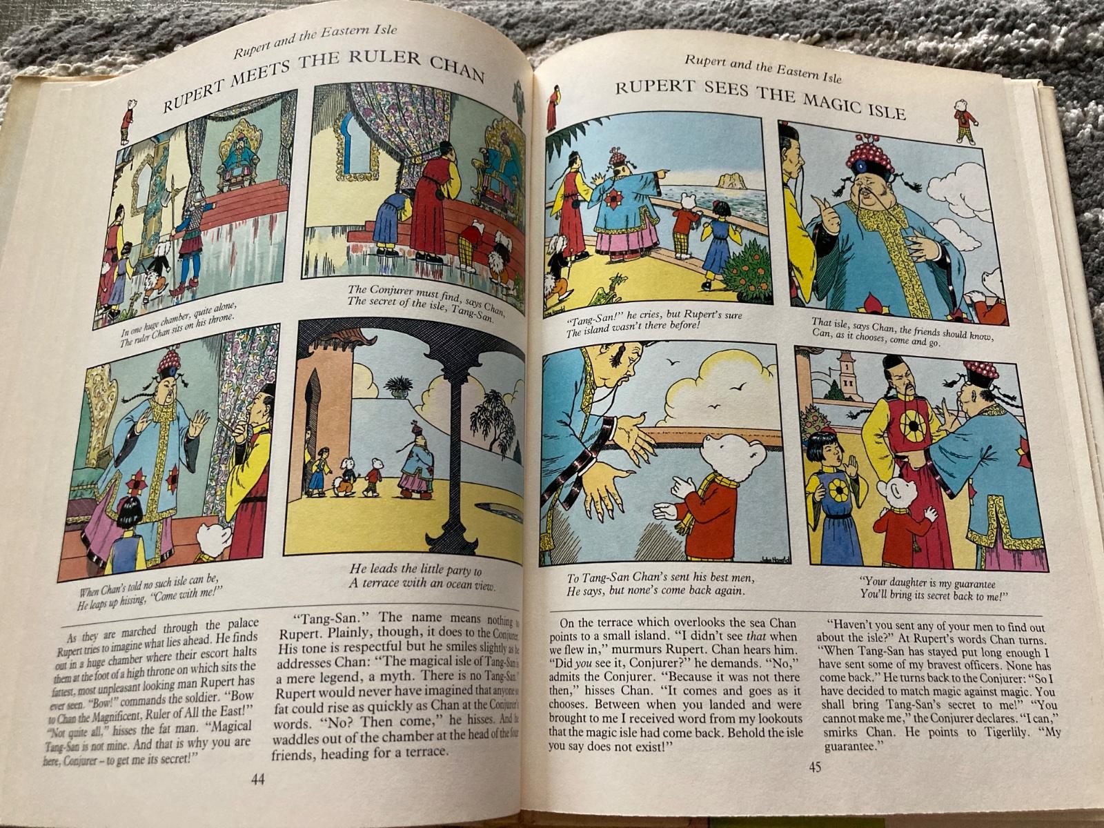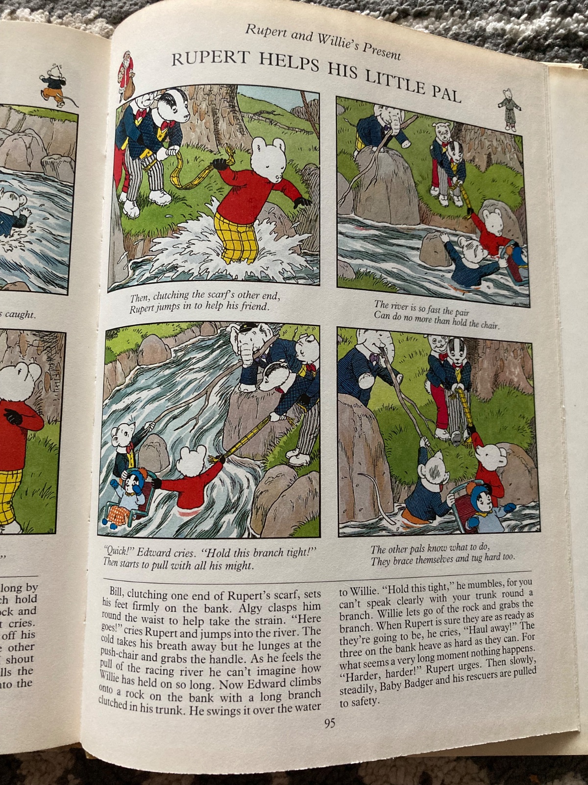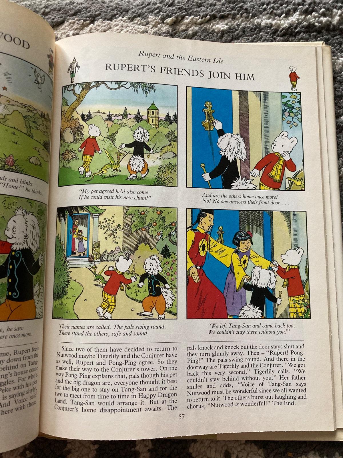 📌Vintage Rupert the bear 1990 anniversary 70 th year 1920-90 Daily Express annual , Free Rupert poster ( by John Harrold ) included on the back of the dustjack . full of colour comic strip adventures with all his friends all nine chapters.open day at the squires , Rupert and little yum, Rupert and the sea queen, Rupert and the eastern isle , fantastic book .