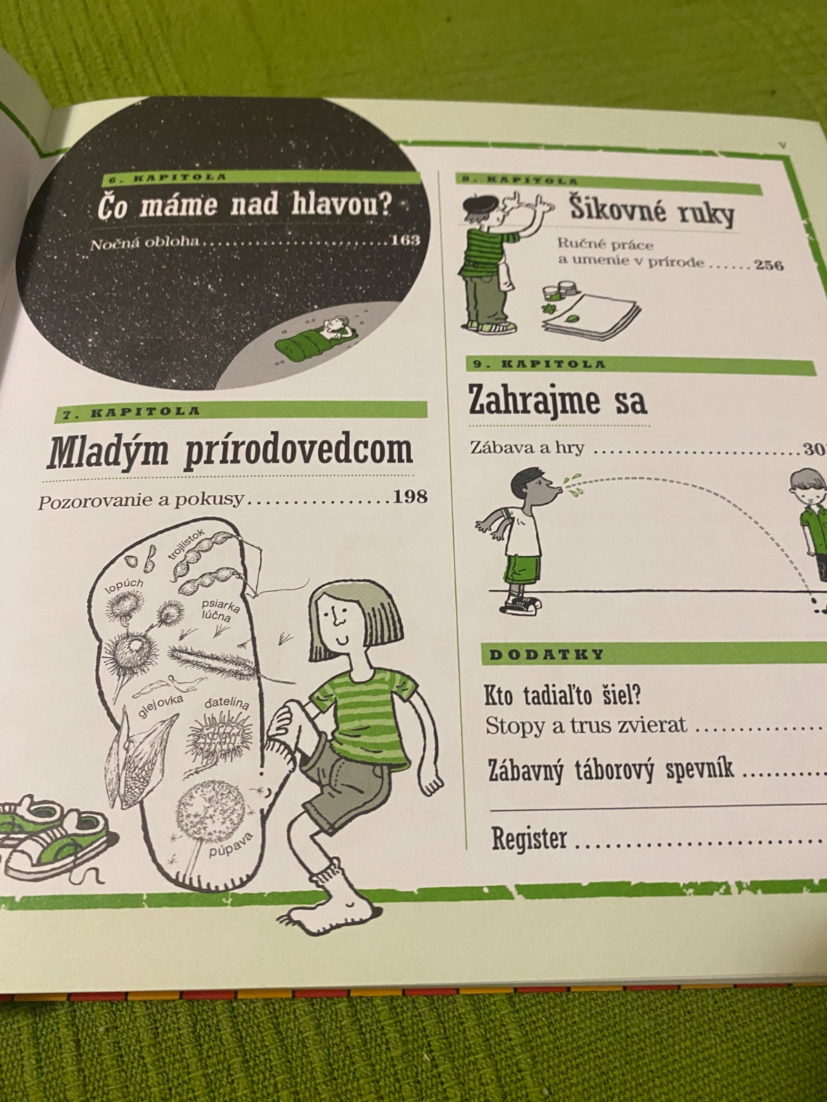 Či už plánujete prenocovanie u babky v záhrade alebo sa chystáte stráviť víkend v prírode, táto kniha obsahuje presne to, čo potrebujete vedieť. Od správneho výberu miesta na postavenie stanu, zoznamu nevyhnutných vecí, ktoré si treba zbaliť, až po recepty pre hladných táborníkov. Naučíte sa základné tábornícke zručnosti, dozviete sa niečo o prírode, môžete vyrobiť rôzne predmety z prírodnín alebo sa naučíte nové hry. Samé užitočné a potrebné veci pre život v prírode.