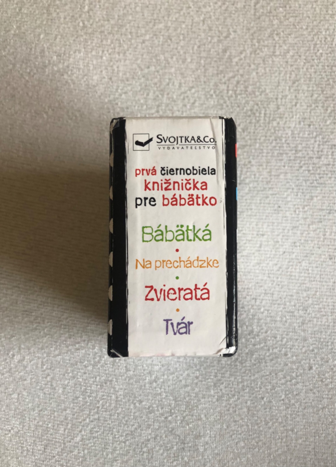 - čiernobiely variant s jemnými farebnými prvkami pre správny vývoj zraku bábätka