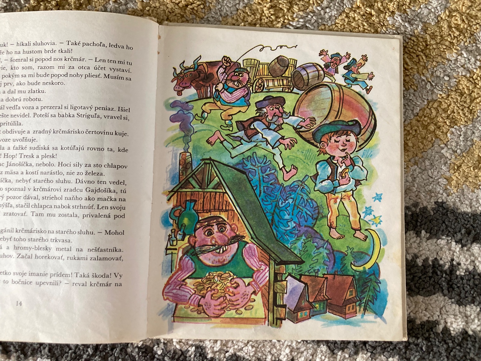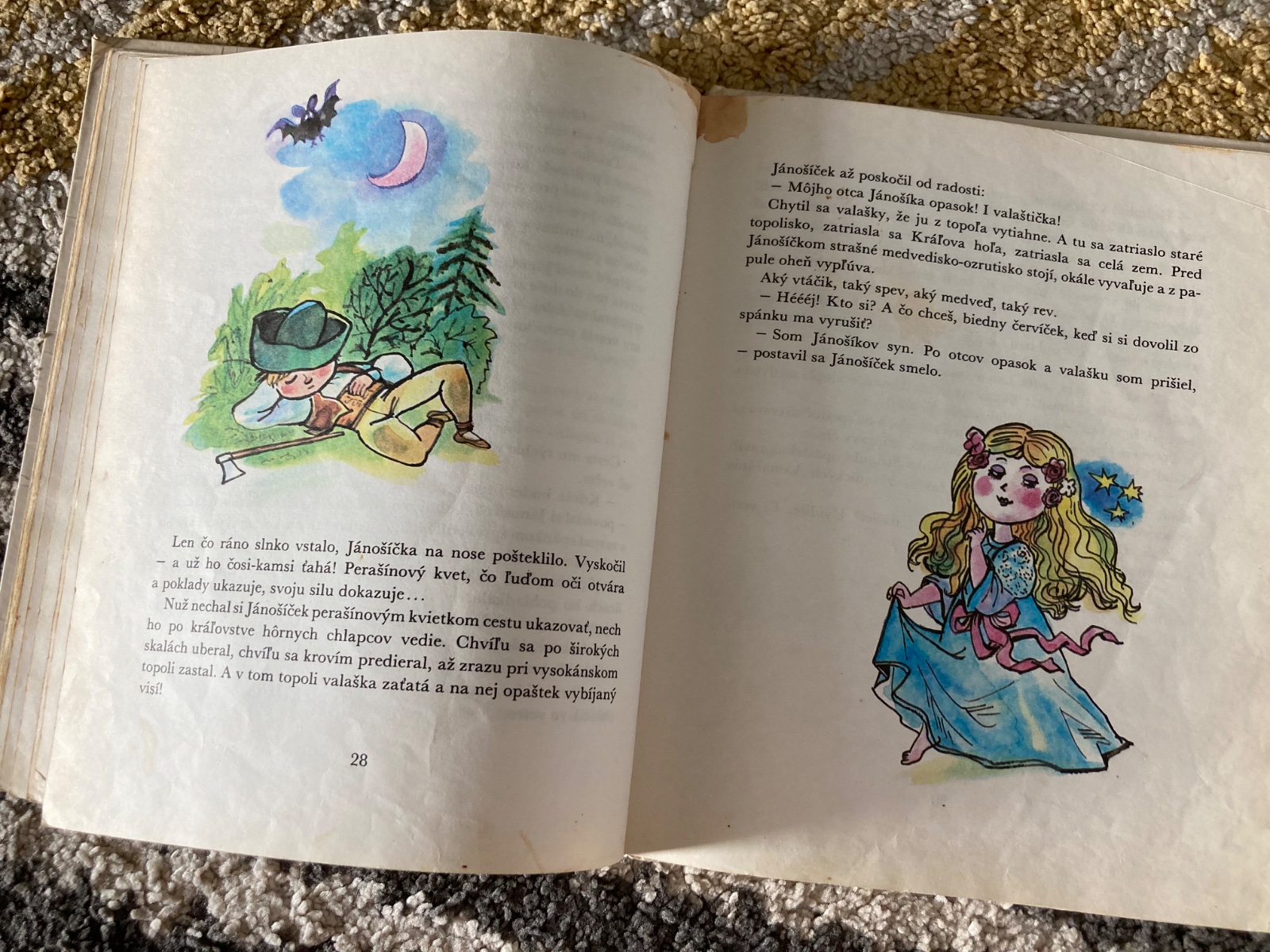 Pekný stav, krásna retro knižka, prvé vydanie z roku 1986, zachovalá s krásnymi ilustráciami, má pár fliačkov, čiastočné poškodenie rohov pevných knižných dosiek a rozpadávajúcu sa väzbu