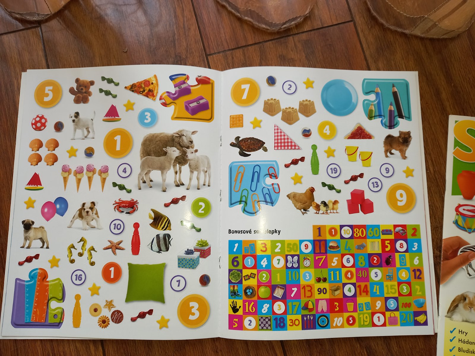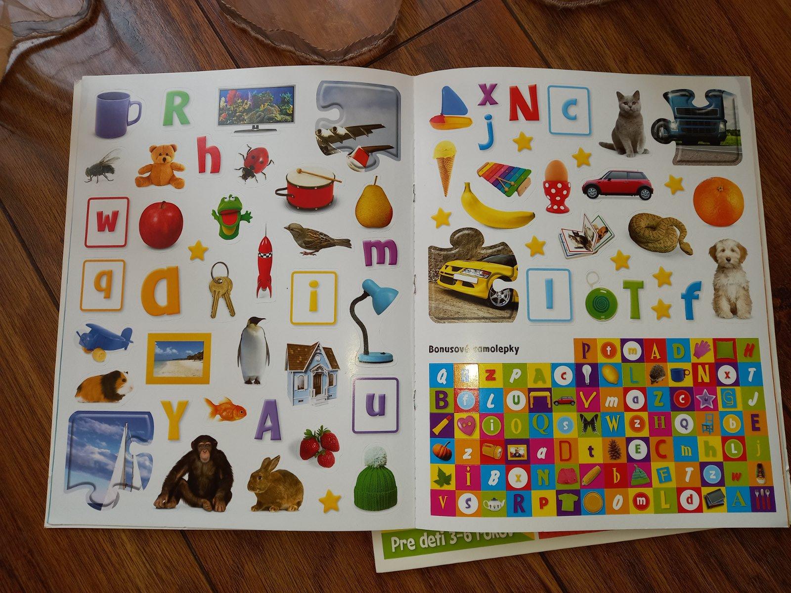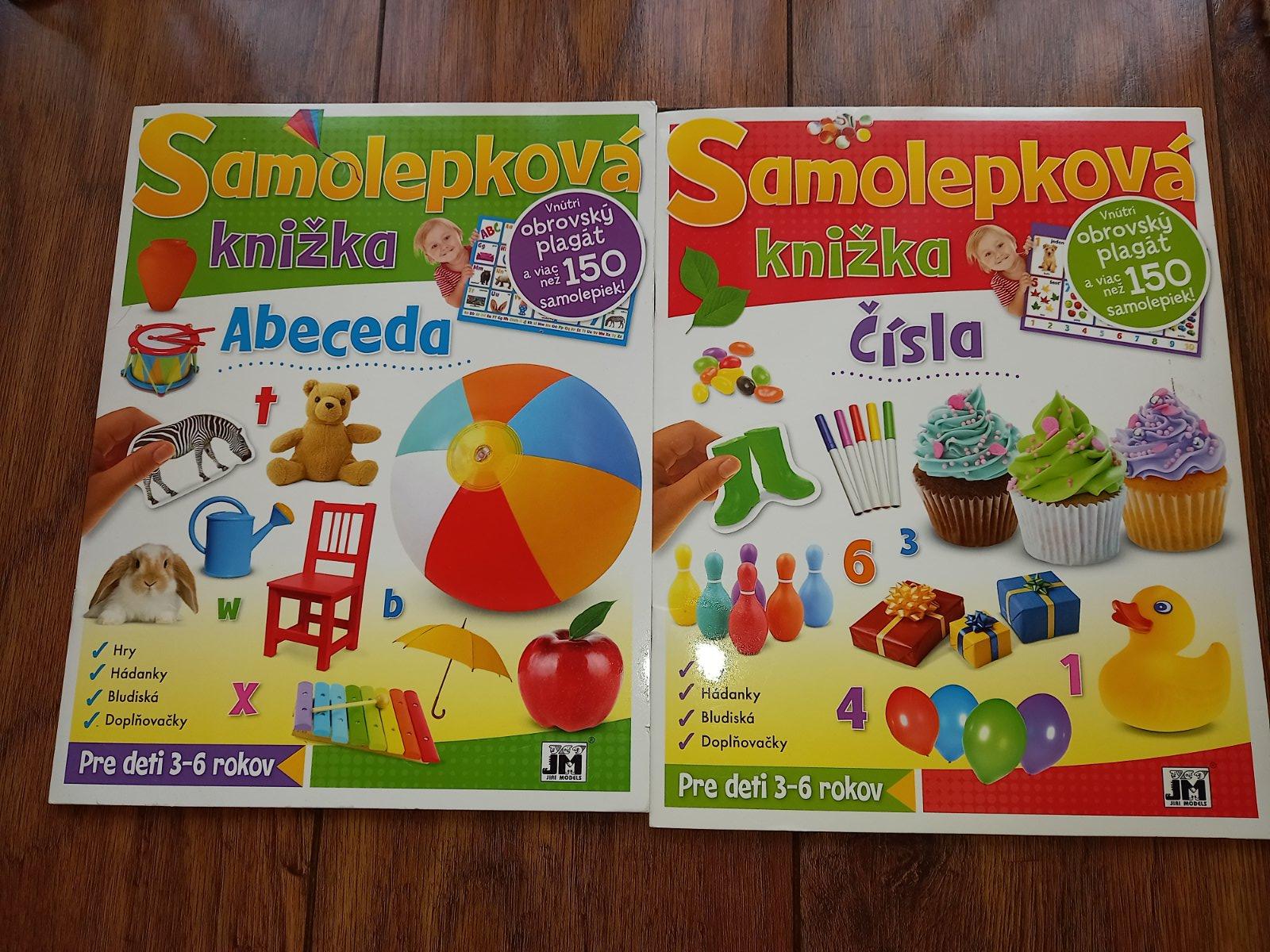 Predám tieto úplne nové dve vzdelávacie knižky s viac ako 300 nálepkami a dvoma veľkými plagátmi písmen abecedy a čísel. Kniha je plná hier, hádaniek, bludísk a doplňovačiek.Predávam spolu. Cena je za obe knihy.