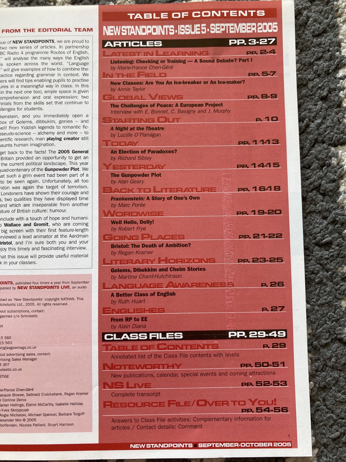 NEW STANDPOINTS THE ESSENTIAL MAGAZINE FOR TEACHERS OF ENGLISH: TEACHING § LEARNING