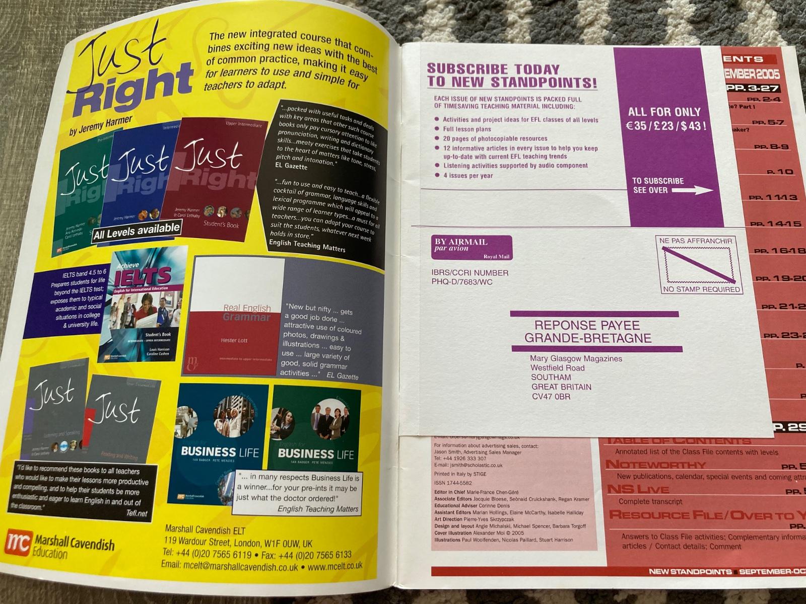 📌A monthly magazine mostly in English, some explanations in French, to be used as a resource for teachers of ESL, English as a second language. There are articles, exercises for various levels. The Essential magazine for Teachers of English.