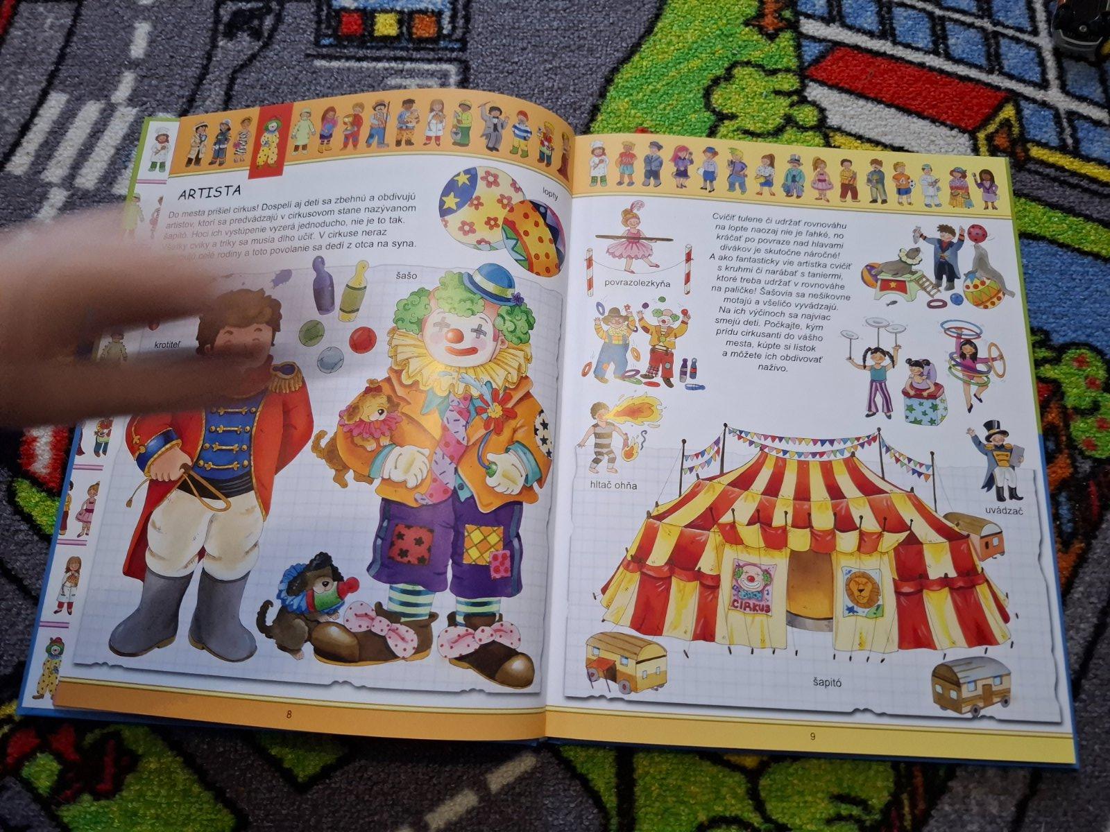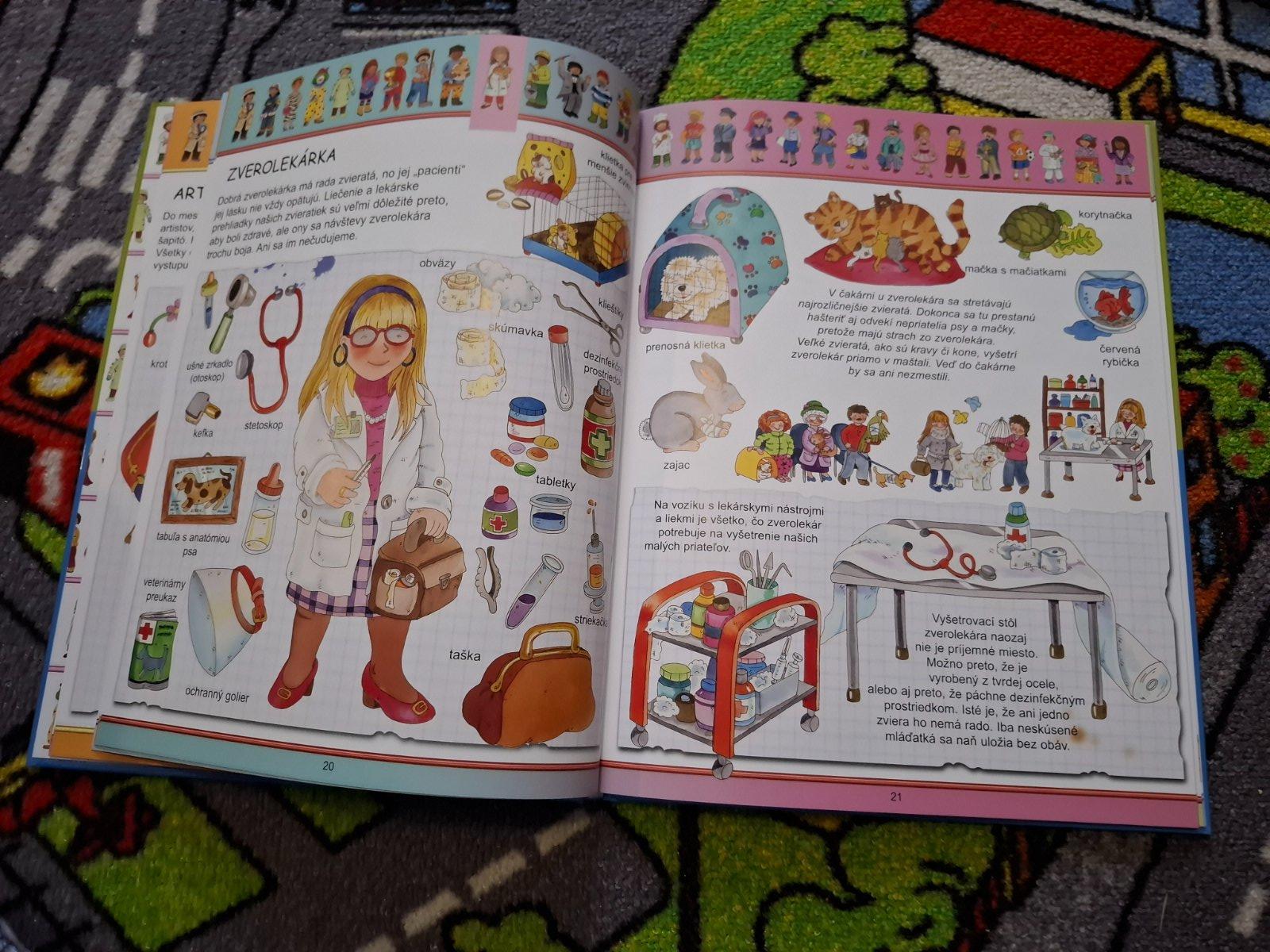 Kúpená nová, nezaujala, ani ju neprelistovali tak posúvam. Kúpila som ju primárne kvôli rozvoju reči lebo je veľmi dobre vo vnútri spracovaná, názorne nakreslené povolania a čo potrebujú rôzne profesie k svojej práci atď.