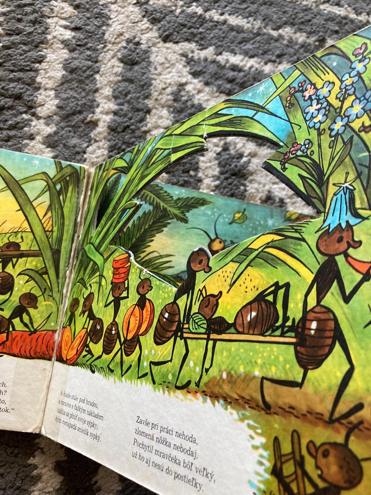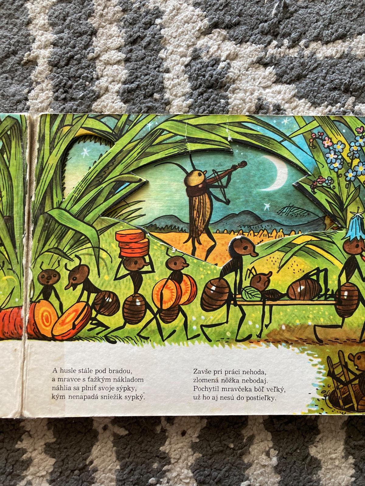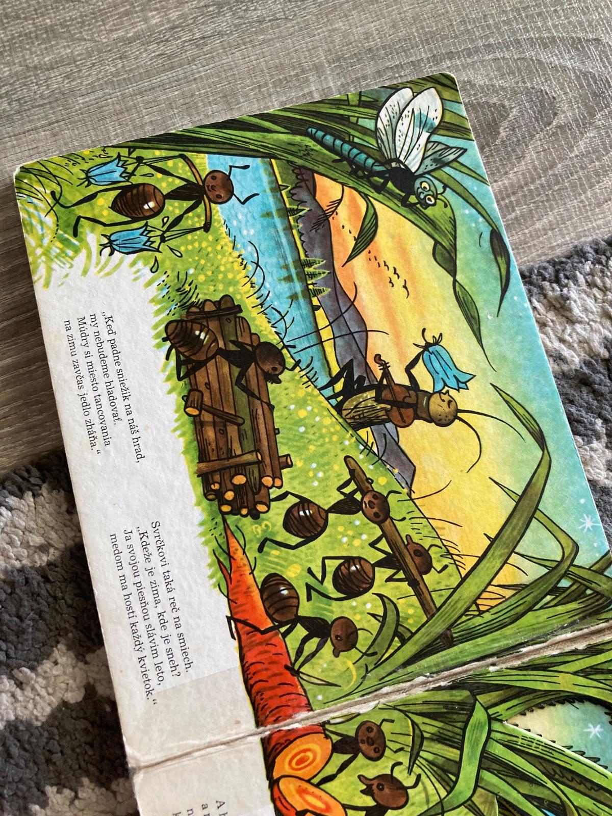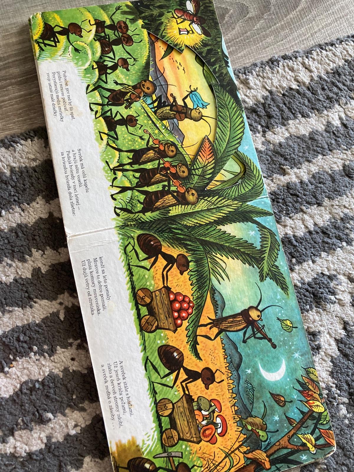 🔹Farebné vysekávané leporelo s pestrými ilustráciami zo sveta chrobáčikov. Dojemný príbeh o ľahkovážnom svrčkovi a usilovných mravcoch skvele prebásnila slovenská poetka Maša Haľamová. Tento krásny príbeh o tom, ako si kamaráti v núdzi pomáhajú, poznajú celé generácie slovenských detí