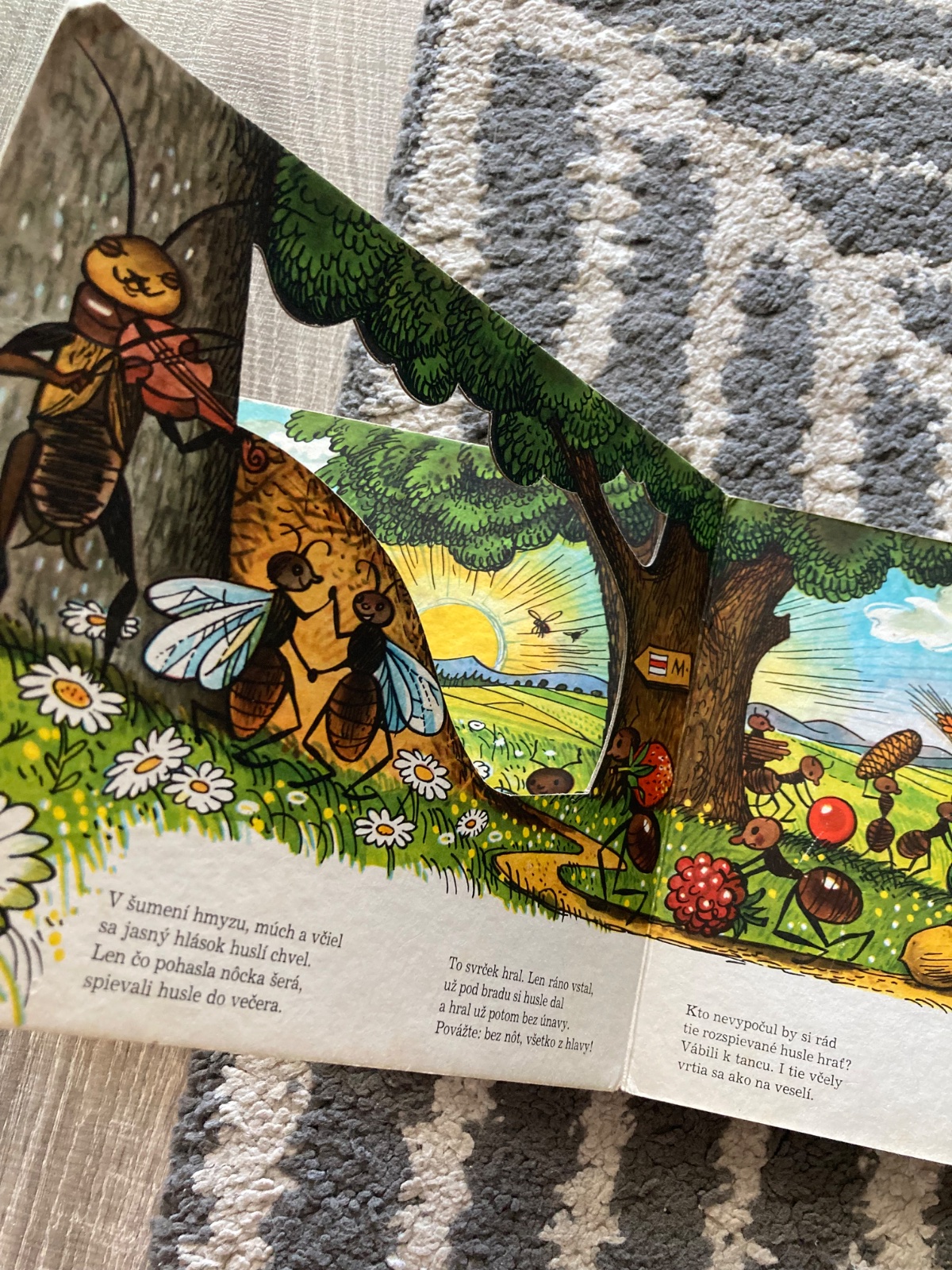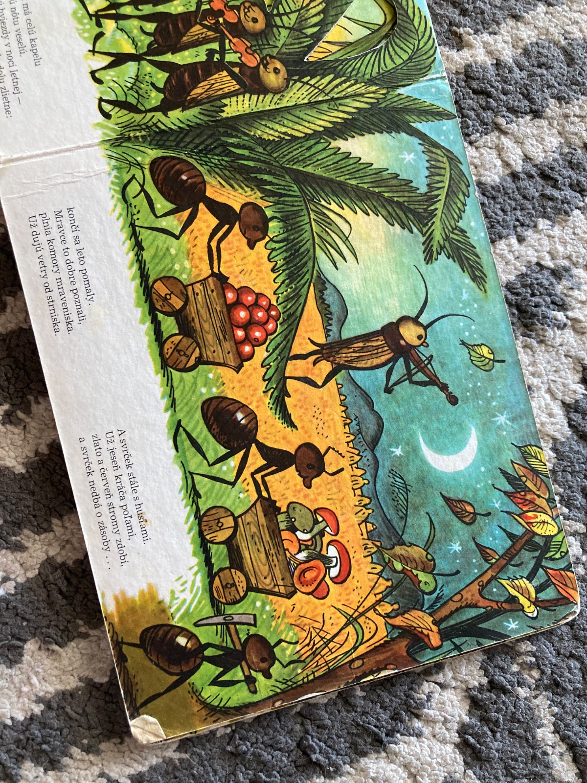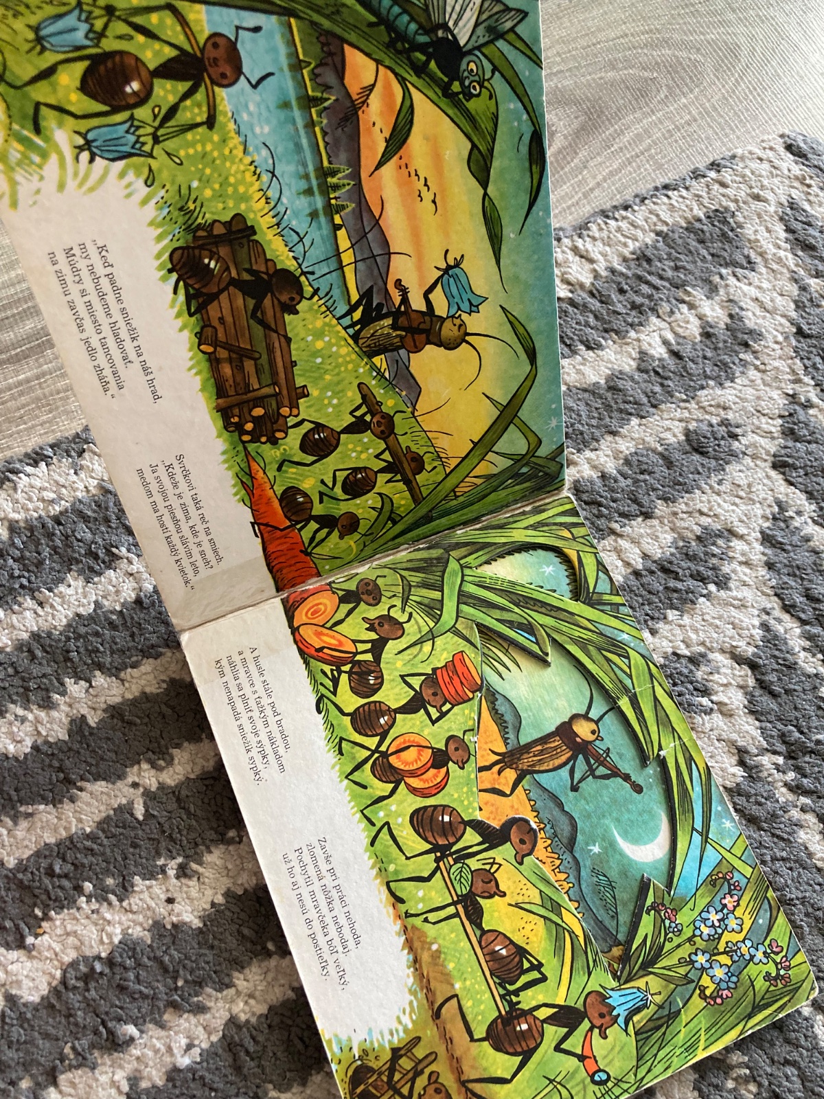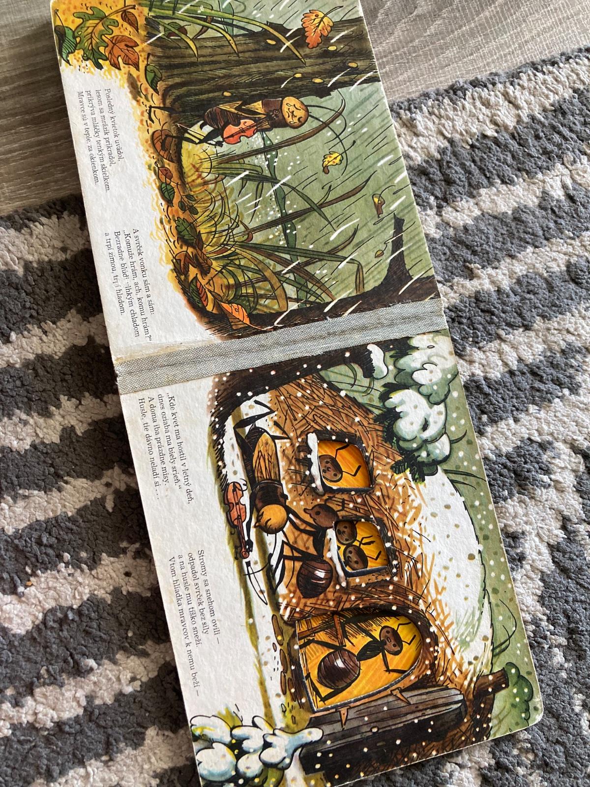 🔹Farebné vysekávané leporelo s pestrými ilustráciami zo sveta chrobáčikov. Dojemný príbeh o ľahkovážnom svrčkovi a usilovných mravcoch skvele prebásnila slovenská poetka Maša Haľamová. Tento krásny príbeh o tom, ako si kamaráti v núdzi pomáhajú, poznajú celé generácie slovenských detí