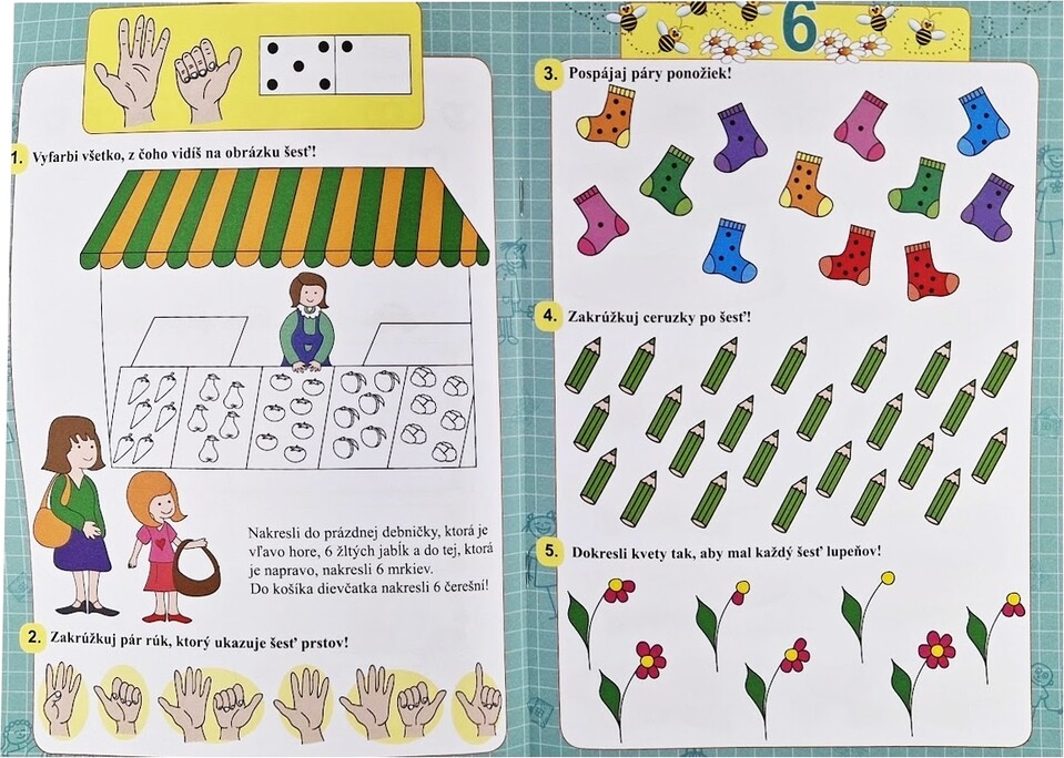Hravé úlohy zavedú 5 až 6 ročných škôlkarov do sveta čísel, množstiev a tvarov. Je užitočnou pomôckou pri vytváraní zručností potrebných pri počítaní. Pomáha rozvíjať schopnosť pozorovania, logiku, orientáciu v priestore a jemnú motoriku rúk.