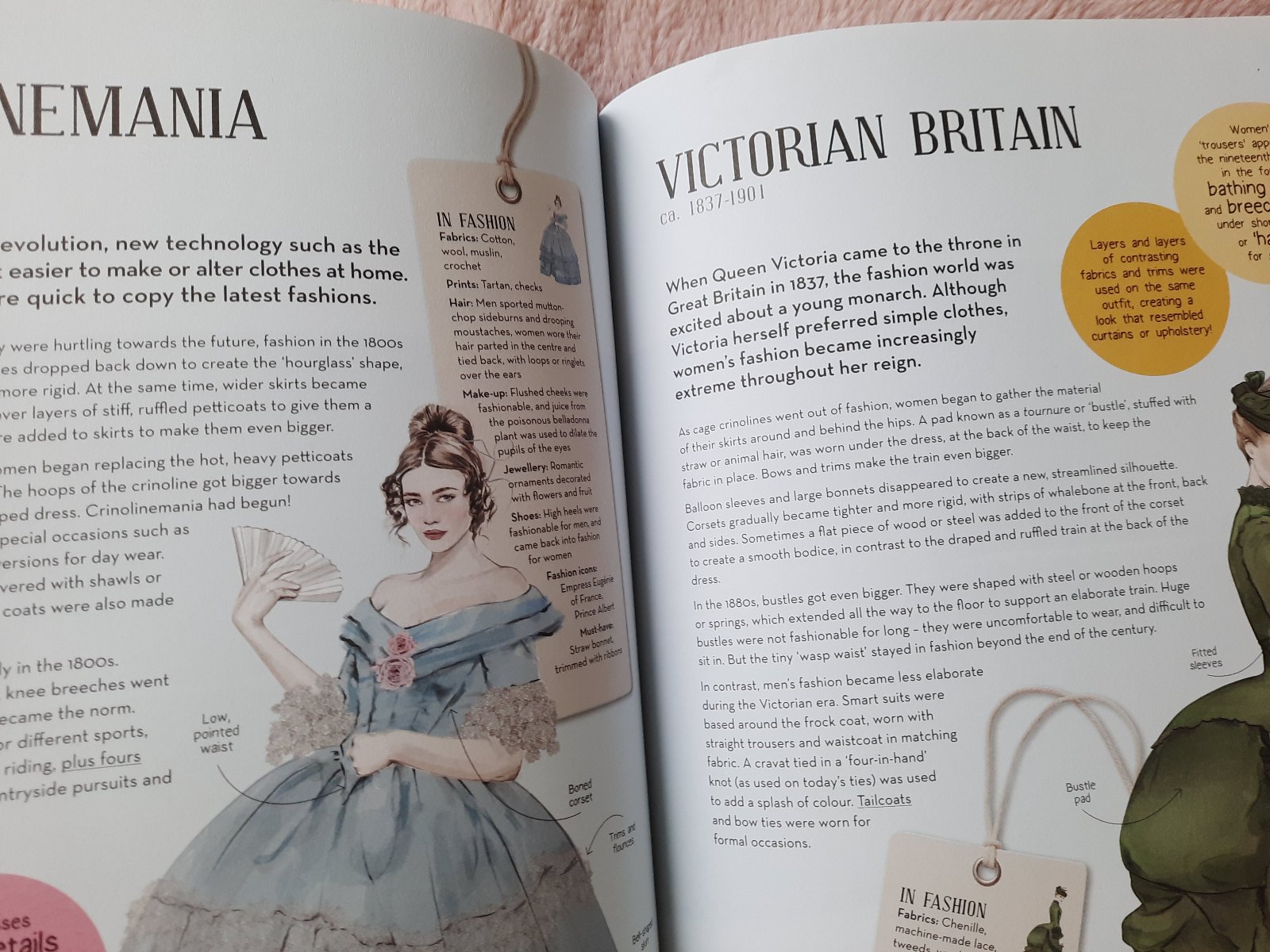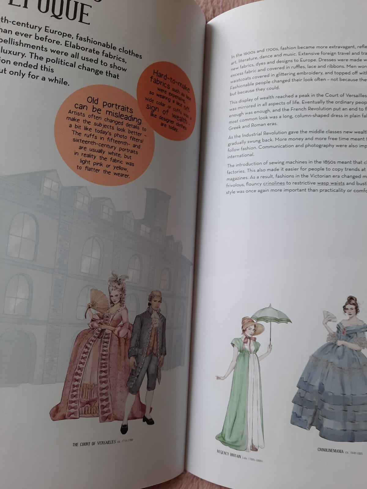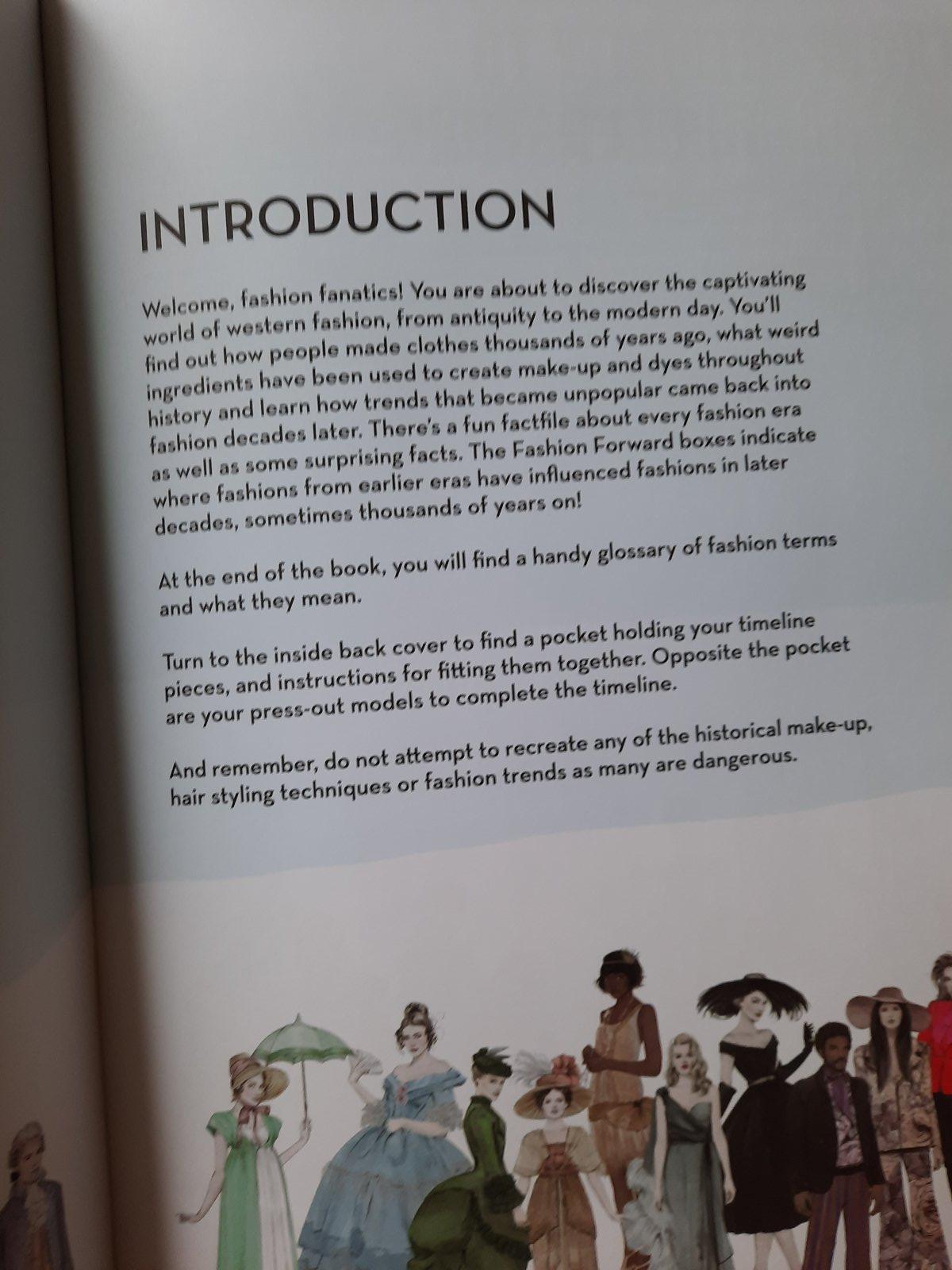 Na každom liste je zobrazená dobová móda daného obdobia so zaujímavosťami a faktami. Na záver v knižke sú všetky modely zobrazené osobitne - dajú sa z knižky vybrať a vložiť do stojana, ktorý je tiež súčasťou knižky.