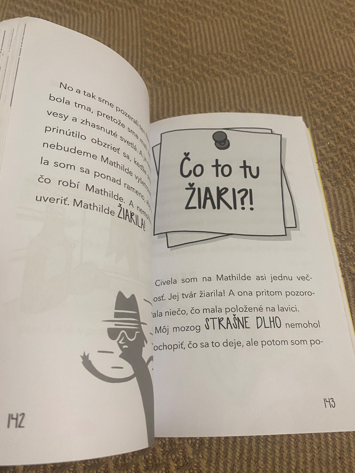Do triedy prichádza nová spolužiačka. Volá sa Mathilde a je to Francúzka. Lenže sa s Lízou a jej kamarátmi vôbec nebaví, stále si niečo zapisuje do notesa, a vôbec je celá taká podozrivá. Ešte aby to tak bola špiónka! Treba to zistiť a prekaziť jej diabolské plány. Tu ide o budúcnosť celej školy! Humorný príbeh zo školského prostredia rozpráva jeho hlavná protagonistka Líza, ktorá si neberie servítky a všetko komentuje s úprimnosťou a bezprostrednosťou sebe vlastnou. Kniha pobaví deti od siedmich rokov, aj ich rodičov. Čo keď všetko bude nakoniec úplne inak, než sa zdá? To zistíme. Že sa pri tom krutoprísne nasmejete, to nie je žiadne špiónske tajomstvo.