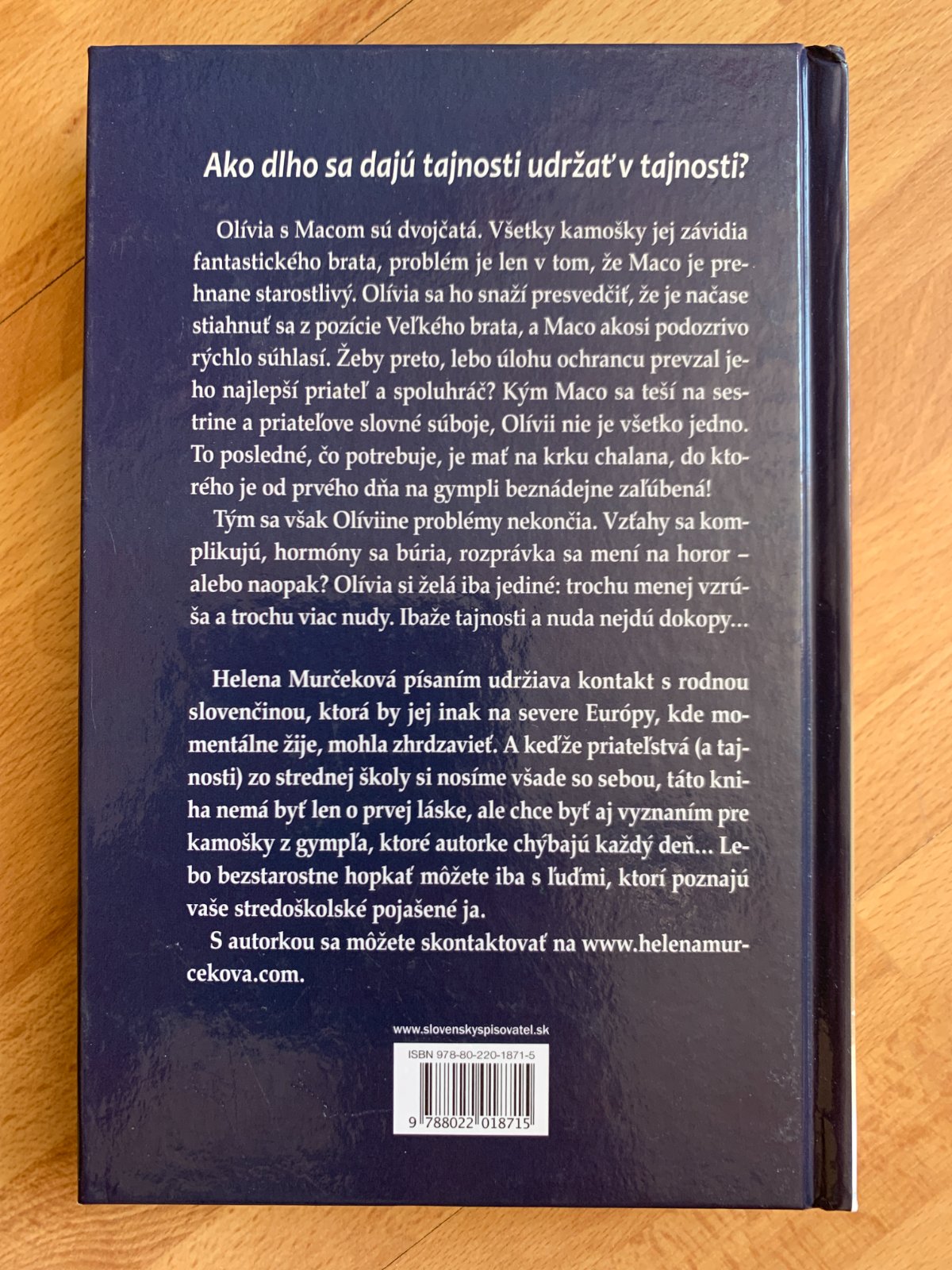 Ako dlho sa dajú tajnosti udržať v tajnosti?Olívia s Macom sú dvojčatá. Všetky kamošky jej závidia skvelého brata, lenže Maco je prehnane starostlivý. Olívia sa ho snaží presvedčiť, aby sa konečne stiahol z pozície Veľkého brata, a Maco akosi rýchlo súhlasí. Žeby preto, lebo úlohu ochrancu prevzal jeho najlepší priateľ? Kým Maco sa teší na sestrine a priateľove slovné súboje, Olívii nie je všetko jedno. Posledné, čo potrebuje, je mať na krku chalana, do ktorého je beznádejne zaľúbená! Vzťahy sa komplikujú, hormóny sa búria a Olívia si želá jediné: trochu menej vzrúša a trochu viac nudy. Ibaže tajnosti a nuda nejdú dokopy...