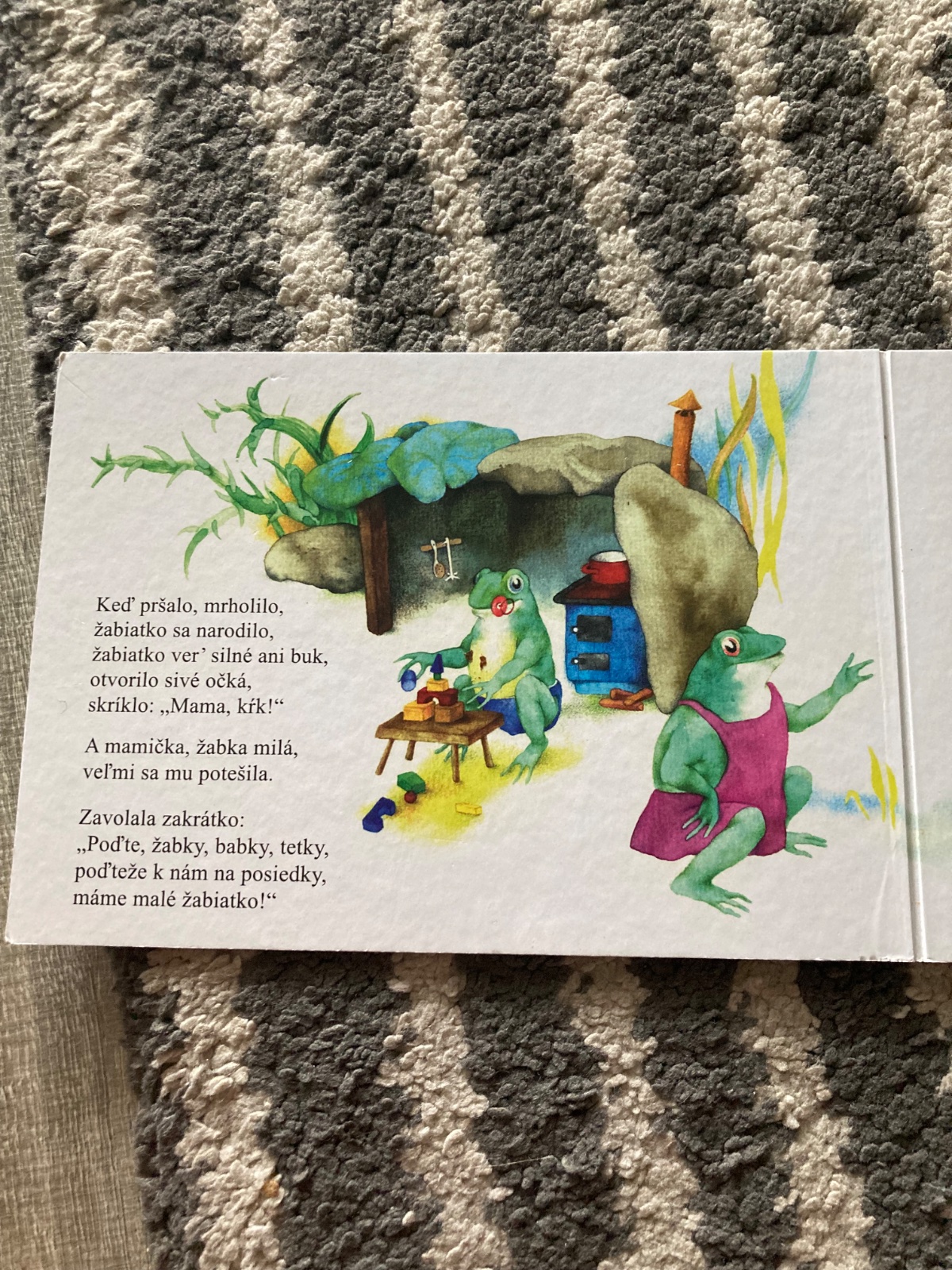 Žabiatko ver silné ani buk, otvorilo sivé očká, skríklo: „Mama, kŕk!“