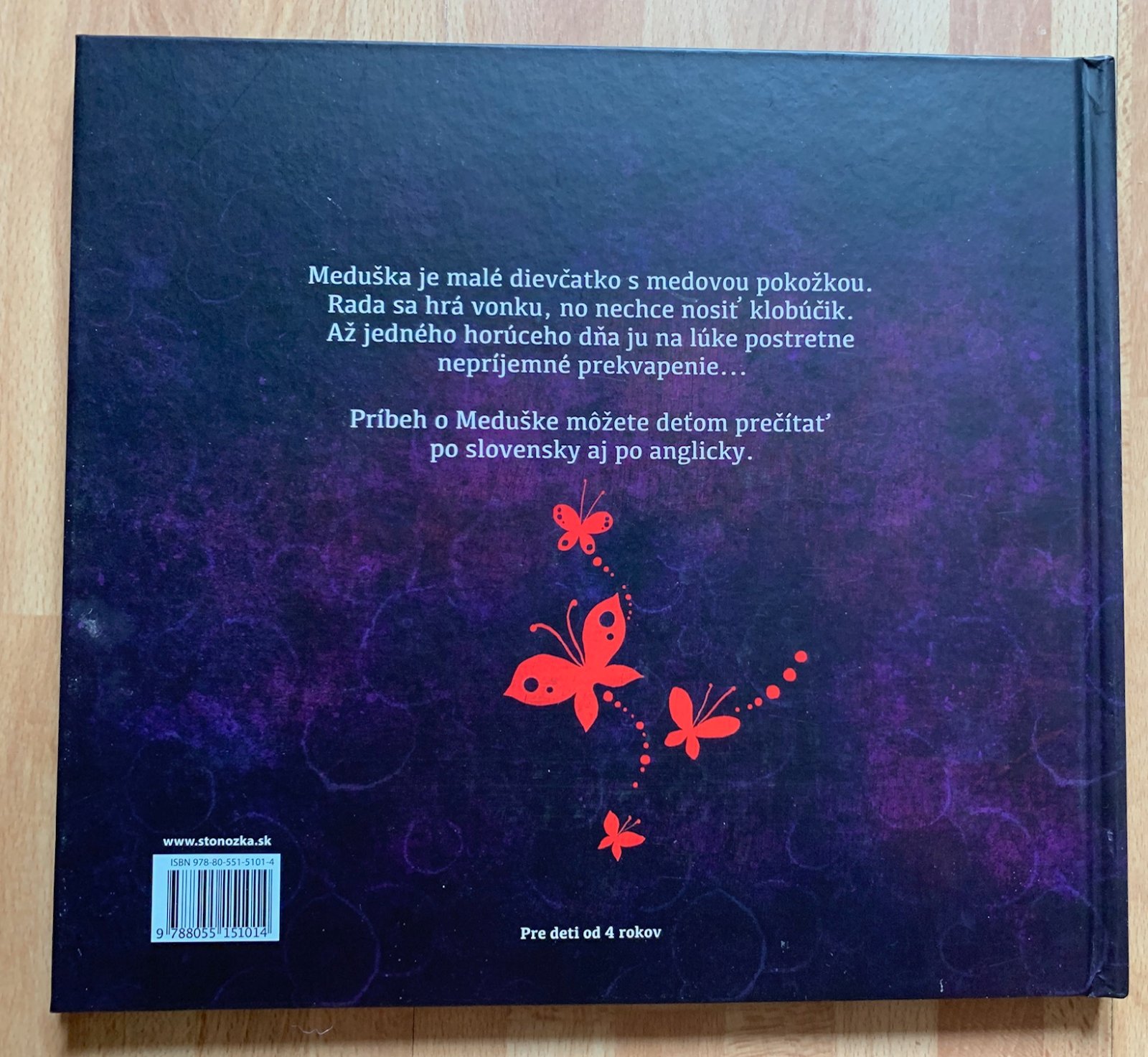 Meduška je malé dievčatko s medovou pokožkou. Rada sa hrá vonku, no nechce nosiť klobúčik. Až jedného horúceho dňa ju na lúke postretne nepríjemné prekvapenie...