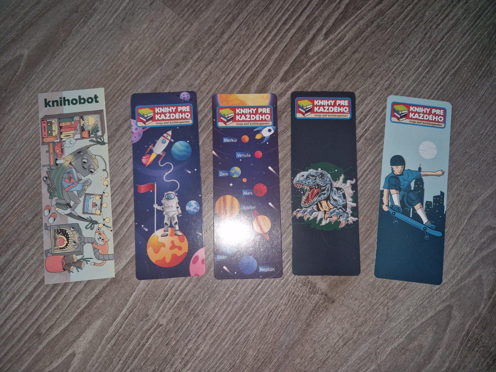 Zalozka s obrazkom kozmonaut , dino a skater , cena za kus