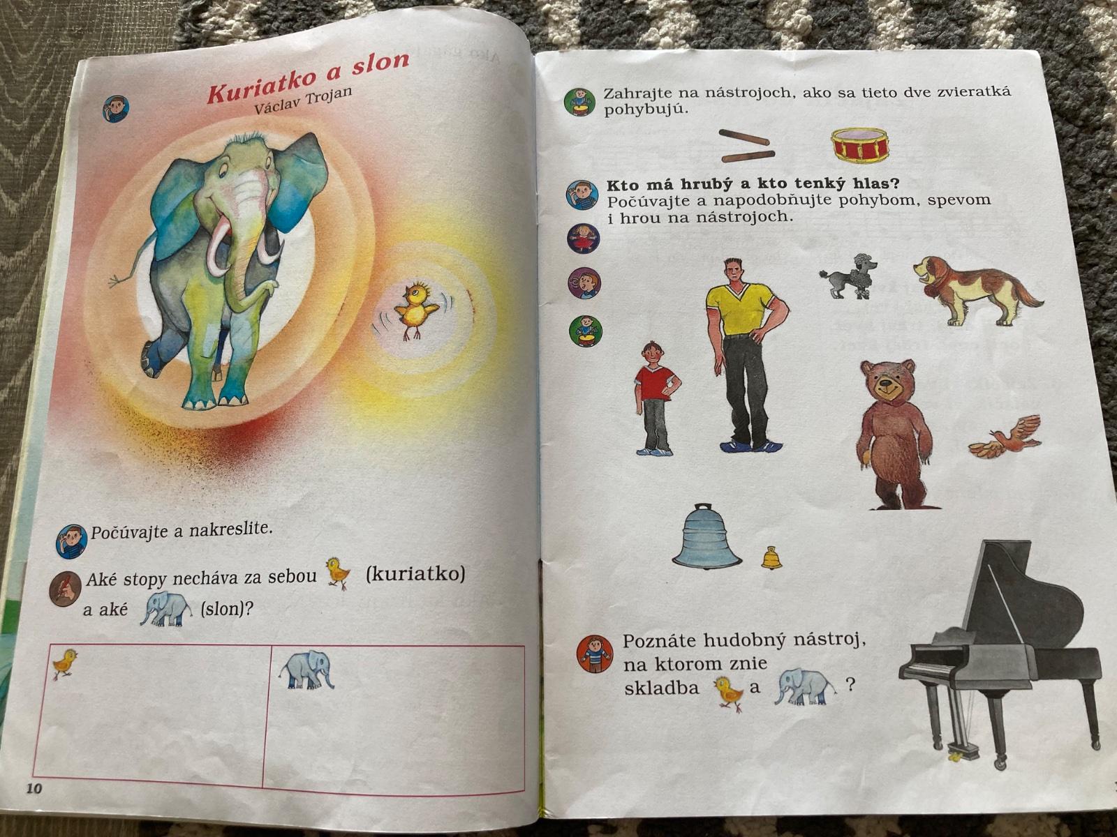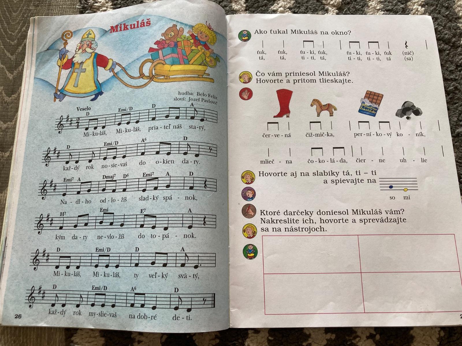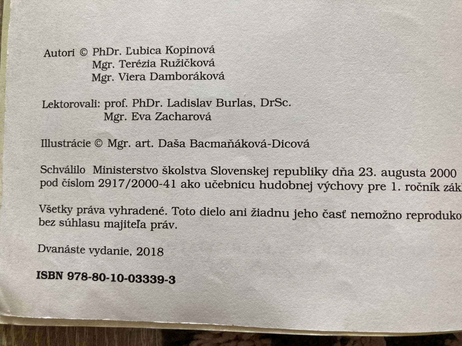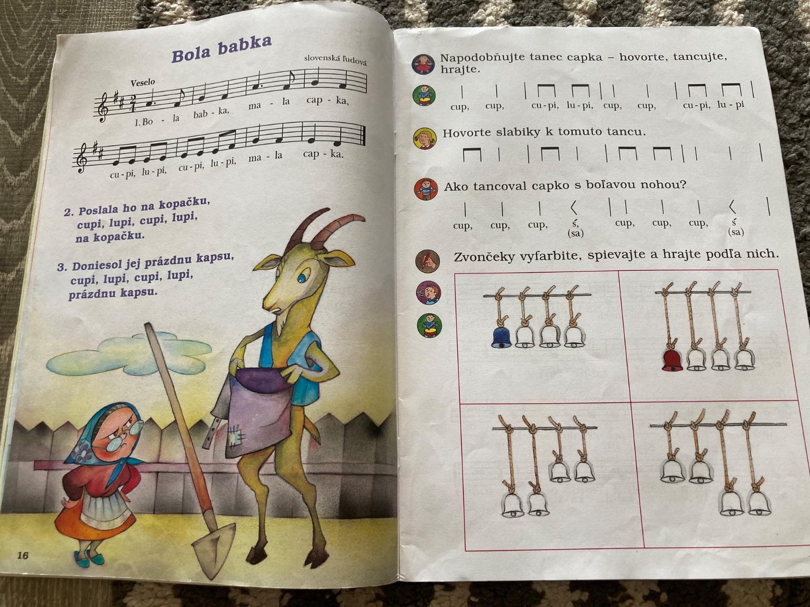 📌Hudobná výchova pre 1.ročník ZŠ je pre prváčikov tým pravým sprievodcom do sveta hudby. Nájdete v nej slovenské ľudové piesne, známe vyčítanky, riekanky, hudobné hádanky a koledy a to všetko v sprievode zvučných mien zo sveta hudby a literatúry (E. Suchoň, P.I. Čajkovskij, J. Matuška, B. Felix, D. Hevier, Ľ. Podjavorinská, J. Pavlovič...)