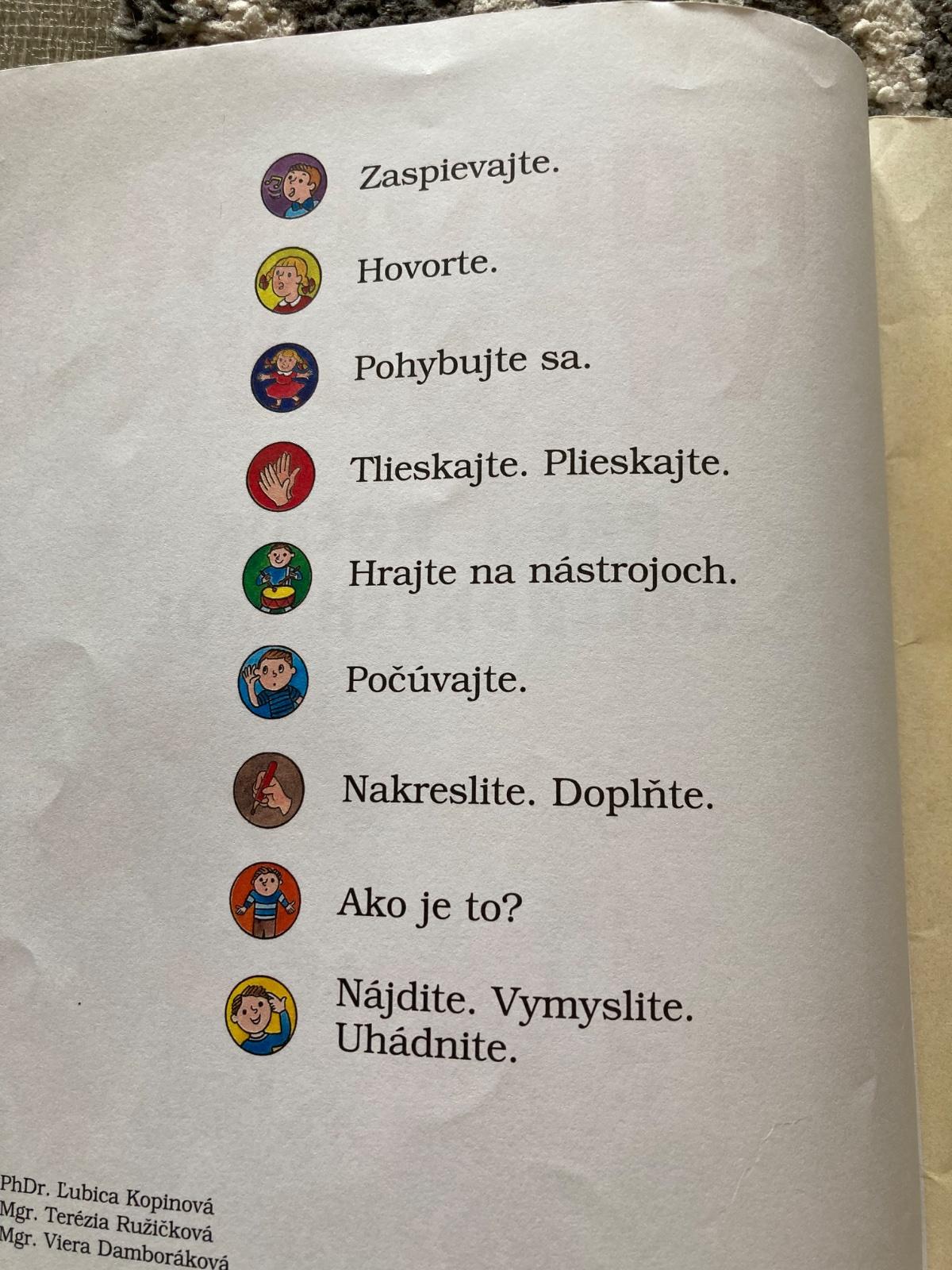 📌Žiaci sa naučia nielen spievať a počúvať, ale pomocou hravých a názorných piktogramov v celej knihe si precvičia aj svoju pozornosť a budú si osvojovať mnohé zručnosti ako sú hra na hudobné nástroje, kreslenie, dopĺňanie a hovorenie. Hudobno- pohybové hry precvičia aj ich motoriku.