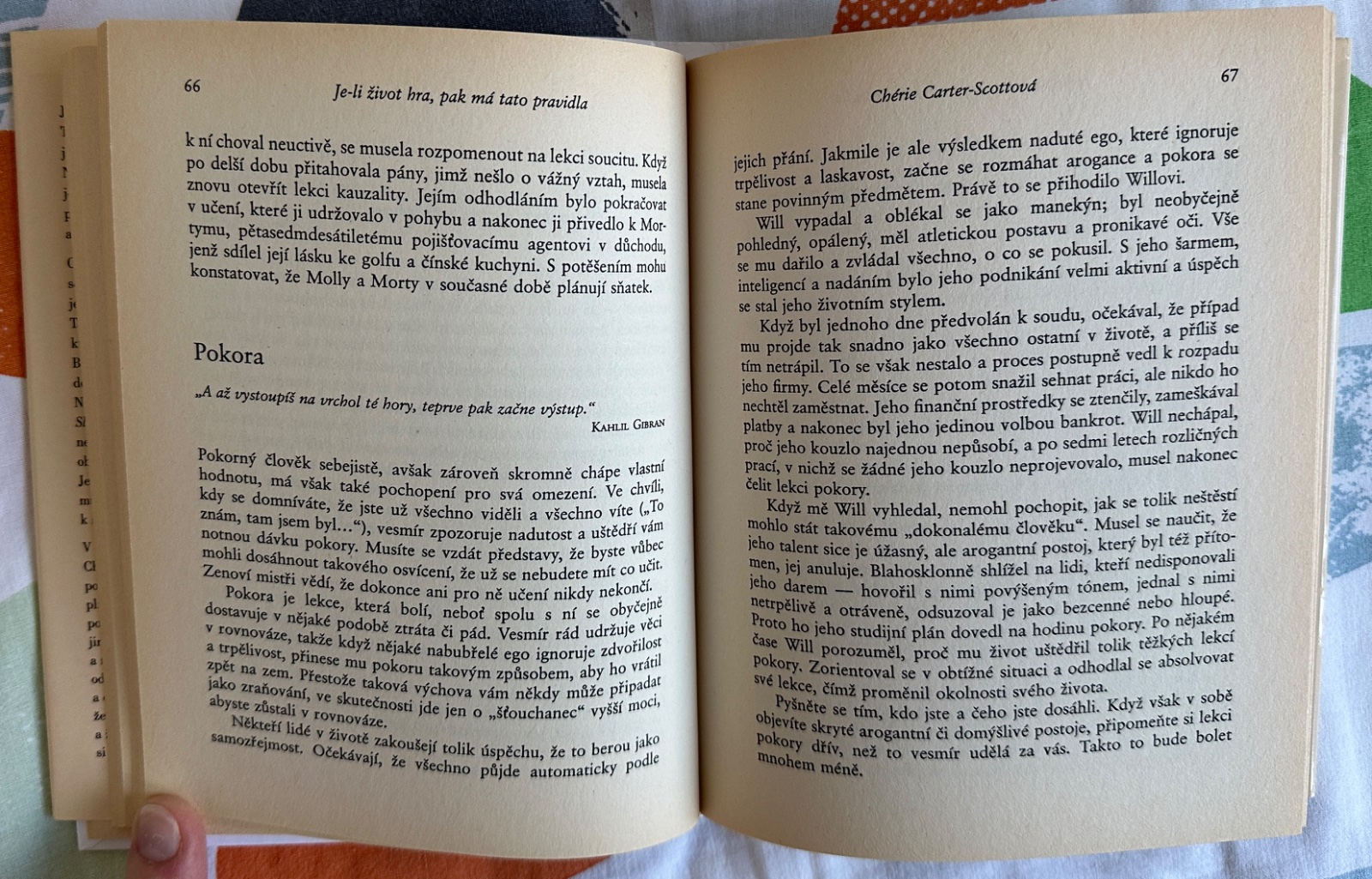 Autorka v knize rozebírá deset pravidel lidskosti, jak byly uvedeny v knize Slepičí polévka pro duši. Z obsahu: Dostanete tělo, Budete absolvovat lekce, Neexistují chyby, jen lekce, Lekce se opakují do zvládnutí, Učení končí, "Tam" není lepší než "Tady", Ostatní jsou jen vaším odrazem,....