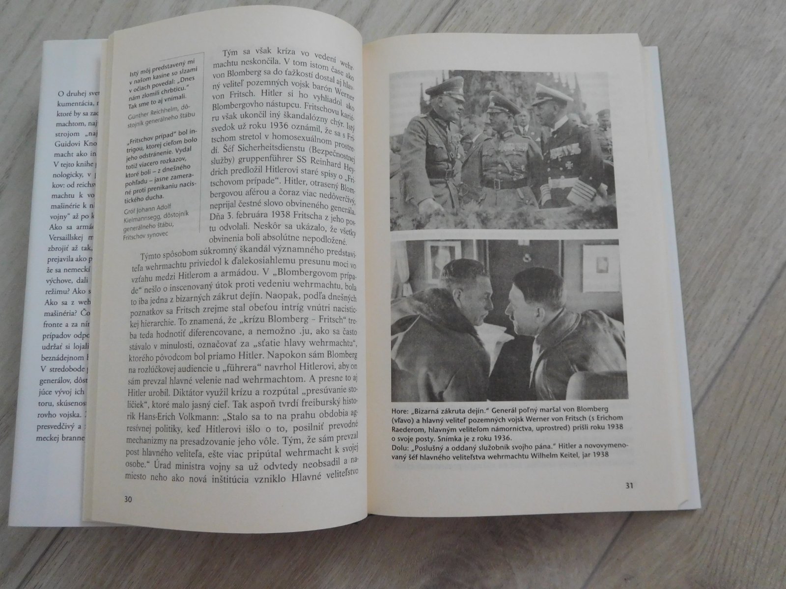 O druhej svetovej vojne existuje bohatá dokumentácia, no málo je takých dokumentov, ktoré by sa zaoberali priamo nemeckým wehrmachtom, najvýznamnejším mocenským nástrojom „najvyššieho vojvodcu“ Hitlera. Guidovi Knoppovi však nejde iba o wehrmacht ako inštitúciu, ale aj o jeho aktérov. V tejto knihe prerozprával jeho históriu chronologicky, v postupnosti jeho hlavných medzníkov: od reichswehru k wehrmachtu, od wehrmachtu k vojnovej mašinérii, od vojnovej mašinérie k ničivému molochu, od „totálnej vojny“ až po kapituláciu.