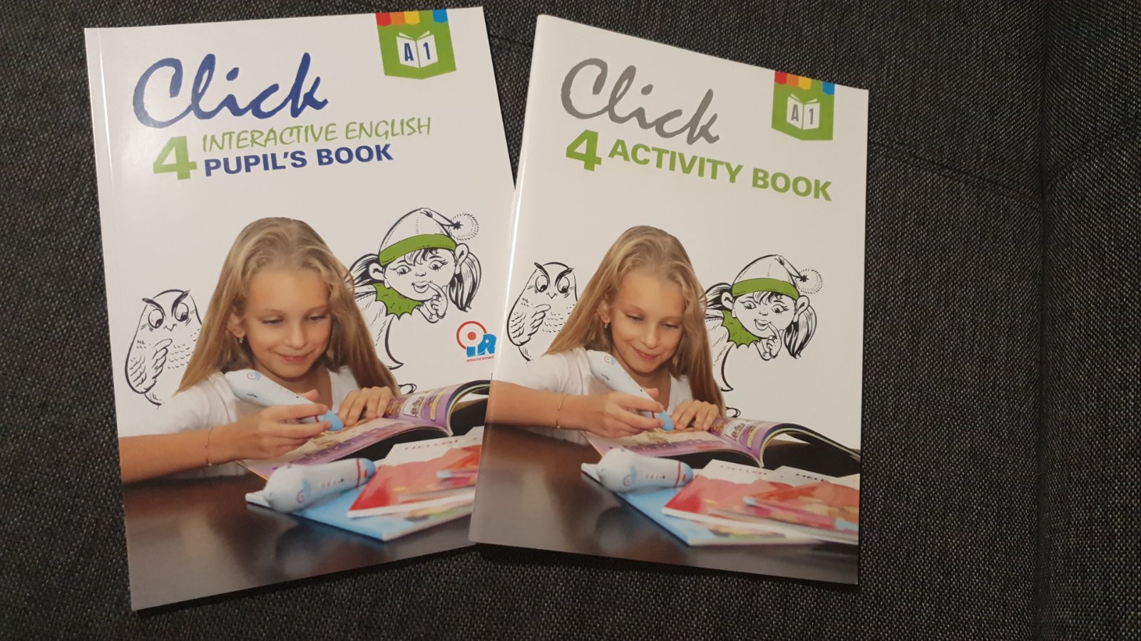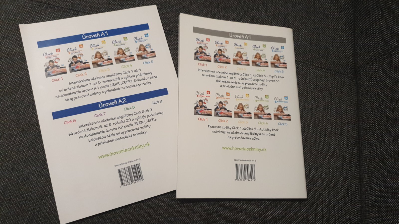 Ponukam hovoriace knihy Click 4 - ucebnica + pracovny zosit, uroven A1. Ponukam len knihy, bez hovoriaceho pera. Knihy boli len prelistovane. Cena za obe 12 € + postovne/packeta.
