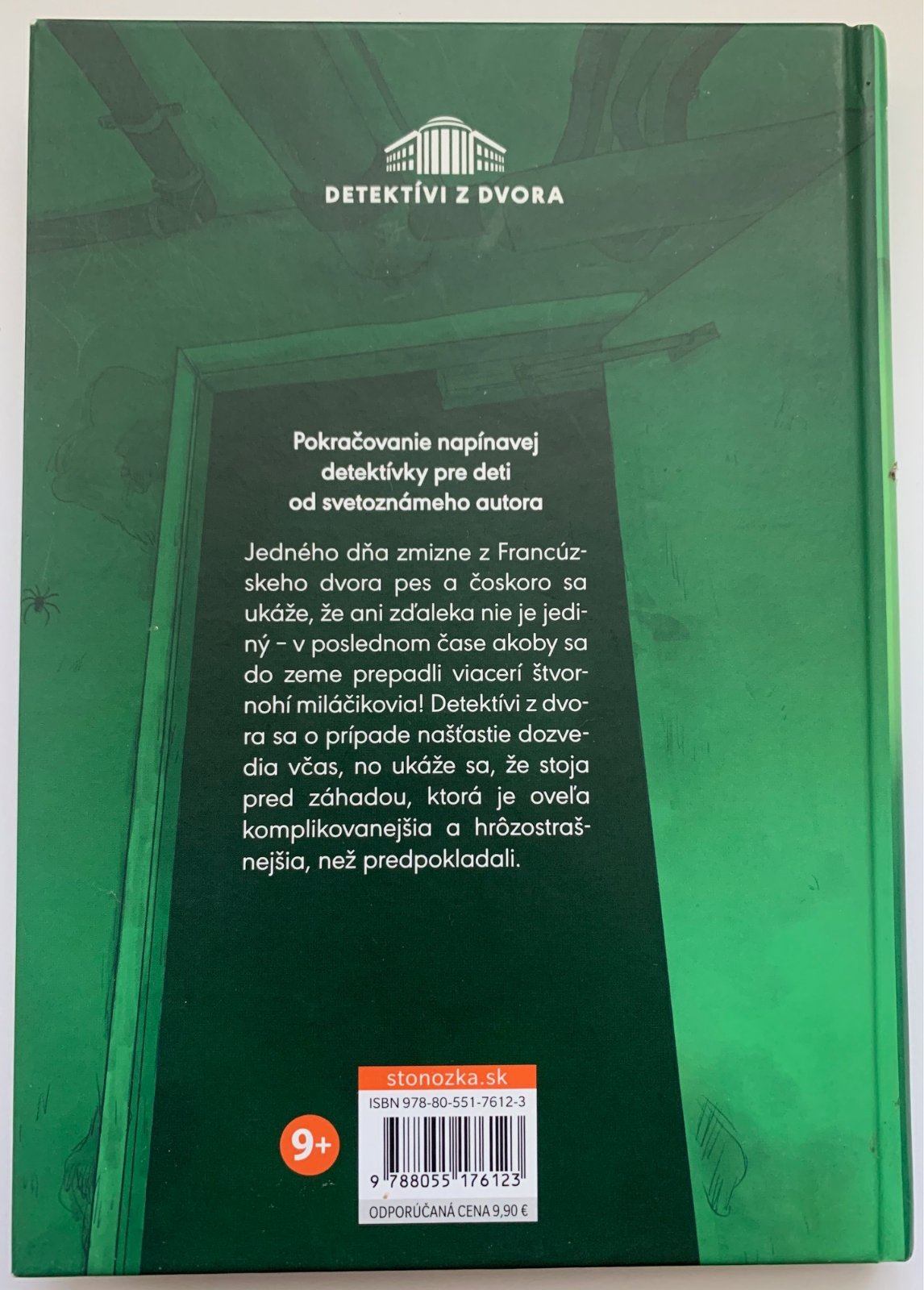 Jedného dňa zmizne z Francúzskeho dvora, kde bývajú, pes a čoskoro sa, žiaľ, ukáže, že ani zďaleka nie je jediný – v poslednom čase akoby sa do zeme prepadli viacerí štvornohí miláčikovia! Detektívi z dvora sa o prípade našťastie dozvedia včas, no stoja pred záhadou, ktorá je oveľa komplikovanejšia a desivejšia, ako predpokladali.