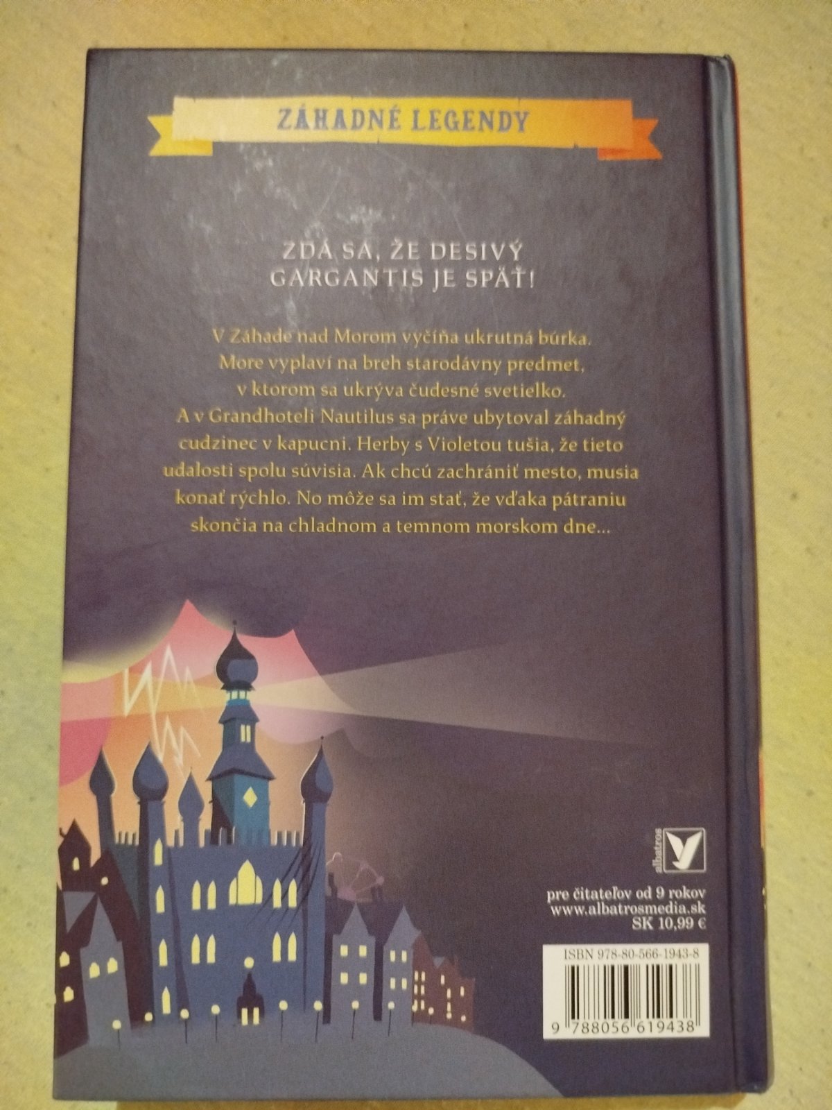 Pre čitateľov od 9 rokov. V Záhade nad Morom vyčíňa ukrutná búrka. More vyplaví na breh starodávny predmet, v ktorom sa ukrýva čudesné svetielko. A v Grandhoteli Nautilus sa práve ubytoval záhadný cudzinec v kapucni. Herby s Violetou tušia, že tieto udalosti spolu súvisia. Ak chcú zachrániť mesto, musia konať rýchlo. No môže sa im stať, že vďaka pátraniu skončia na chladnom a temnom morskom dne...