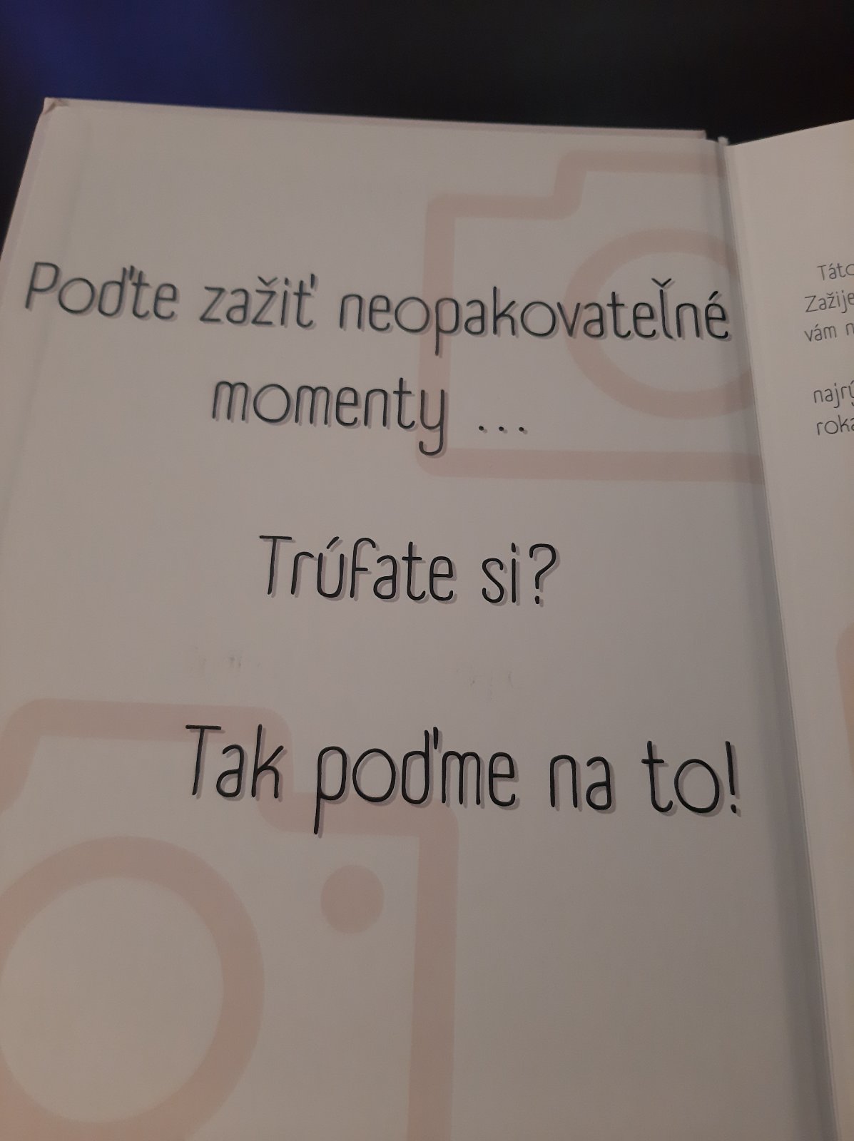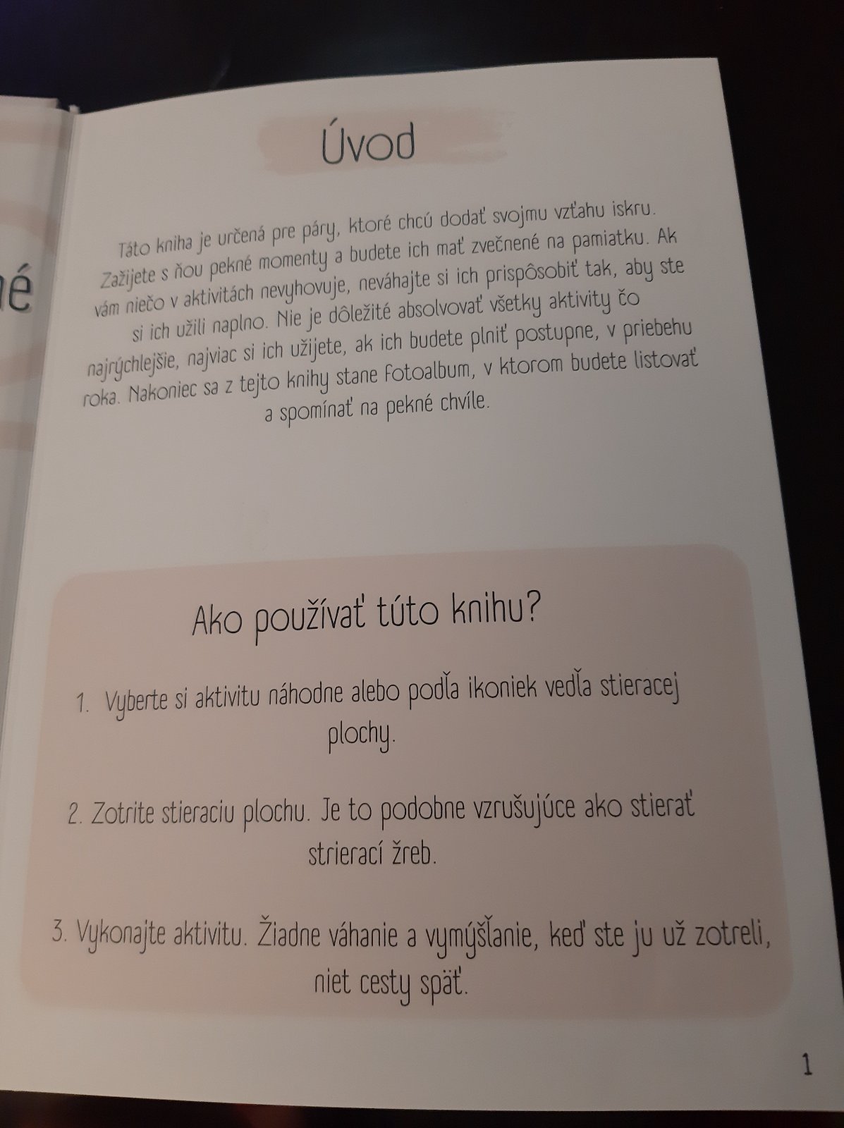 Kniha momentov...vyberte si podla indícií co chcete robit, zotrite stieracie pole, splnte a odfotte sa. Ostanu vam nádherné spolocne spomienky a uzijete si kopec zabavy
