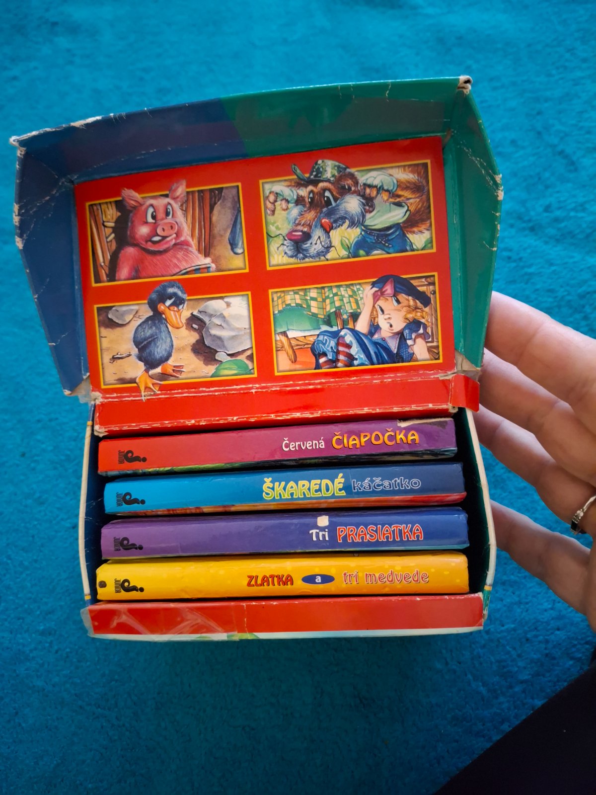 Súbor 4 knižiek známych rozprávočiek. Používané. Hlavne vidieť na krabičke. Určite detičky potešia. Knižky vo veľkosti cca 11.5cm x 8,5cm. Mam k dispozícii aj inú krabičku vid inzeraty
