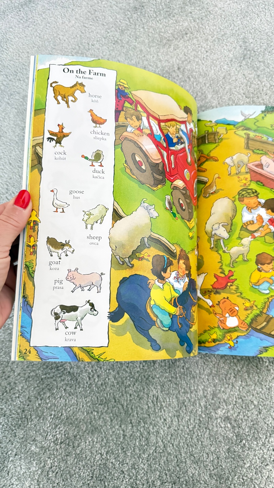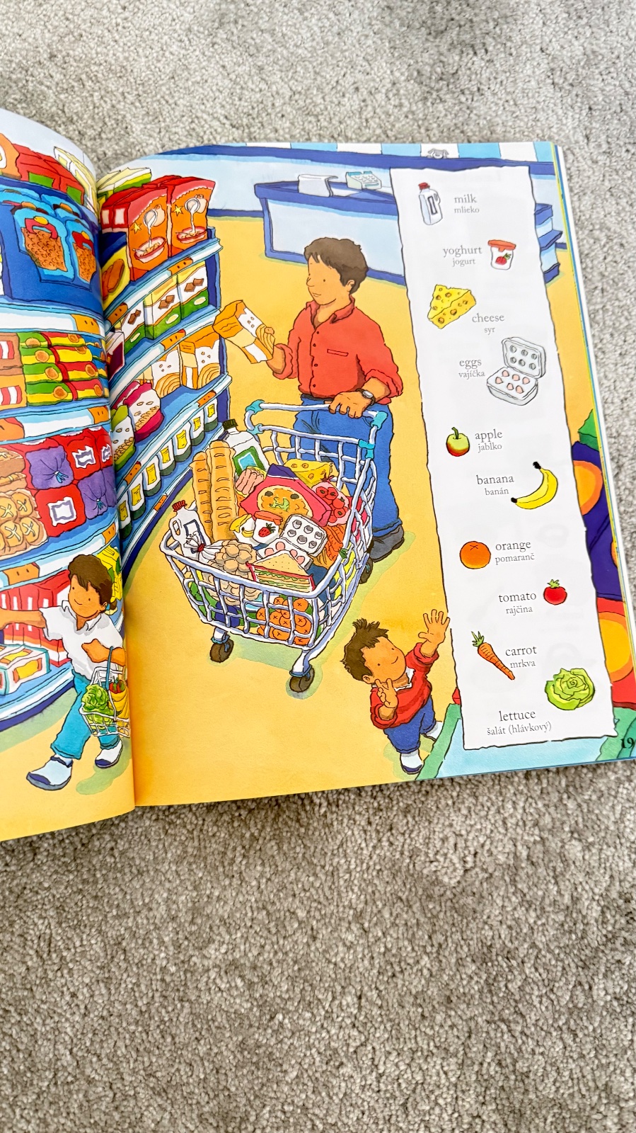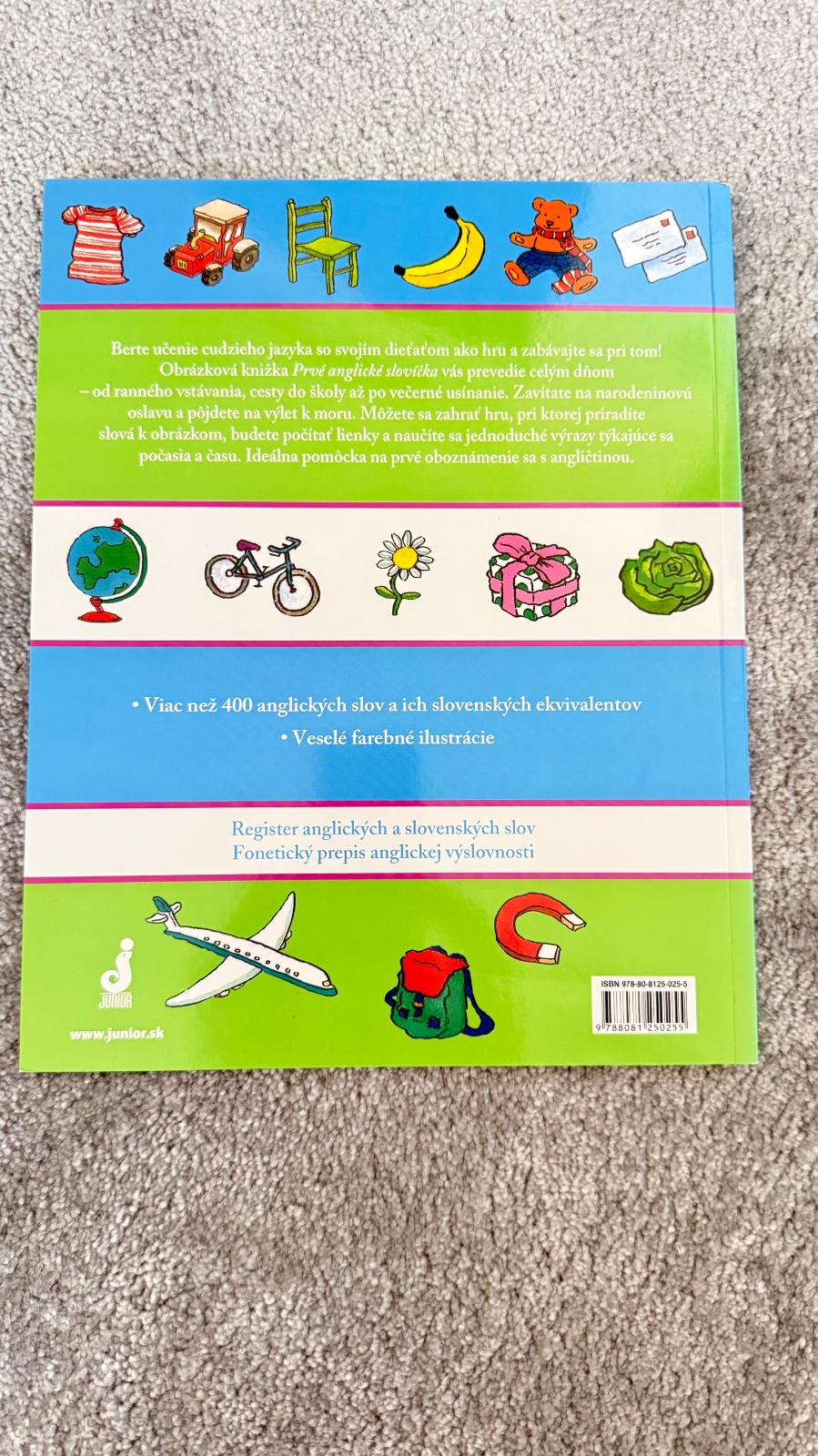 Obsahuje pestré ilustrácie rôznych bežných predmetov spolu s ich anglickými názvami.