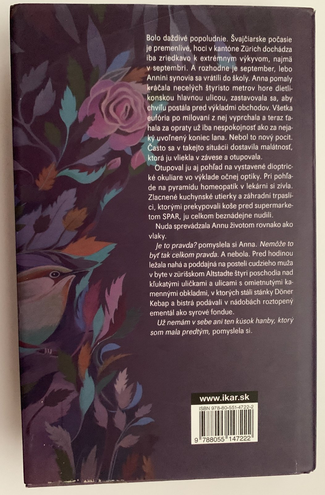 Tridsaťsedemročná Američanka Anna Benzová žije s manželom, švajčiarskym bankárom Brunom, a tromi malými deťmi na predmestí Zürichu, akoby vystrihnutom z úhľadných reklamných pohľadníc. Vedie pohodlný, materiálne komfortný život hausfrau, domácej panej, ale jej vnútorný svet sa rúca. Cíti hlbokú osamotenosť a čoraz väčšiu neschopnosť nadviazať kontakt s emocionálne nedostupným manželom Brunom, ba dokonca aj s vlastnými myšlienkami a pocitmi. A tak sa rozhodne prebrať k životu novými zážitkami: jungovskou psychoanalýzou pod vedením doktorky Messerliovej, hodinami nemčiny v jazykovej škole a kopou sexuálnych aférok, ktoré prežíva s takou ľahkosťou, až tým prekvapuje aj sama seba.