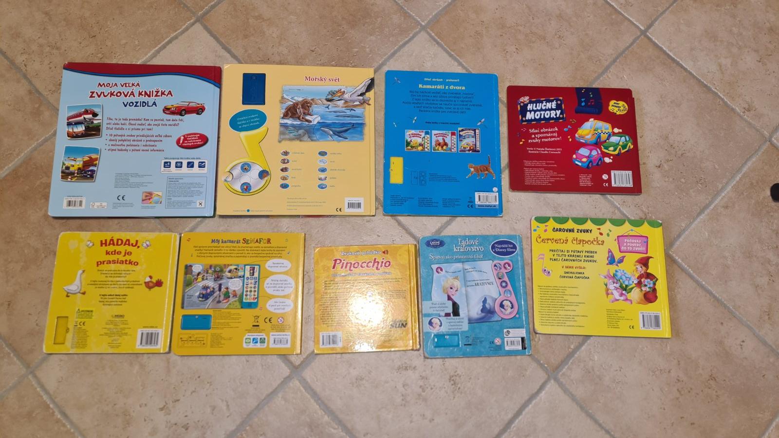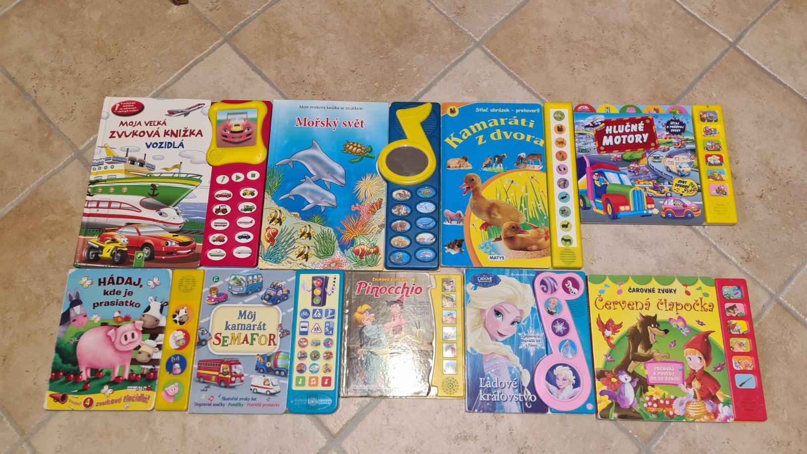 Zvukové knižky na batérie. Všetky majú strany ako hrubý kartón na štýl leporela.