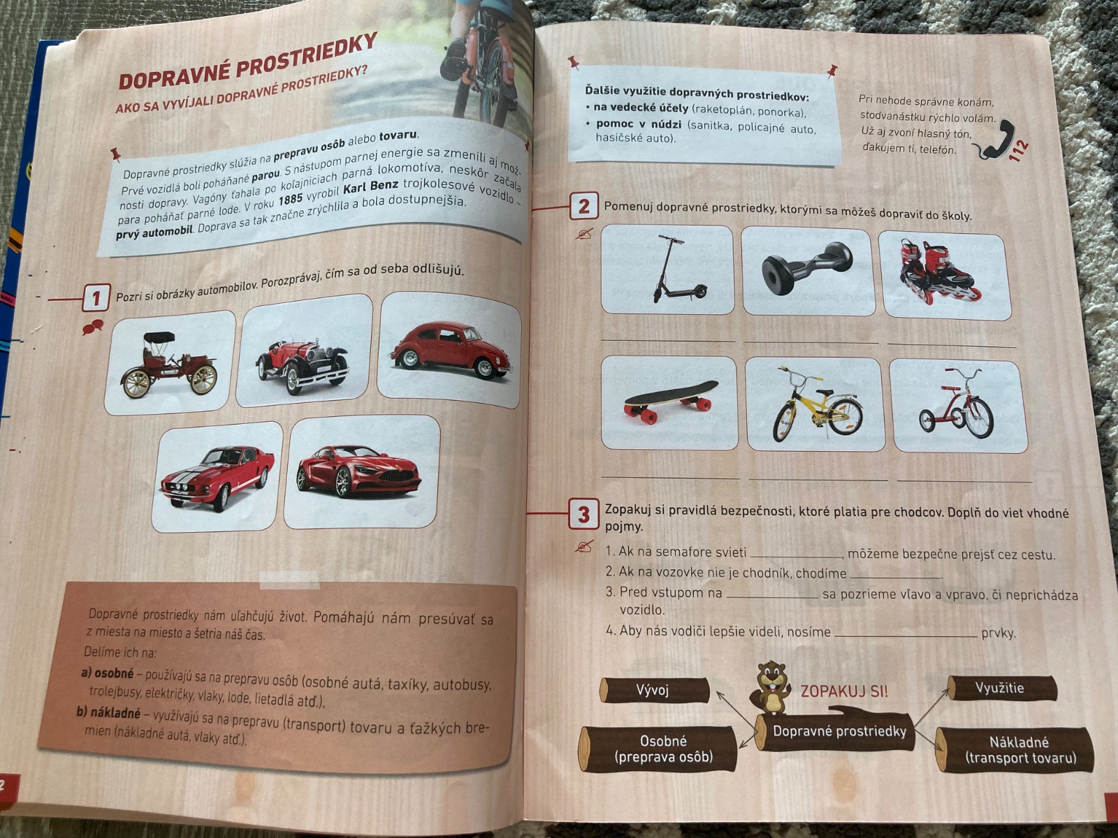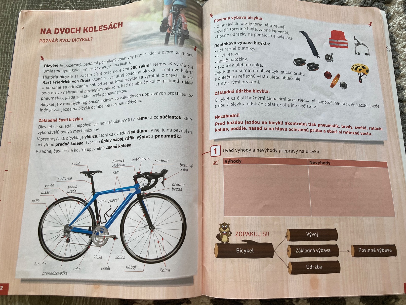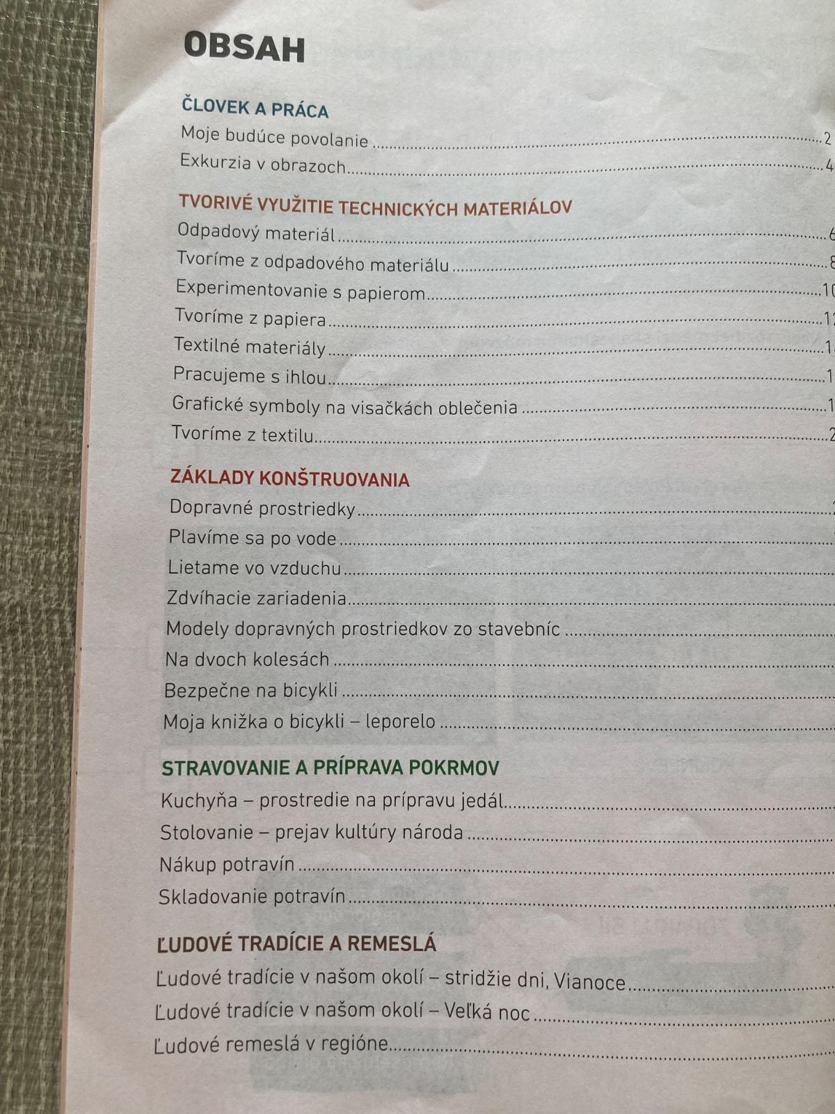 Súčasťou učebnice sú aj poznatky o bezpečnosti na ceste, stravovaní a príprave pokrmov, ľudových tradíciách a remeslách.