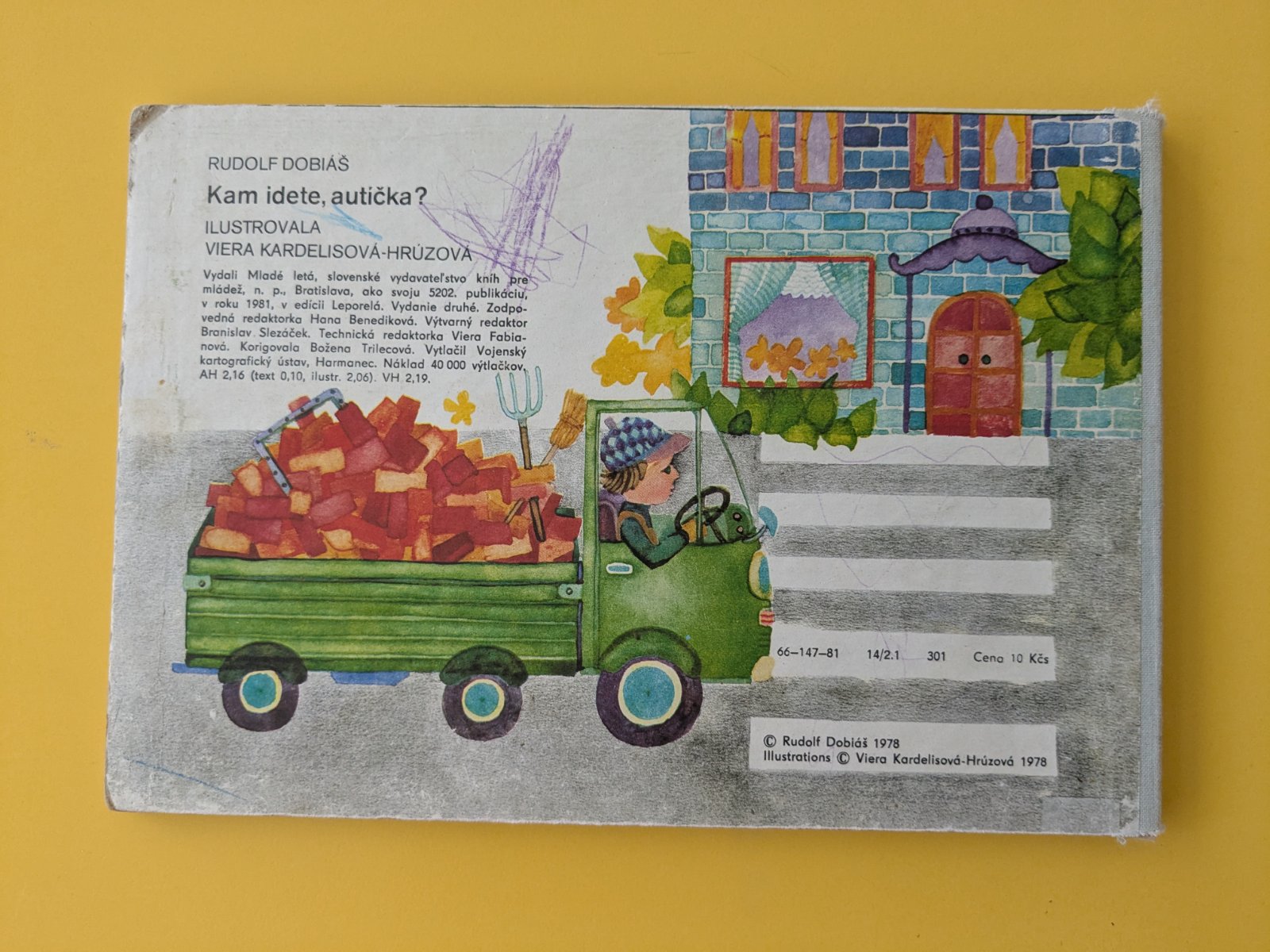 Kam idete autíčka?, na dvoch stranách malé počmáranie, 1,50€.