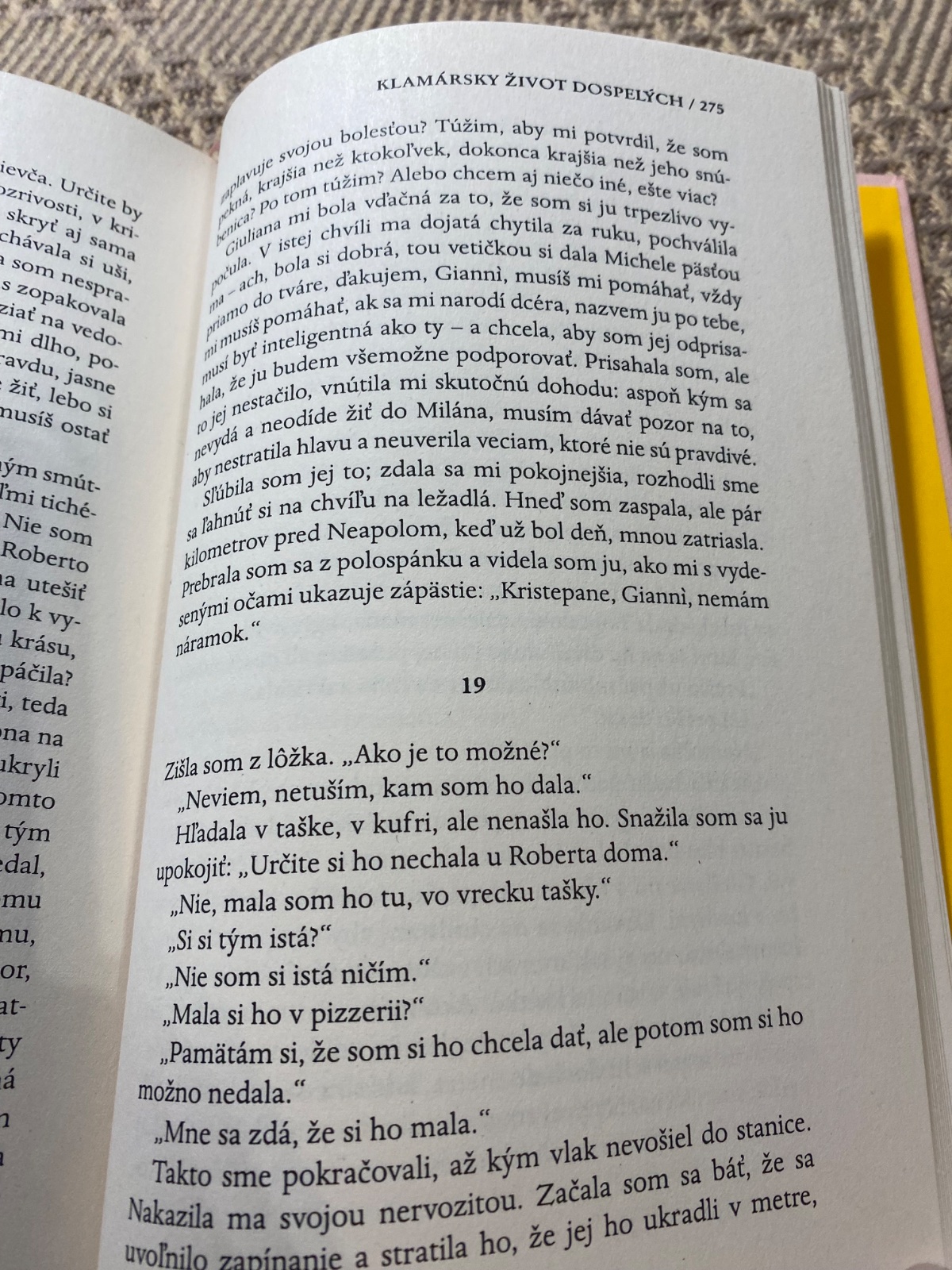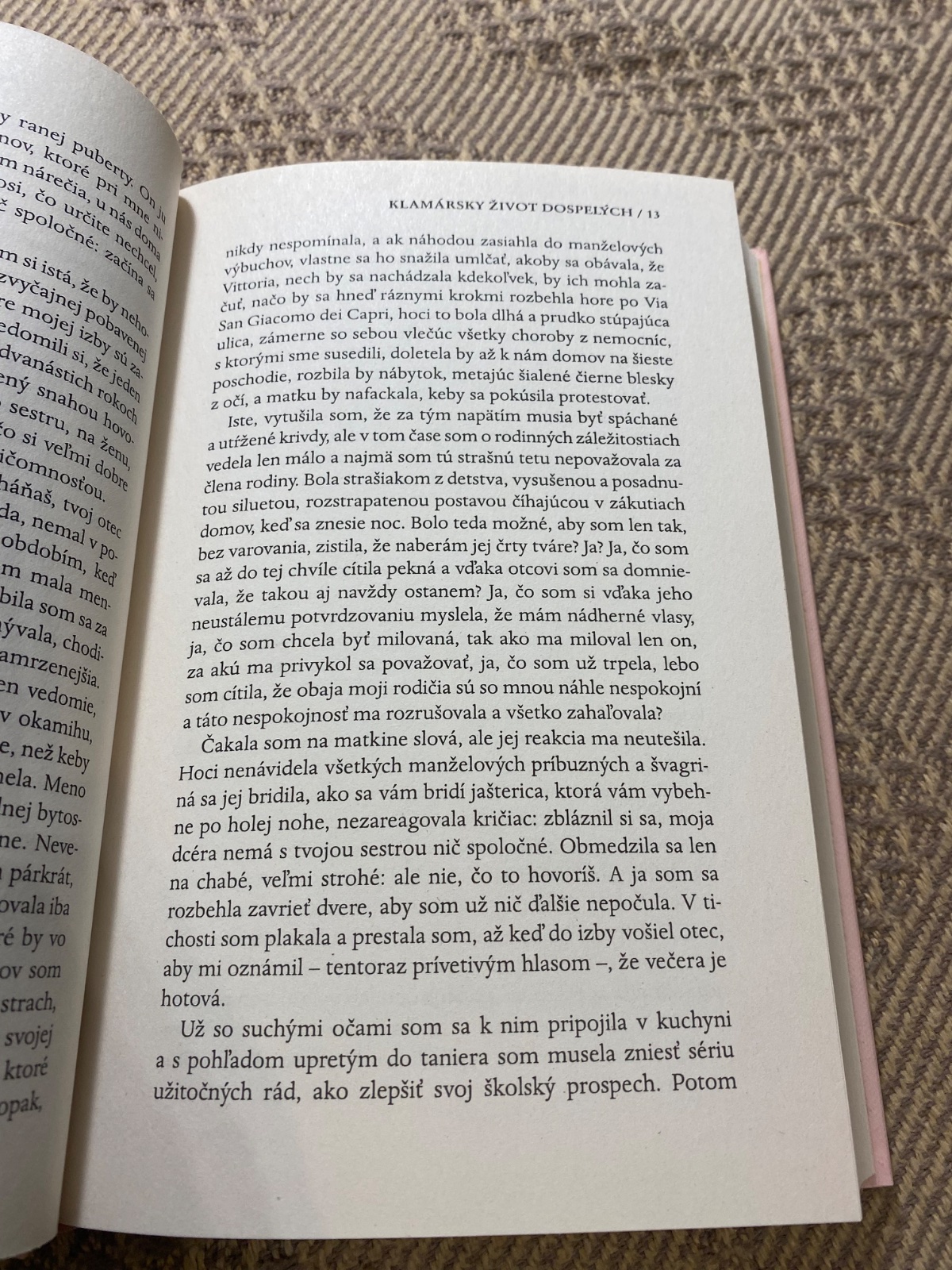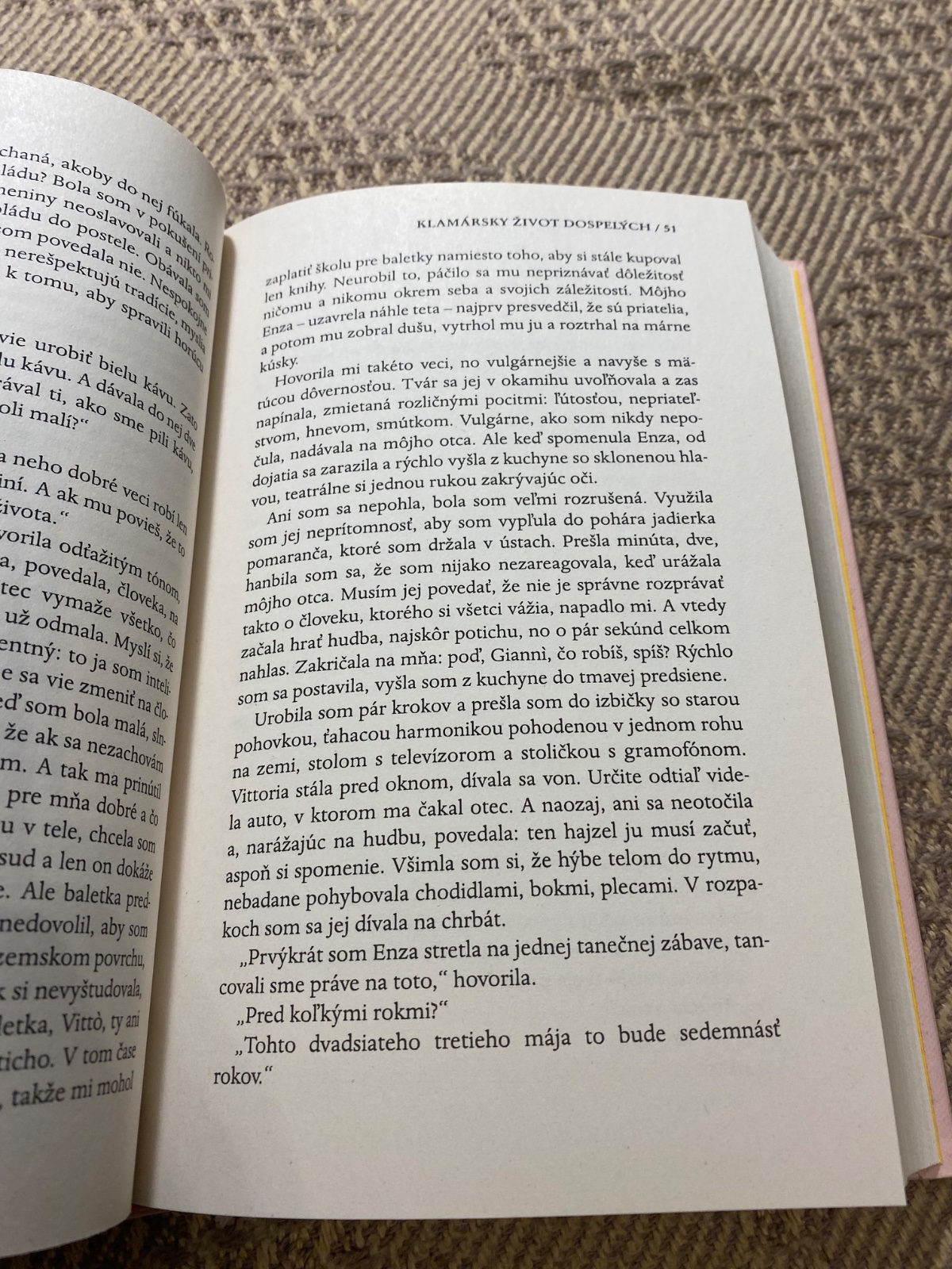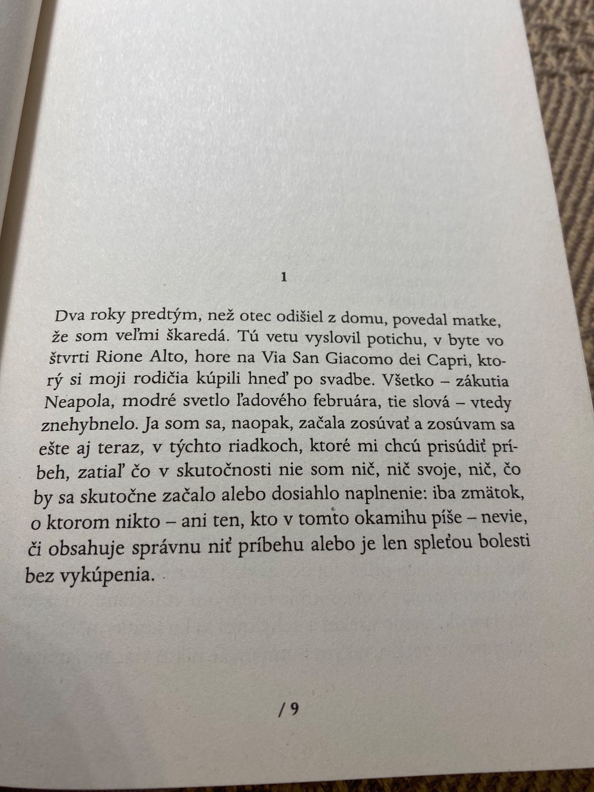 Viac ako tristo strán príbehu z prostredia strednej neapolskej spoločenskej vrstvy v polovici deväťdesiatych rokov, v ktorej sa mladé dievča stretáva s dvojtvárnosťou, falšou, krízou hodnôt a spletitosťou rodinných vzťahov, bolo prvými talianskymi recenzentmi vrelo prijatých a u čitateľskej obce, ako to už býva v prípade tejto autorky zvykom, vyvolalo obrovskú odozvu.