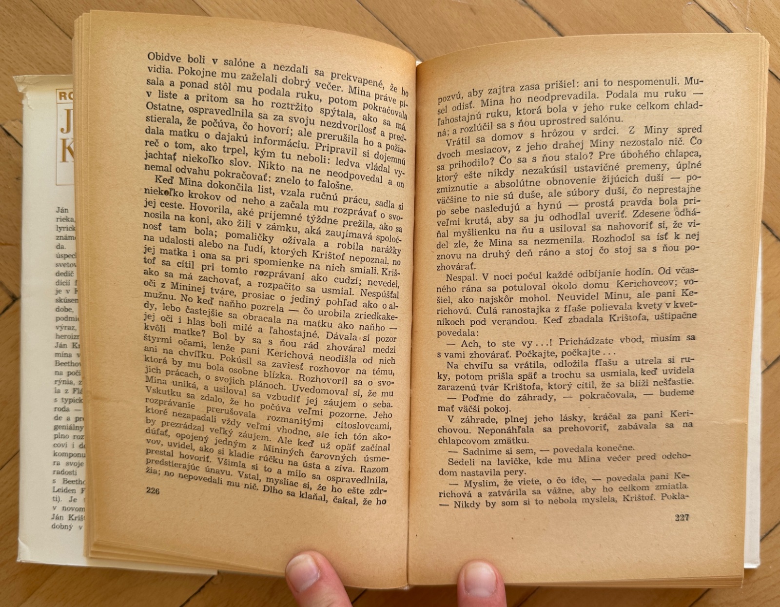 Ján Krištof 1 od Romaina Rollanda je román o geniálnom, no vzpurnom nemeckom hudobníkovi, ktorý bojuje proti malomeštiactvu, nepochopeniu a vlastným pochybnostiam, zatiaľ čo sa usiluje žiť a tvoriť podľa svojho presvedčenia.Príbeh o slobode ducha a zápase umelca so spoločnosťou.Vydáno: Tatran (Bratislava),1. vydání originálu: 1948,Překlad: Soňa Hollá,Počet stran: 830,Jazyk vydání: slovenský,Edice: Svetová tvorba (SVKL,Tatran) (120.),Autor obálky: Miloš Urbásek,Forma: klasická kniha,Vazba knihy: pevná / vázaná s přebalem