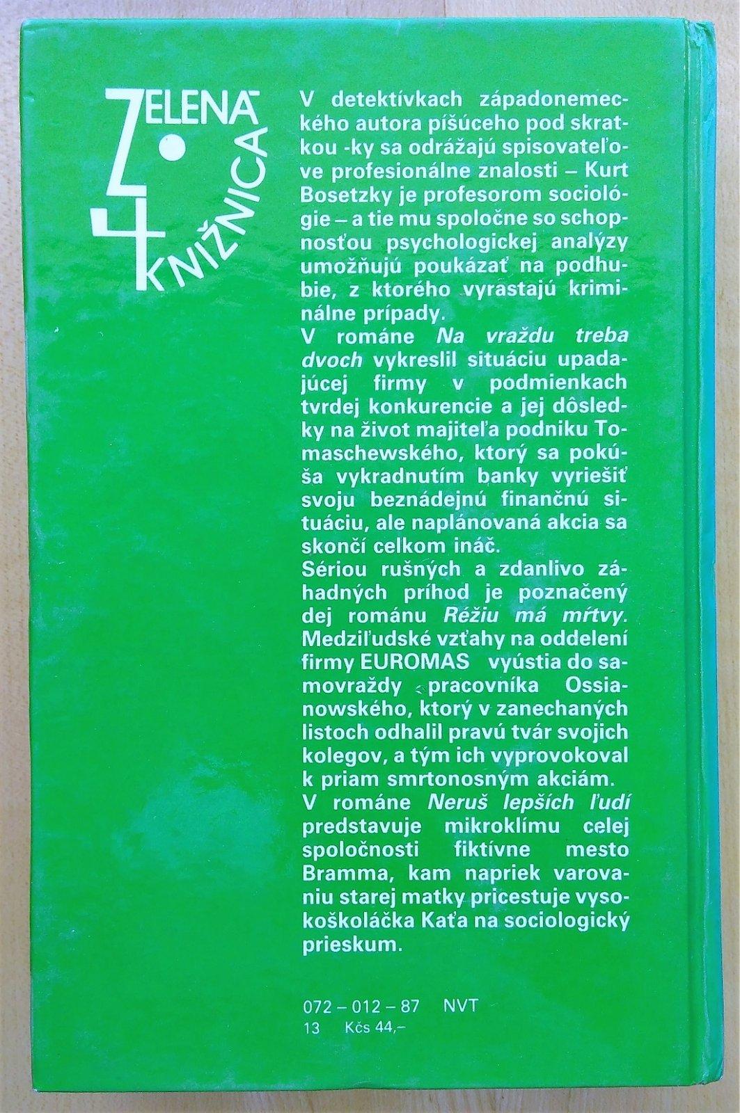 Na vraždu treba dvoch, Réžiu má mŕtvy, Neruš lepších ľudí, -ky, Slovenský spisovateľ, 1987, tvrdá väzba 439 strán, 13,5 x 20,5 cm, 570 g - 2,50 €