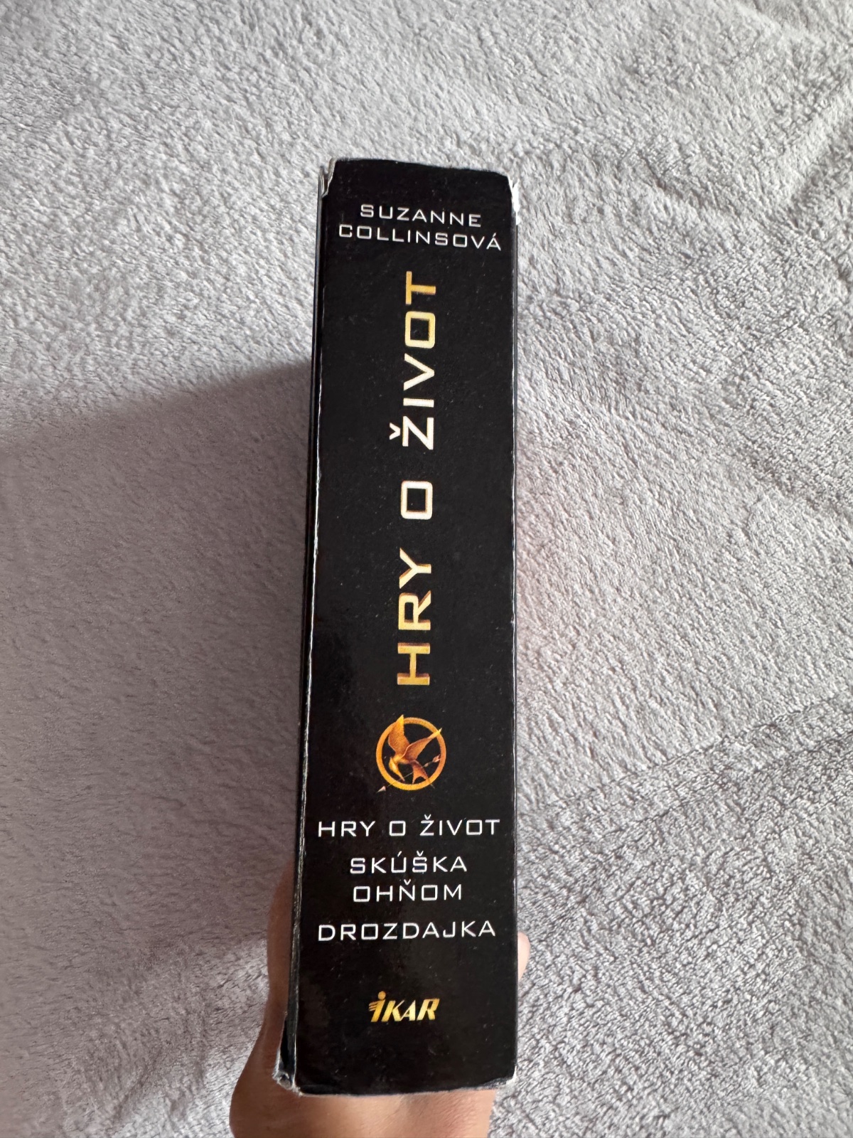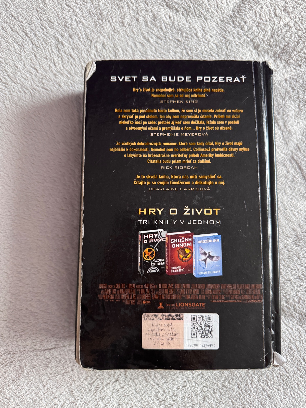 Kniha obsahuje všetky tri časti - Hry o život, Skúška ohňom, Drozdajka. Suzanne Collins.