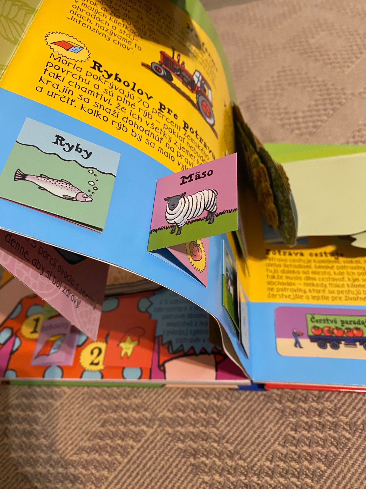 Veľké leporelo so skutočnými špagetami.
