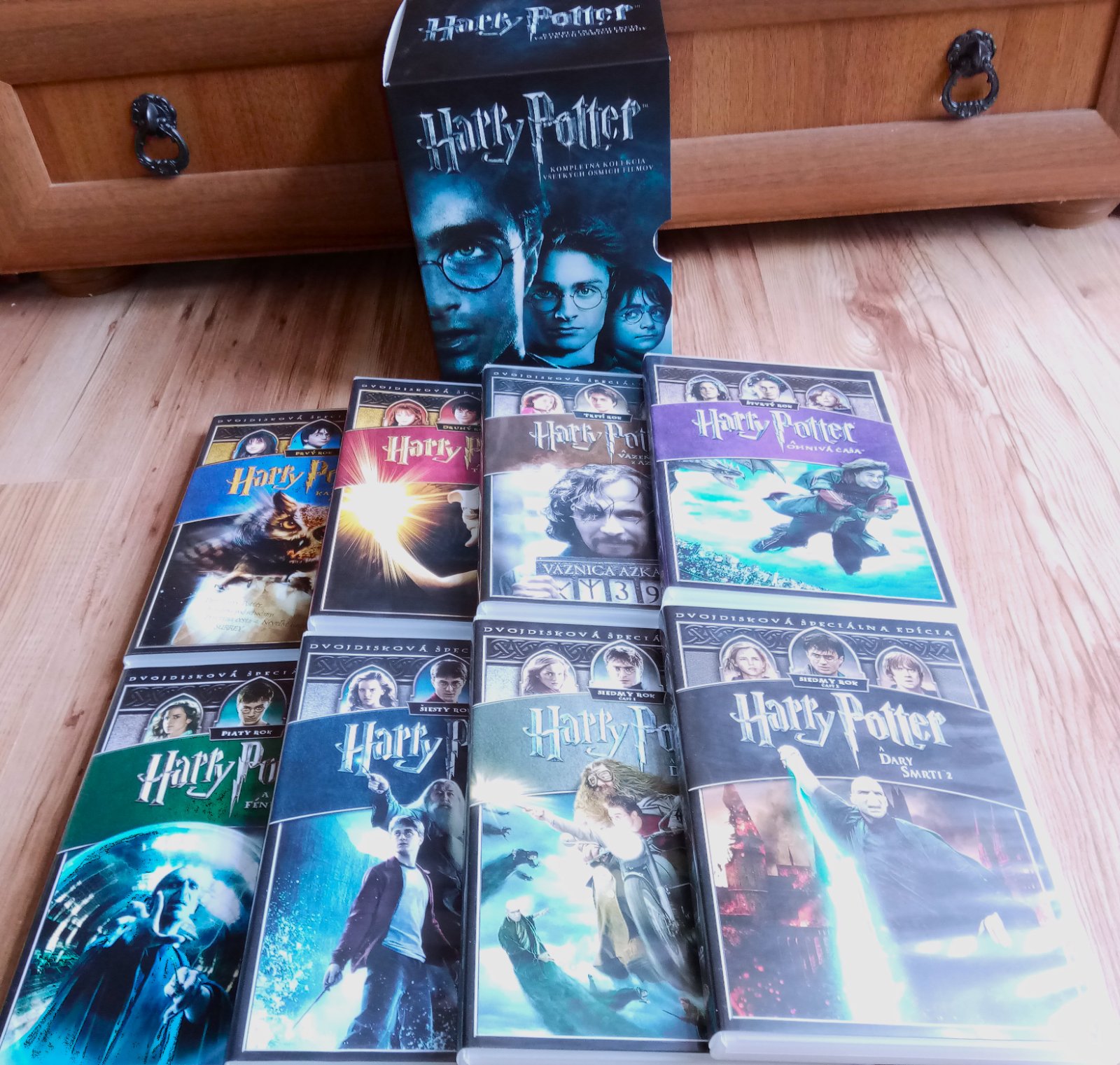Kompletná sada filmov HP na DVD. Cena je 38E.