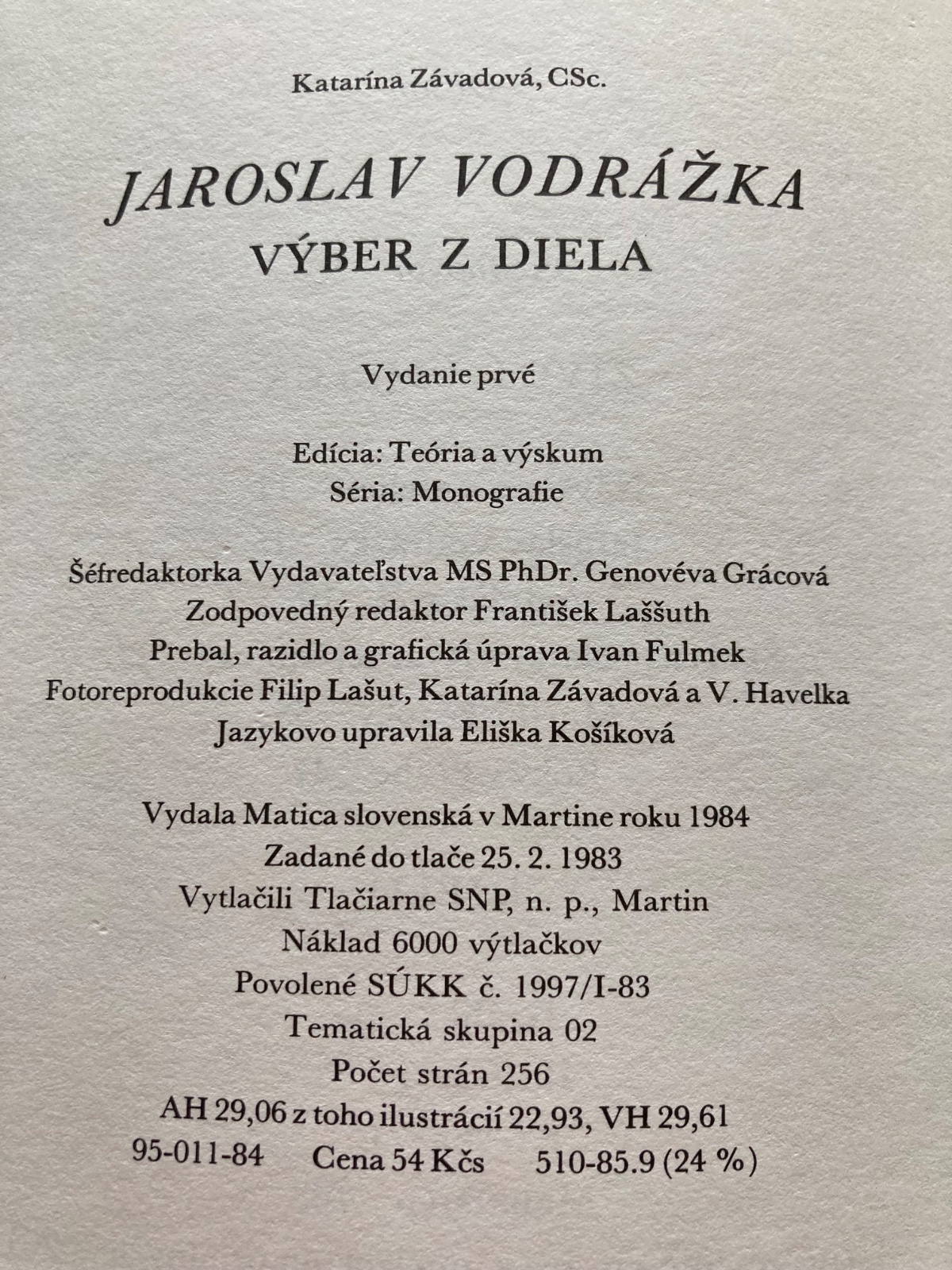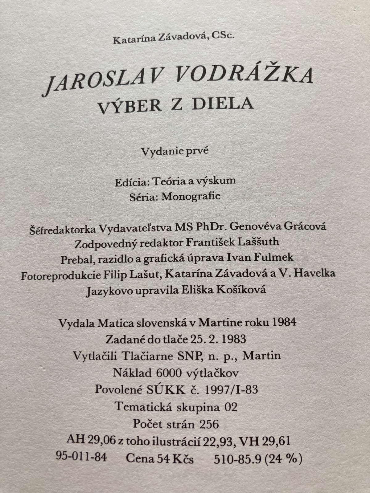 Jaroslav Vodrážka Výber z diela- prvé vydanie 1984