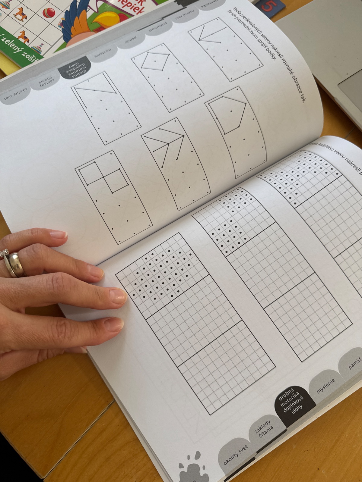 Kedze je to pre predskolakov, nevadi ze je to v cestine. Rodic vzdy predcita. Mozem len odporucit typ cviceni ktore predchadzaju aby dieta precvicilo vsetky vyvinove schopnosti a aby to bolo potom lahsie v skole a predchadzalo sa roznym diagnozam ako dysgrafia, dyslexia a pod.